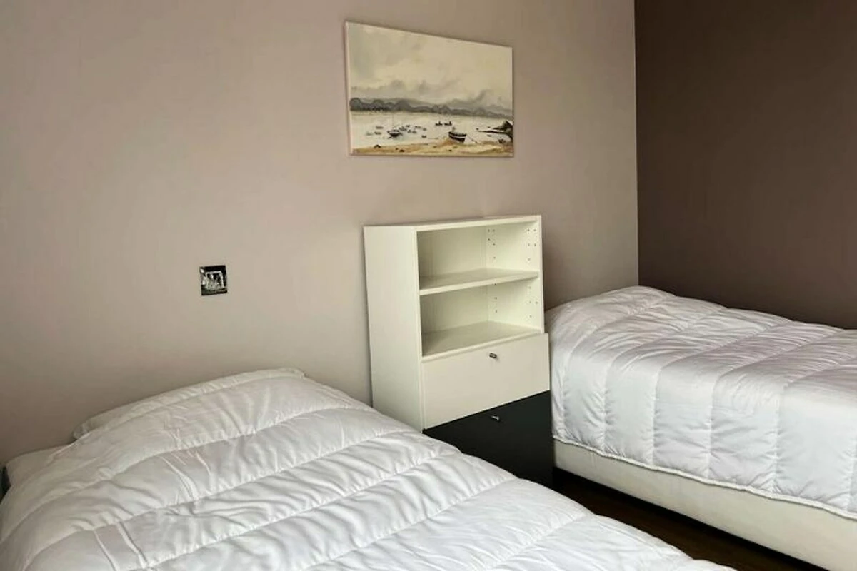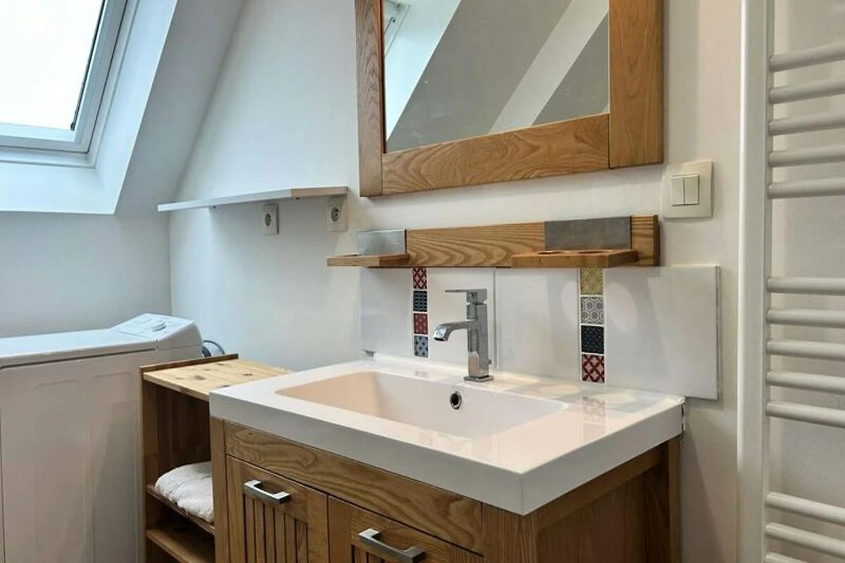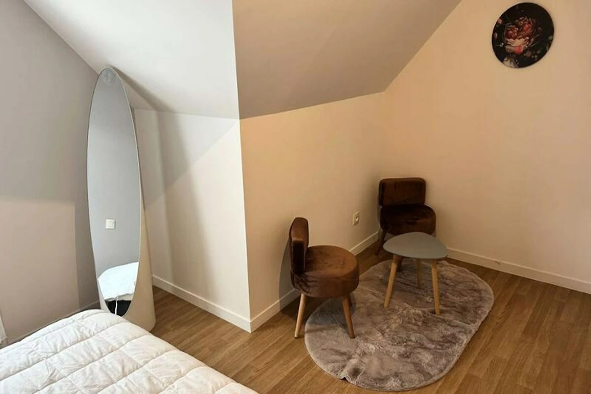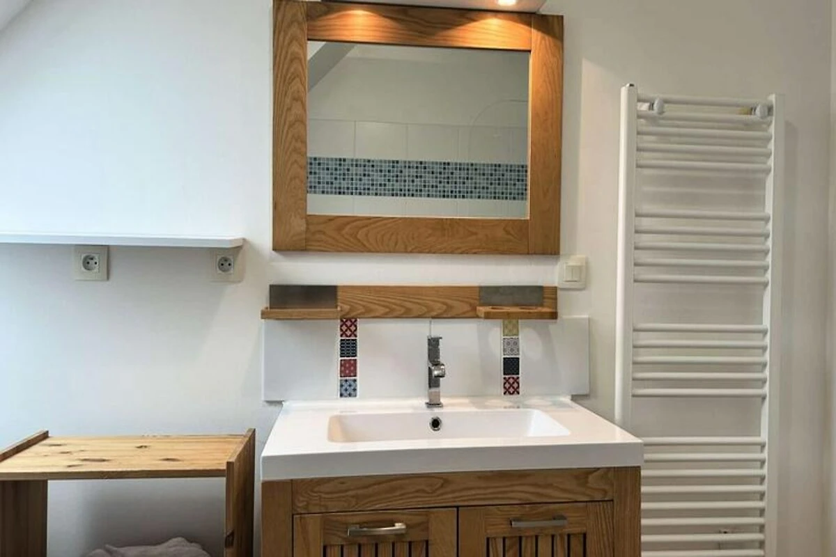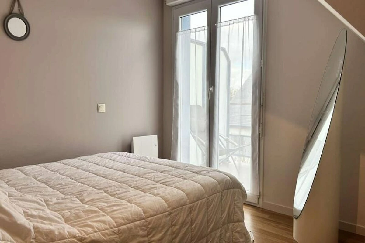 Inmitten eines ruhigen, privaten Anwesens bietet dieses charmante Doppelhaus einen idyllischen Rückzugsort nur wenige Schritte vom renommierten Golfplatz Pléneuf-Val-André entfernt. Stellen Sie sich vor, wie Sie mit der sanften Meeresbrise erwachen und Ihren Morgenkaffee auf der Balkonterrasse genießen, umgeben vom wohltuenden Charme der bretonischen Küste. Ob Sie einen Golfurlaub oder eine entspannende Auszeit am Meer verbringen möchten – dieses Haus bietet die perfekte Balance aus Komfort und Bequemlichkeit. \n\nDas 58 m² große Haus ist durchdacht gestaltet und lässt keine Wünsche offen. Im Erdgeschoss befindet sich ein heller und geräumiger Wohnbereich mit einer gemütlichen Lounge, ausgestattet mit Sofa, Sesseln und Fernseher, sowie einem Essbereich für vier Personen. Die offene Küche ist mit modernen Geräten wie Induktionskochfeld, Backofen, Mikrowelle, Kühl-/Gefrierkombination, Geschirrspüler und vielem mehr ausgestattet, sodass Sie mühelos köstliche Mahlzeiten zubereiten können. Im Obergeschoss befinden sich zwei einladende Schlafzimmer: eines mit zwei Einzelbetten und das andere mit einem Doppelbett und Zugang zu einer privaten Balkonterrasse. Das Badezimmer ist mit Badewanne, Duschabtrennung und Waschmaschine ausgestattet. Gäste genießen exklusiven Zugang zum gemeinschaftlichen Hallenbad des Anwesens, das in den Sommermonaten geöffnet ist, sowie kostenlose Parkplätze direkt vor dem Haus. Die erstklassige Lage des Anwesens bietet direkten Zugang zum Golfplatz und dem malerischen Strand von Vallées und ist somit ein idealer Ausgangspunkt, um die Naturschönheiten der Region und ihre vielfältigen Outdoor-Aktivitäten zu entdecken. Ob Sie einen ruhigen Rückzugsort oder einen aktiven Urlaub suchen – dieses charmante Haus lädt Sie ein, unvergessliche Erinnerungen im Herzen der atemberaubenden Küste der Bretagne zu schaffen.