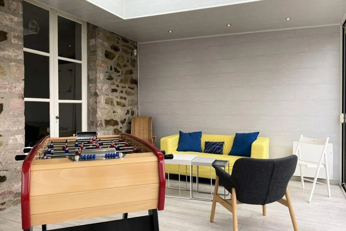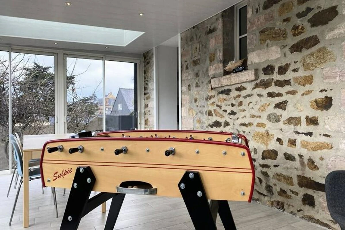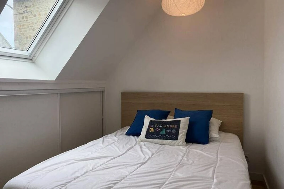 Im Herzen der bezaubernden Küste von Penthièvre lädt dieses charmante Familienhaus in Pléneuf-Val-André Sie ein, die Schönheit der bretonischen Küste zu erleben. Erwachen Sie zum sanften Rauschen der Wellen und freuen Sie sich auf einen Tag voller Entdeckungen, Entspannung und unvergesslicher Erinnerungen. Nur wenige Schritte entfernt liegt der weitläufige Strand von Val-André, ideal zum Sonnenbaden, Schwimmen oder einfach nur, um die frische Meeresbrise zu genießen. Der nahegelegene Felsen von Verdelet und die Promenade von Digue bieten atemberaubende Ausblicke und laden zu ruhigen Spaziergängen entlang der Küste ein. Golfliebhaber werden vom 18-Loch-Platz inmitten einer traumhaften Naturkulisse begeistert sein. \n\nTreten Sie ein in dieses warme und einladende Haus, das mit Blick auf Komfort und Funktionalität gestaltet wurde. Das Erdgeschoss verfügt über eine voll ausgestattete offene Küche mit Kochinsel, ideal zum Zubereiten von Mahlzeiten, die Sie im geräumigen Essbereich oder im Garten genießen können. Das Wohnzimmer mit Fernseher und DVD-Player lässt sich für größere Runden zum Hauptwohnbereich hin öffnen. Im Obergeschoss befinden sich vier gemütliche Schlafzimmer mit jeweils einem Doppelbett (160 x 200 cm), die erholsame Nächte für alle garantieren. Moderne Annehmlichkeiten wie WLAN, ein Badezimmer auf jeder Etage sowie Bettwäsche und Handtücher sorgen für einen unkomplizierten und angenehmen Aufenthalt. \n\nDie Region bietet in der Umgebung zahlreiche Aktivitäten und Sehenswürdigkeiten. Erkunden Sie die malerischen Küstenwege, entdecken Sie lokale Märkte mit bretonischen Spezialitäten oder genießen Sie frische Meeresfrüchte in nahegelegenen Restaurants. Ob Sie Abenteuer oder Ruhe suchen – dieses Haus ist der perfekte Ausgangspunkt, um die Schätze von Pléneuf-Val-André und seiner Umgebung zu entdecken. Lassen Sie sich vom Charme der Bretagne verzaubern und schaffen Sie unvergessliche Erinnerungen in diesem idyllischen Refugium.