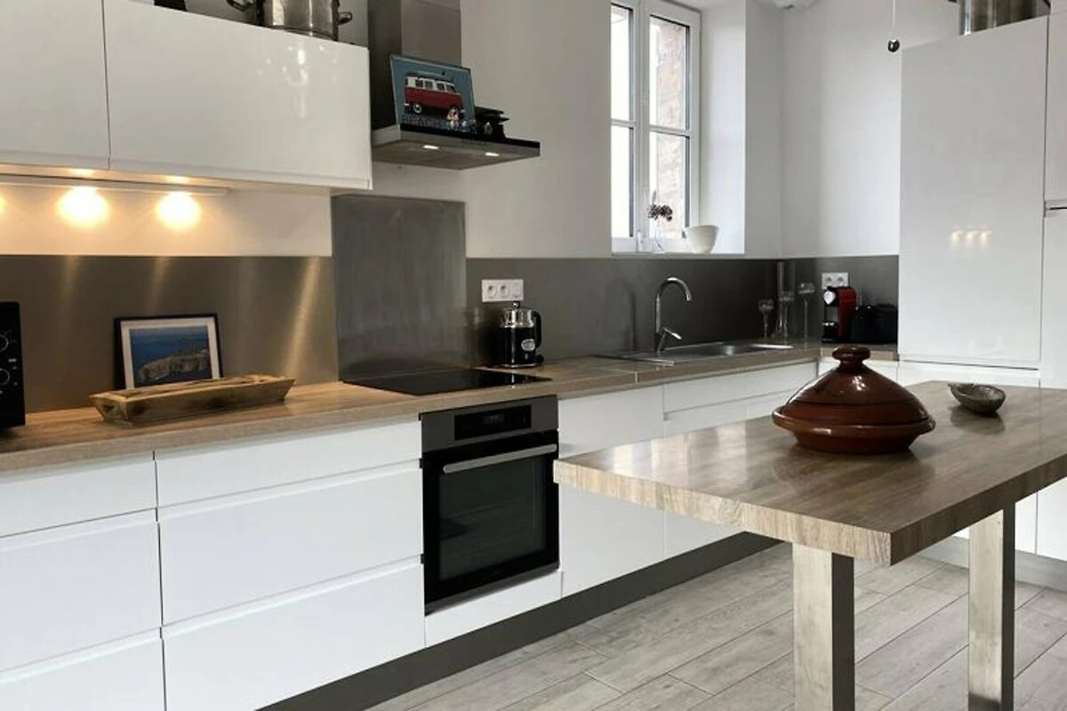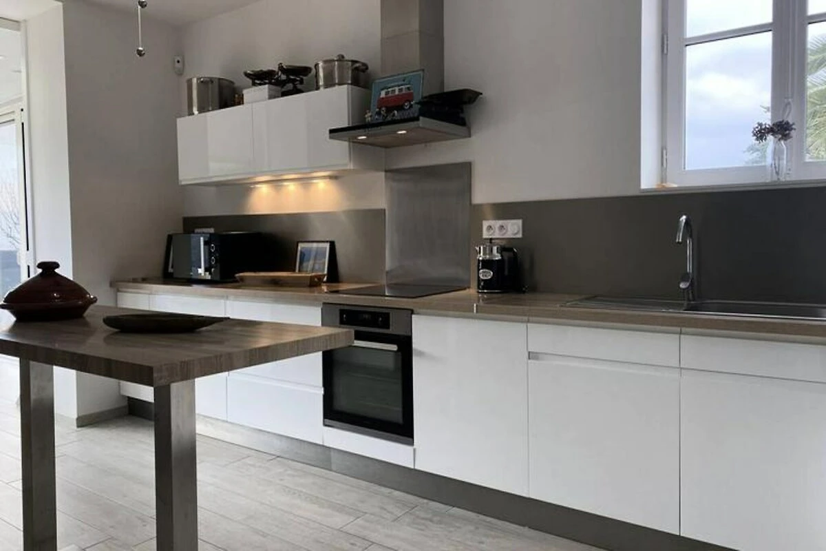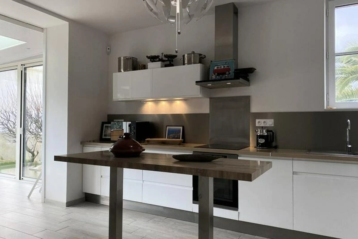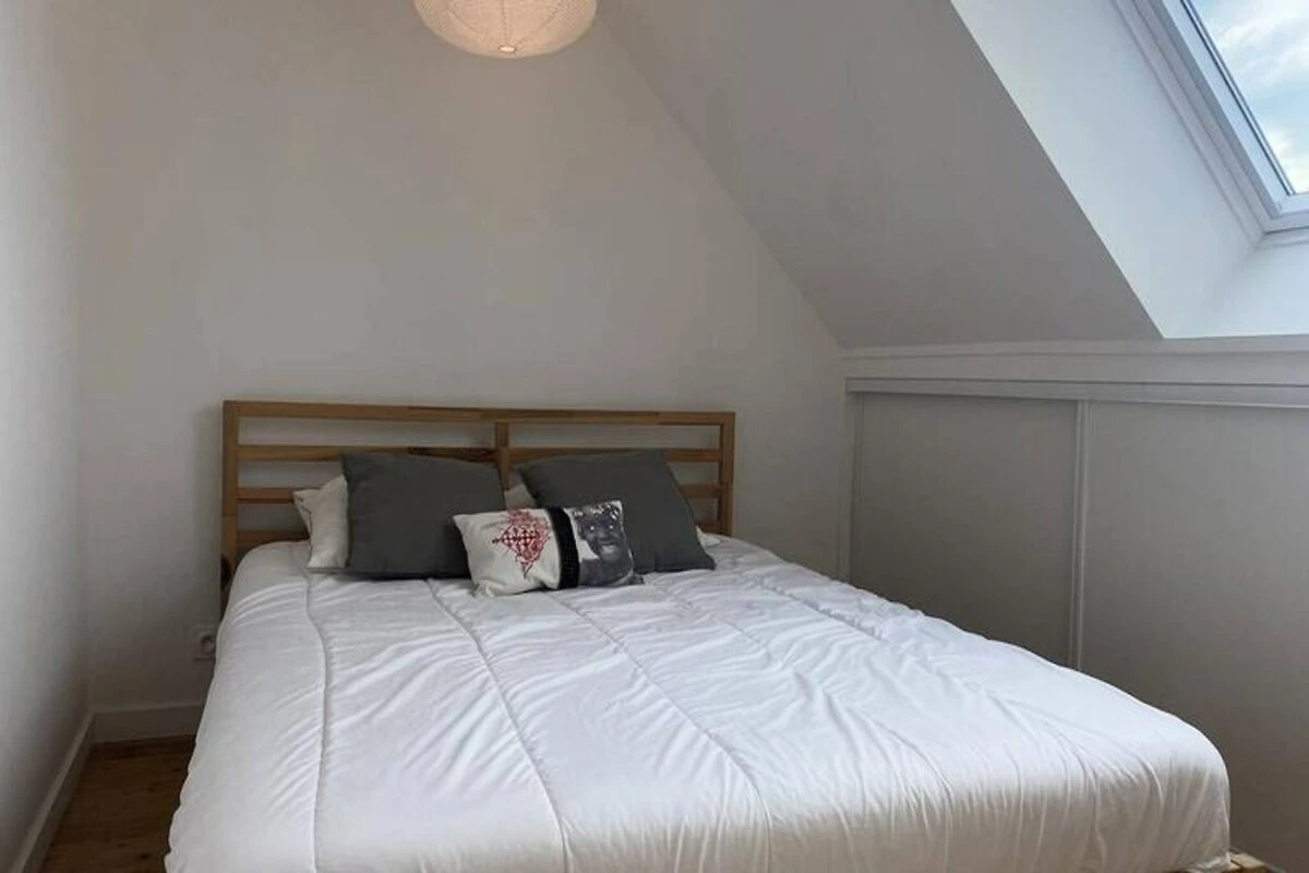 Im Herzen der bezaubernden Küste von Penthièvre lädt dieses charmante Familienhaus in Pléneuf-Val-André Sie ein, die Schönheit der bretonischen Küste zu erleben. Erwachen Sie zum sanften Rauschen der Wellen und freuen Sie sich auf einen Tag voller Entdeckungen, Entspannung und unvergesslicher Erinnerungen. Nur wenige Schritte entfernt liegt der weitläufige Strand von Val-André, ideal zum Sonnenbaden, Schwimmen oder einfach nur, um die frische Meeresbrise zu genießen. Der nahegelegene Felsen von Verdelet und die Promenade von Digue bieten atemberaubende Ausblicke und laden zu ruhigen Spaziergängen entlang der Küste ein. Golfliebhaber werden vom 18-Loch-Platz inmitten einer traumhaften Naturkulisse begeistert sein. \n\nTreten Sie ein in dieses warme und einladende Haus, das mit Blick auf Komfort und Funktionalität gestaltet wurde. Das Erdgeschoss verfügt über eine voll ausgestattete offene Küche mit Kochinsel, ideal zum Zubereiten von Mahlzeiten, die Sie im geräumigen Essbereich oder im Garten genießen können. Das Wohnzimmer mit Fernseher und DVD-Player lässt sich für größere Runden zum Hauptwohnbereich hin öffnen. Im Obergeschoss befinden sich vier gemütliche Schlafzimmer mit jeweils einem Doppelbett (160 x 200 cm), die erholsame Nächte für alle garantieren. Moderne Annehmlichkeiten wie WLAN, ein Badezimmer auf jeder Etage sowie Bettwäsche und Handtücher sorgen für einen unkomplizierten und angenehmen Aufenthalt. \n\nDie Region bietet in der Umgebung zahlreiche Aktivitäten und Sehenswürdigkeiten. Erkunden Sie die malerischen Küstenwege, entdecken Sie lokale Märkte mit bretonischen Spezialitäten oder genießen Sie frische Meeresfrüchte in nahegelegenen Restaurants. Ob Sie Abenteuer oder Ruhe suchen – dieses Haus ist der perfekte Ausgangspunkt, um die Schätze von Pléneuf-Val-André und seiner Umgebung zu entdecken. Lassen Sie sich vom Charme der Bretagne verzaubern und schaffen Sie unvergessliche Erinnerungen in diesem idyllischen Refugium.