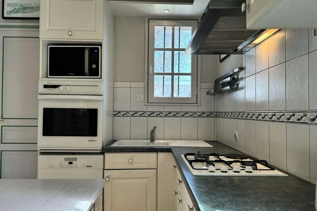 Treten Sie hinaus in den umzäunten Garten, wo eine möblierte Terrasse, Sonnenliegen und ein Holzkohlegrill zu sonnigen Nachmittagen und Mahlzeiten im Freien einladen. Das Anwesen verfügt außerdem über einen Parkplatz mit Ladestation für Elektrofahrzeuge und ist somit sowohl praktisch als auch umweltfreundlich.