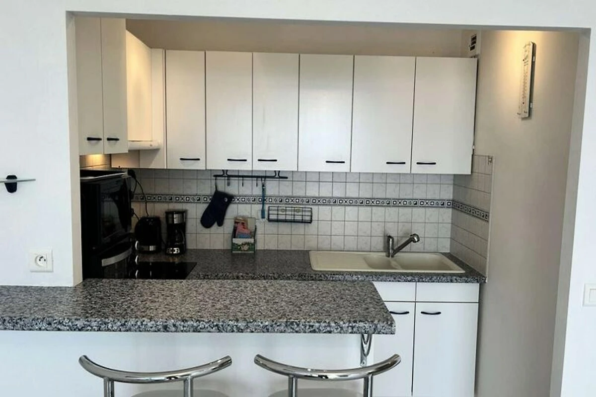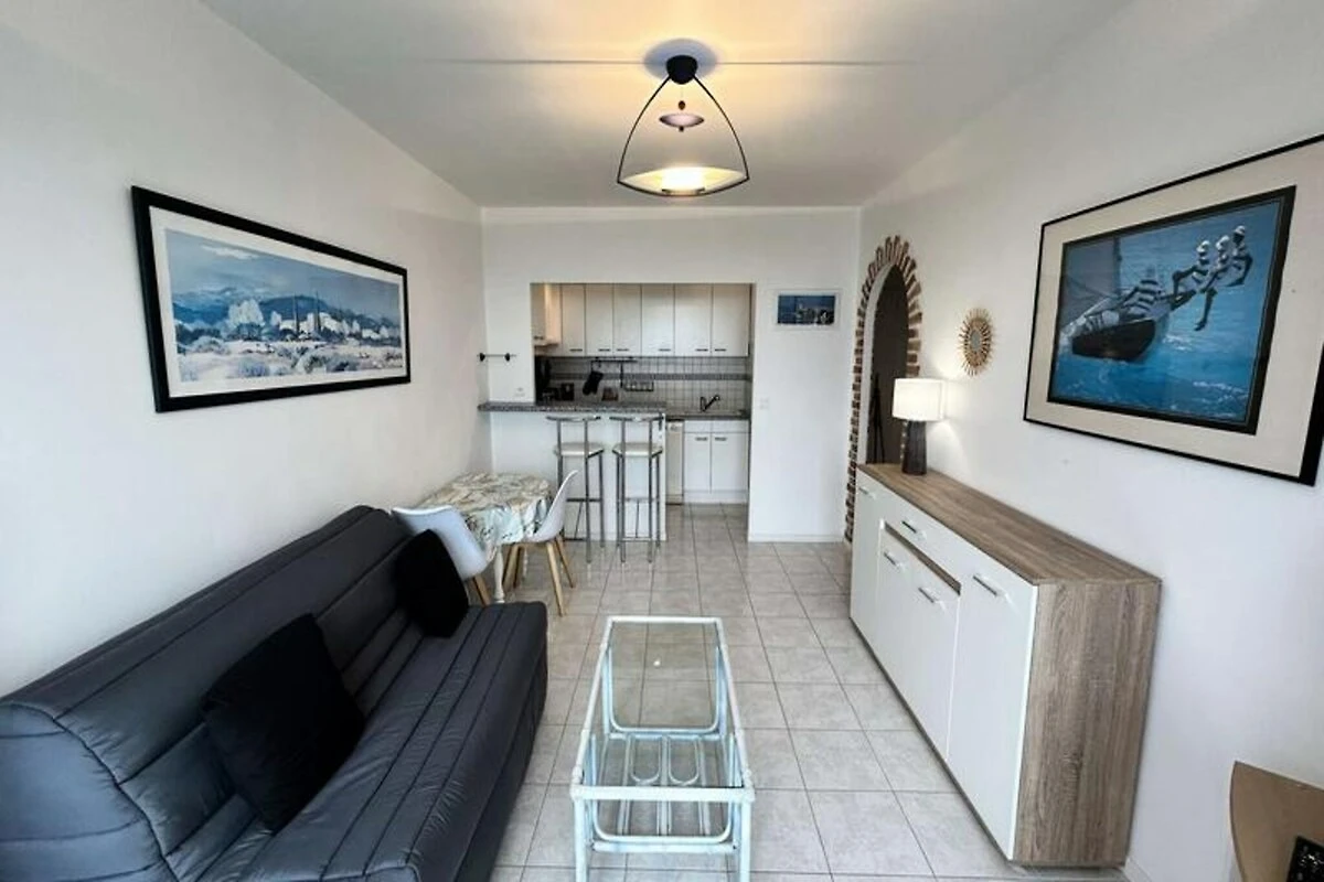 Hoch über der malerischen Küste von Tu Es Roc lädt dieses charmante Zweizimmer-Apartment mit atemberaubendem Meerblick und ruhiger Umgebung zum Entspannen ein. Stellen Sie sich vor, wie Sie vom sanften Rauschen der Wellen geweckt werden und Ihren Morgenkaffee auf der privaten Terrasse mit Blick auf das glitzernde Wasser genießen. Dieser friedliche Rückzugsort in einer sicheren Wohnanlage bietet die perfekte Kombination aus Ruhe und Komfort und ist somit ideal für Paare oder kleine Familien, die einen unvergesslichen Urlaub am Meer verbringen möchten. Das Apartment bietet Platz für bis zu vier Gäste und verfügt über ein helles Wohnzimmer mit einem bequemen Doppelschlafsofa, das sich zur Terrasse hin öffnet und so ein fließendes Wohngefühl zwischen Innen und Außen schafft. Die offene Küche ist mit modernen Geräten wie Geschirrspüler, Mikrowelle und Induktionskochfeld ausgestattet und bietet alles, was Sie zum Zubereiten köstlicher Mahlzeiten benötigen. Das separate Schlafzimmer verfügt über ein gemütliches Doppelbett, während das Badezimmer mit ebenerdiger Dusche und Waschmaschine für zusätzlichen Komfort sorgt. Ein privater Parkplatz und WLAN-Zugang (je nach 4G-Abdeckung) runden die Annehmlichkeiten für einen entspannten Aufenthalt ab. Nur 600 Meter entfernt erwarten Sie der goldene Sandstrand und das lebhafte Stadtzentrum mit einer Vielzahl an Geschäften, Restaurants und Unterhaltungsmöglichkeiten. Ob Sie am Strand entlangspazieren, die lokalen Märkte erkunden oder frische Meeresfrüchte in einem nahegelegenen Café genießen – der Charme der Gegend wird Sie verzaubern. Wählen Sie dieses bezaubernde Apartment für Ihren nächsten Urlaub und schaffen Sie unvergessliche Erinnerungen inmitten atemberaubender Ausblicke, modernem Komfort und dem zeitlosen Charme der französischen Küste.