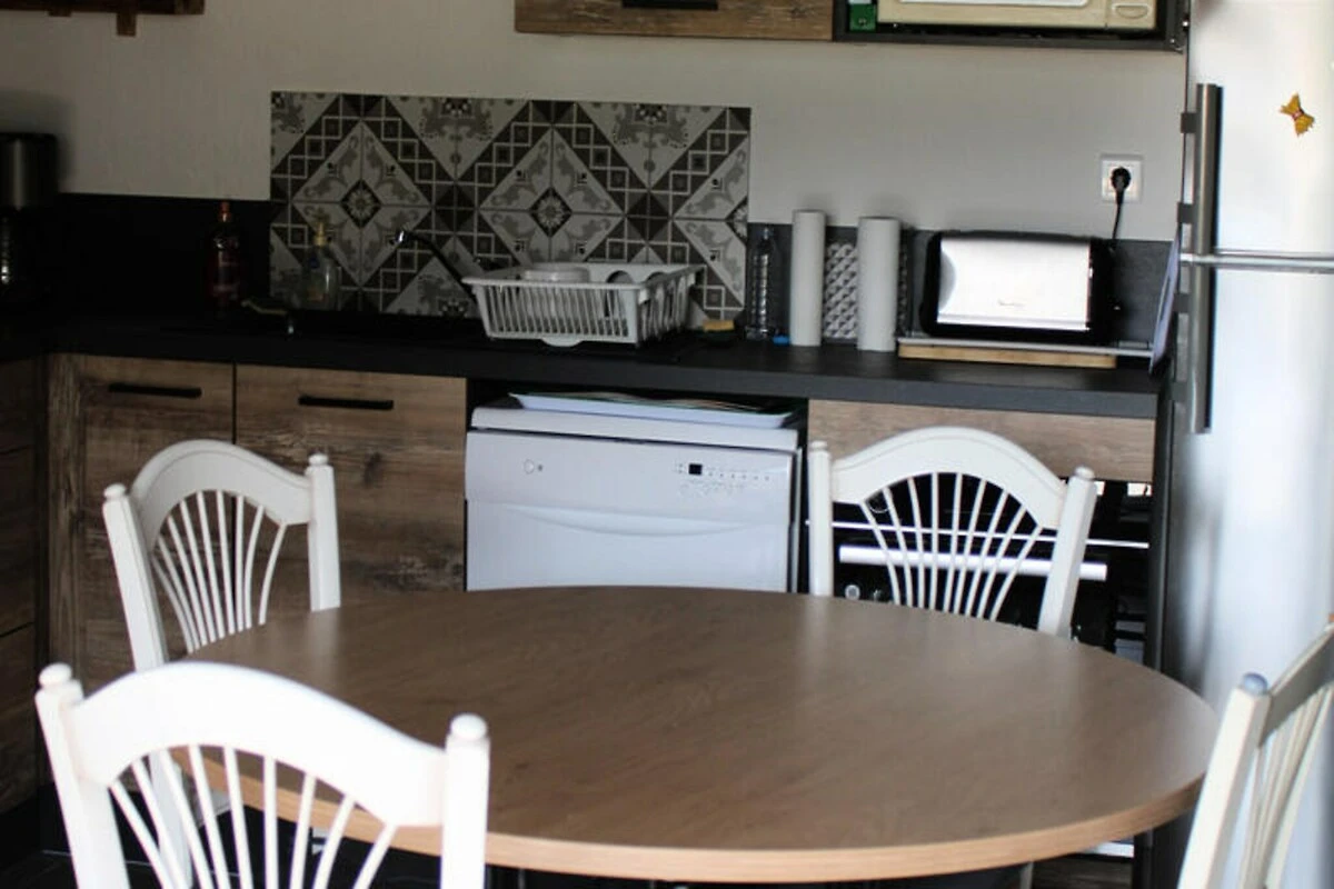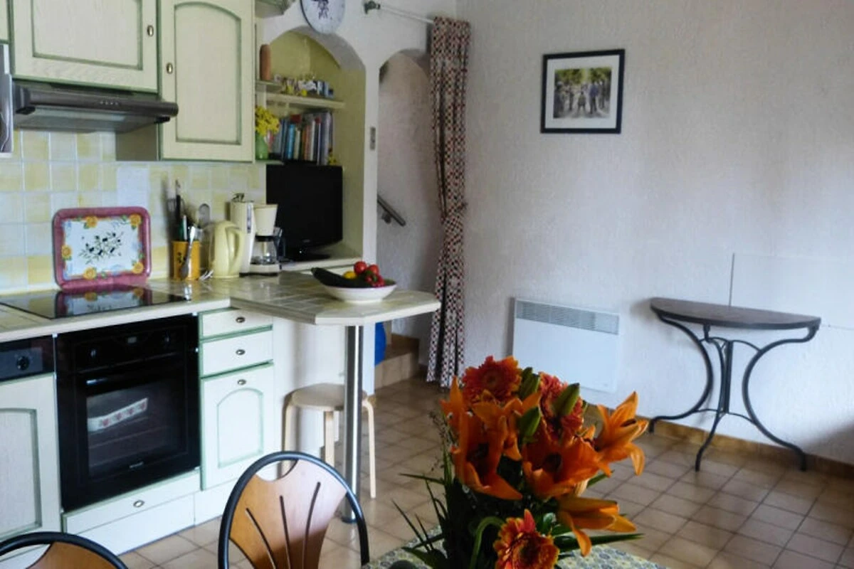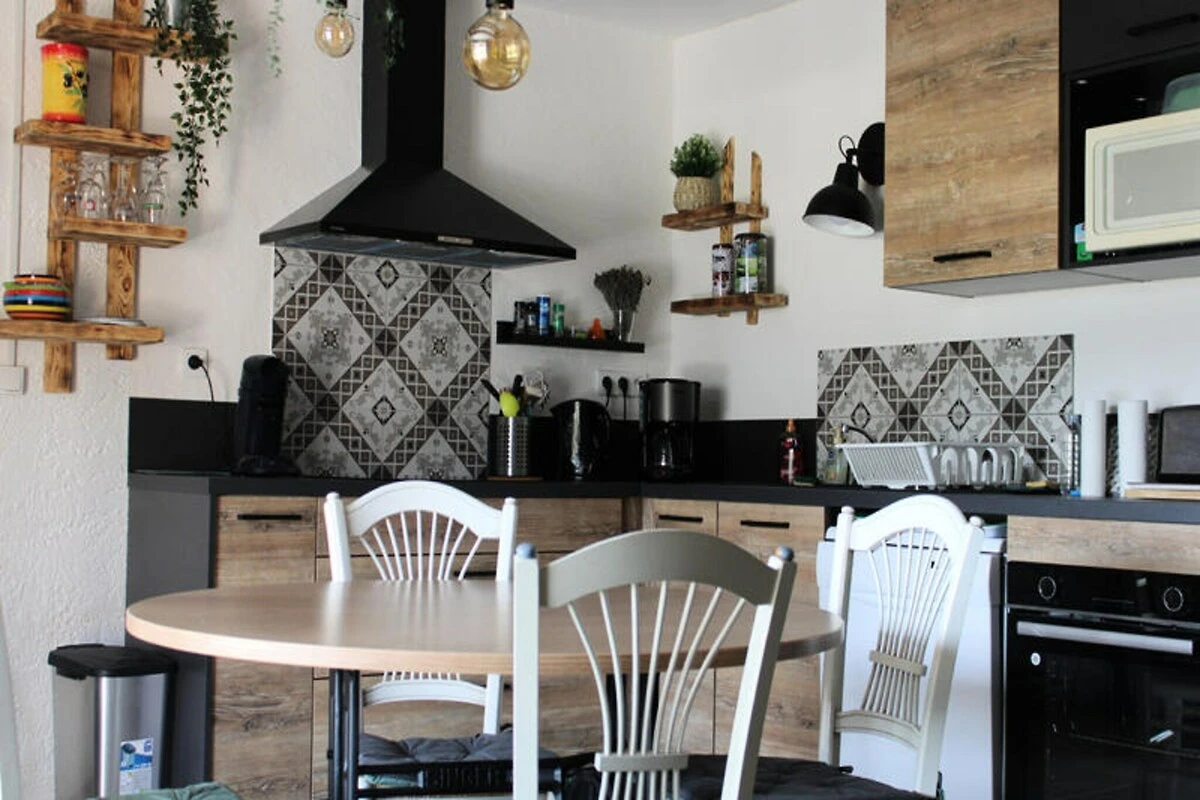 Im malerischen Dorf Mollans-sur-Ouvèze, wo provenzalischer Charme auf die Ruhe der Natur trifft, bietet dieses charmante Ferienhaus den perfekten Rahmen für einen unvergesslichen Urlaub. Umgeben von sanften Hügeln und Lavendelfeldern lädt dieses 55 m² große Ferienhaus zum Entspannen und Genießen der entspannten Lebensart im Herzen der Drôme Provençale ein. Ob Sie mit Freunden oder der Familie reisen, diese Unterkunft bietet eine warme und einladende Atmosphäre, in der Sie sich wie zu Hause fühlen werden. Im Inneren finden Sie zwei gemütliche Schlafzimmer – eines mit einem Doppelbett und das andere mit zwei Einzelbetten – sowie ein bequemes Doppelschlafsofa im Wohnzimmer. Somit bietet das Ferienhaus Platz für bis zu sechs Gäste. Die offene Küche ist komplett ausgestattet mit modernen Geräten, darunter Kühlschrank, Backofen, Mikrowelle und allem, was Sie für die Zubereitung köstlicher Mahlzeiten benötigen. Treten Sie hinaus auf die 15 m² große Terrasse mit Garten, wo Sie mit einem Buch entspannen, ein Glas Wein aus der Region genießen oder einfach die provenzalische Sonne tanken können.