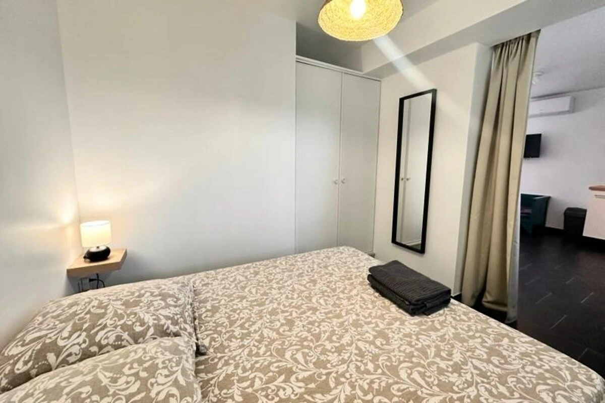 Sie finden ein geräumiges Wohnzimmer mit offener Küche, die mit allem ausgestattet ist, was Sie brauchen: Wasserkocher, Toaster, Kaffeemaschine usw. Ein Essbereich mit einem Tisch für vier Personen, ein Wohnbereich mit Fernseher, eine umschaltbare Klimaanlage und ein Badezimmer mit WC. Der Strand ist nur einen Steinwurf entfernt, und schöne Spaziergänge beginnen direkt von der Residenz aus. Bewundern Sie während Ihres Aufenthalts herrliche Sonnenuntergänge und genießen Sie das Meer in vollen Zügen.