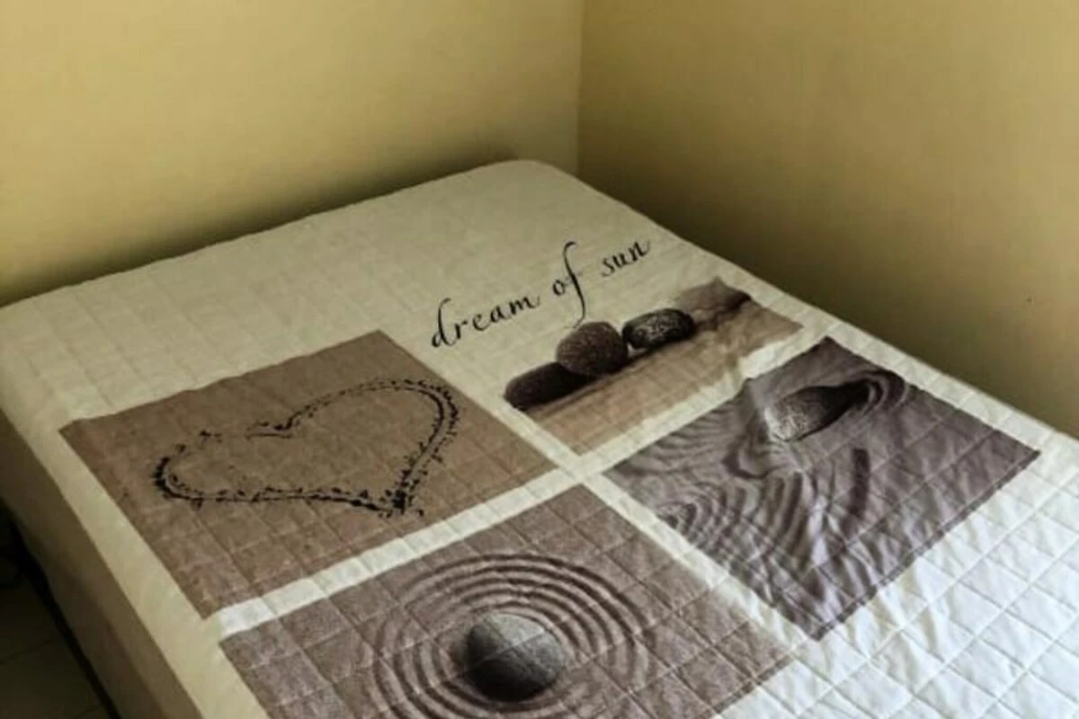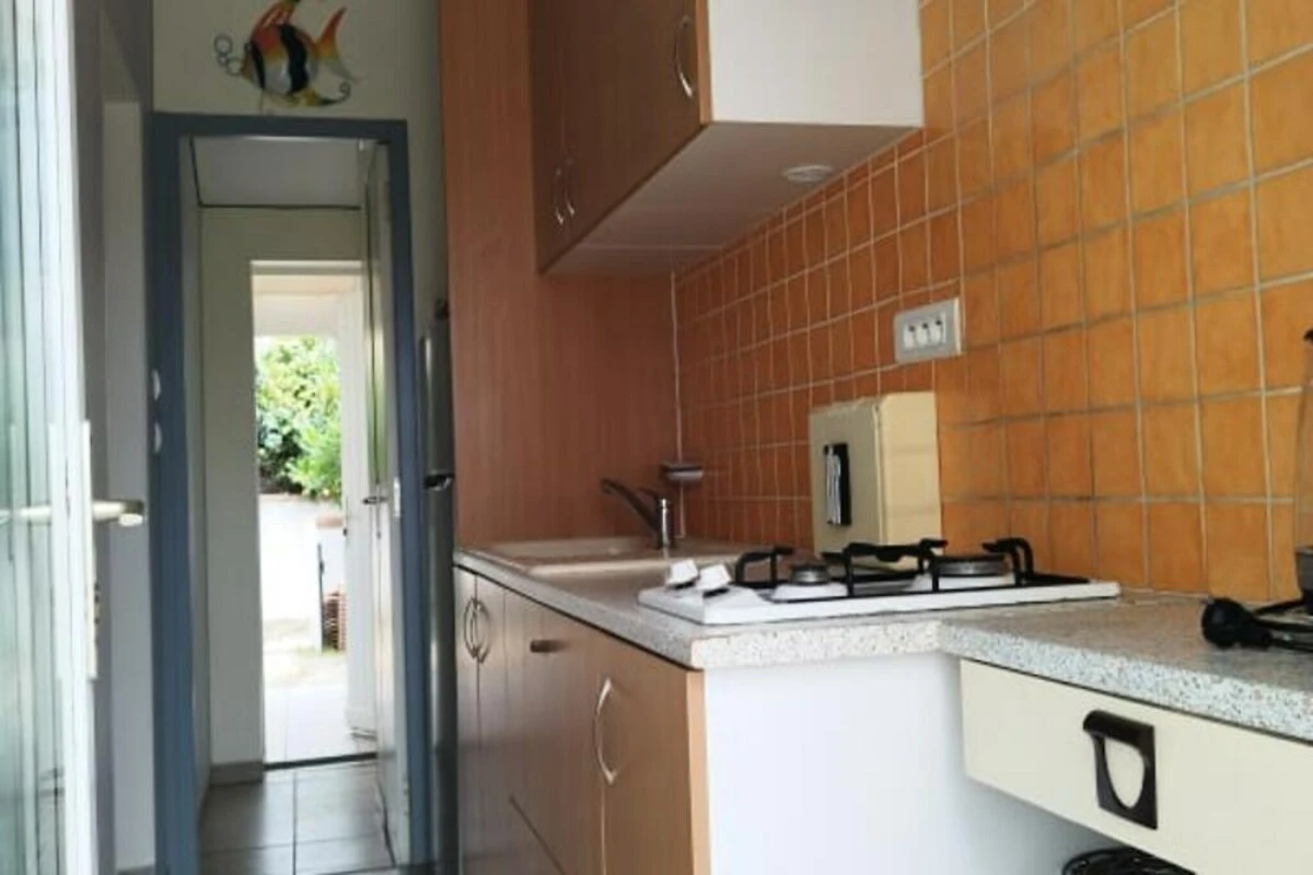 Das Haus bietet bequem Platz für bis zu vier Gäste in drei gemütlichen Schlafzimmern, darunter eines mit direktem Zugang zur Terrasse. Die voll ausgestattete Küche lädt zum Zubereiten köstlicher Mahlzeiten ein, während das Wohnzimmer mit Fernseher und tragbarer Klimaanlage für Komfort während Ihres Aufenthalts sorgt. Zusätzliche Annehmlichkeiten wie eine Waschmaschine, eine Mikrowelle und ein Gefrierschrank machen dieses Zuhause fern von Zuhause sowohl praktisch als auch einladend. Der private Innenhof mit einem Esstisch für 8 Personen ist ideal für Mahlzeiten im Freien oder zum Entspannen nach einem Tag am Strand.