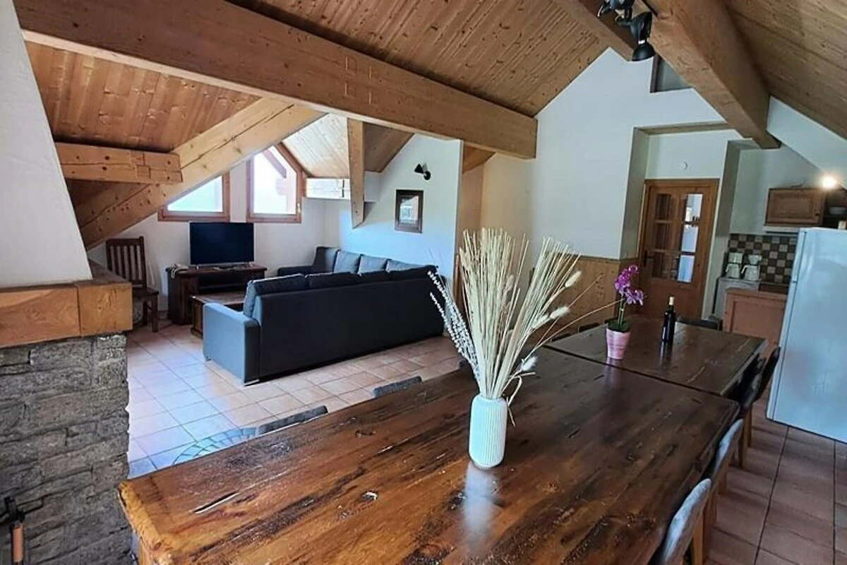 Die Residenz besteht aus fünf traditionellen Chalets aus Stein und Holz, die authentischen alpinen Charme versprühen. Ideal für Familien und Gruppen: Die geräumige Maisonette-Wohnung bietet Platz für bis zu 14 Gäste in sieben gemütlichen Schlafzimmern, die alle auf Komfort und Entspannung ausgelegt sind. Das Wohnzimmer mit Kamin lädt zum Entspannen nach einem erlebnisreichen Tag ein, während die voll ausgestattete Küche die Zubereitung von Mahlzeiten zum Vergnügen macht. Mit sieben Badezimmern und drei WCs ist Komfort für alle Gäste garantiert. Treten Sie hinaus auf den Balkon und genießen Sie den atemberaubenden Panoramablick auf die umliegende Bergwelt.