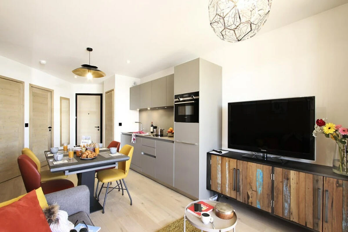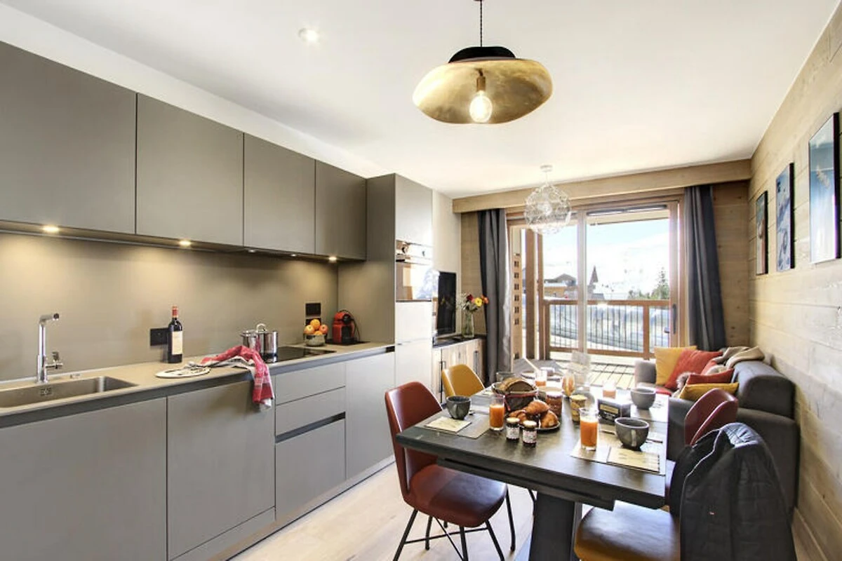 Genießen Sie das goldene Licht der französischen Alpen in diesem luxuriösen 43 m² großen Apartment in einer exklusiven neuen Residenz mit direktem Zugang zur Piste. Dank der Südausrichtung bietet die Unterkunft einen ungestörten Blick auf die Pisten und ist somit ein idyllischer Rückzugsort für Wintersportler und alle, die Ruhe und Erholung in den Alpen suchen. Schon bei Ihrer Ankunft werden Sie von der Kombination aus moderner Eleganz und alpinem Charme verzaubert sein.