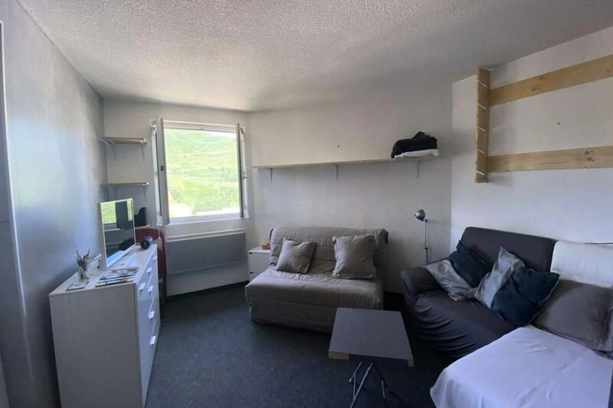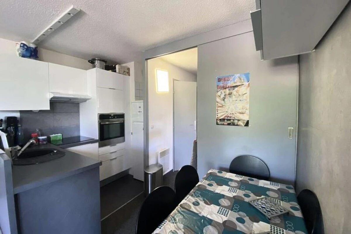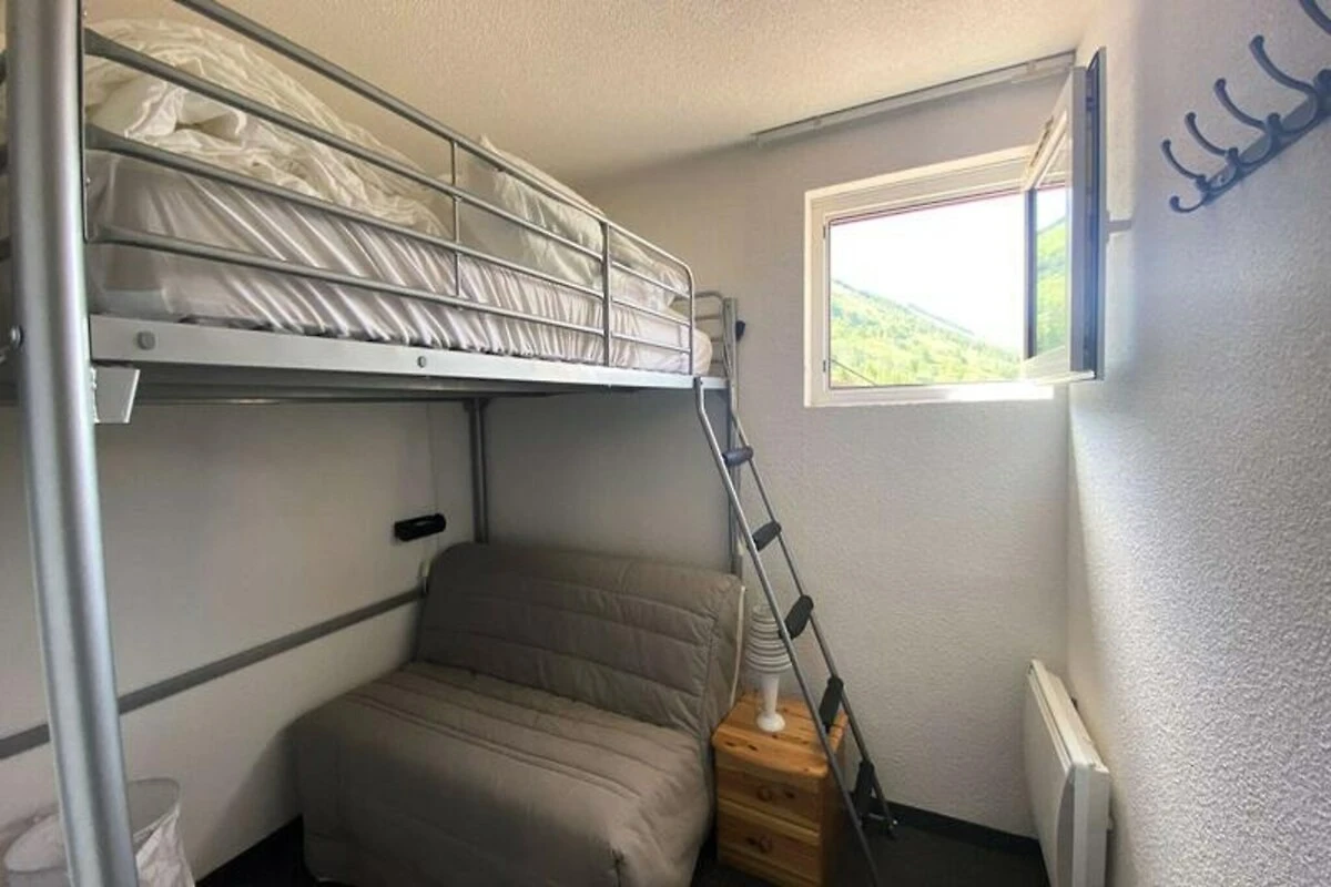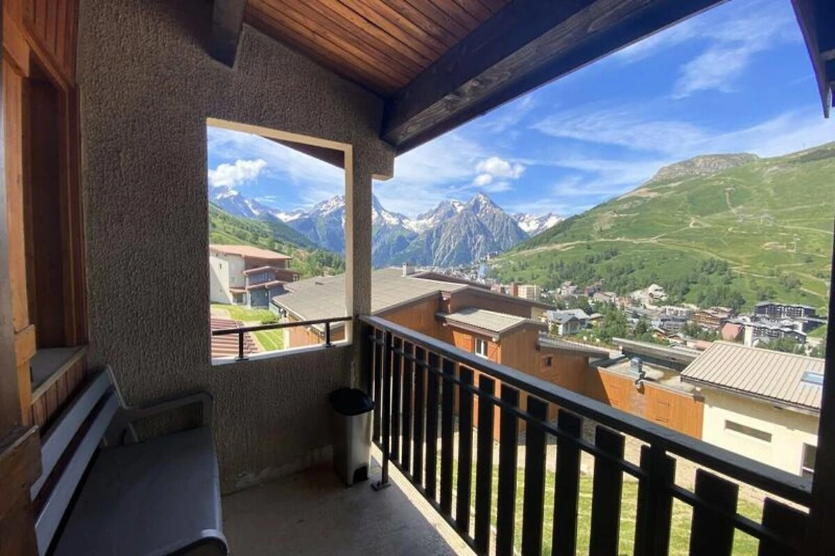 Hoch über den malerischen Hängen von Les Deux Alpes bietet dieses charmante Apartment mit zwei Schlafzimmern einen ruhigen Rückzugsort im begehrten Village 1800. Es befindet sich im vierten Stock der Residenz Écrins 3 und bietet bequemen Zugang zum Sessellift Le Village – der ideale Ausgangspunkt, um das bekannte Skigebiet zu erkunden. Schon beim Betreten des großen Balkons genießen Sie einen atemberaubenden Panoramablick auf die Berge und den lebhaften Ort – die perfekte Einstimmung auf einen unvergesslichen Alpenurlaub. Ob Sie Winterspaß oder Sommerabenteuer suchen, dieses Apartment bietet die ideale Kombination aus Komfort und Erreichbarkeit. \n\nDas Apartment ist durchdacht gestaltet und ideal für Familien und Gruppen. Es verfügt über ein helles Wohnzimmer mit einem Doppelschlafsofa, das auf den Balkon führt, eine voll ausgestattete offene Küche für die einfache Zubereitung von Mahlzeiten und zwei gemütliche Schlafzimmer. Ein Schlafzimmer ist mit einem Doppelstockbett ausgestattet – perfekt für Kinder oder Freunde –, das andere bietet ein Doppelbett mit viel Stauraum. Ein modernes Badezimmer und ein separates WC runden die Raumaufteilung ab und gewährleisten Praktikabilität und Privatsphäre für alle Gäste. Die Residenz verfügt außerdem über einen Aufzug für zusätzlichen Komfort und macht Ihren Aufenthalt so angenehm wie unkompliziert. \n\nLes Deux Alpes ist ein Reiseziel, das zu jeder Jahreszeit begeistert. Im Winter bieten die 225 km Pisten des Skigebiets für jedes Können etwas, und ein Gletscher auf 3.600 Metern Höhe garantiert Schneesicherheit. Im Sommer verwandelt sich die Region in ein Zentrum für Outdoor-Aktivitäten: von malerischen Wanderungen und aufregenden Mountainbike-Abfahrten bis hin zu Paragliding und Golf. Die lebendige Atmosphäre des Ortes mit seinen Bars, Restaurants und kulturellen Veranstaltungen sorgt dafür, dass keine Langeweile aufkommt. \n\nOb Sie nun Adrenalin pur oder Ruhe und Entspannung in den Bergen suchen – dieses Apartment ist Ihr Tor zu den schönsten Seiten von Les Deux Alpes. Buchen Sie jetzt und erleben Sie unvergessliche Momente in einem der bekanntesten Reiseziele der Alpen.