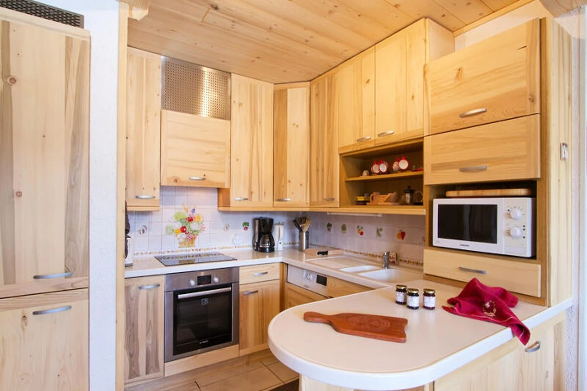Das Apartment ist durchdacht gestaltet und bietet Platz für bis zu acht Gäste. Es verfügt über zwei gemütliche Schlafzimmer, darunter eine Master-Suite mit eigenem Bad, sowie einen dritten Schlafbereich mit zwei Einzelbetten. Das Wohnzimmer mit seinem bequemen Schlafsofa und dem Flachbildfernseher mit DVD-Player lädt zum Entspannen nach einem erlebnisreichen Tag ein. Die voll ausgestattete Küche bietet moderne Annehmlichkeiten wie Geschirrspüler, Backofen, Mikrowelle und sogar einen Raclette-Grill und ein Fondue-Set für authentische alpine Genussmomente. Zwei separate WCs und ein Duschbad sorgen für zusätzlichen Komfort während Ihres Aufenthalts.