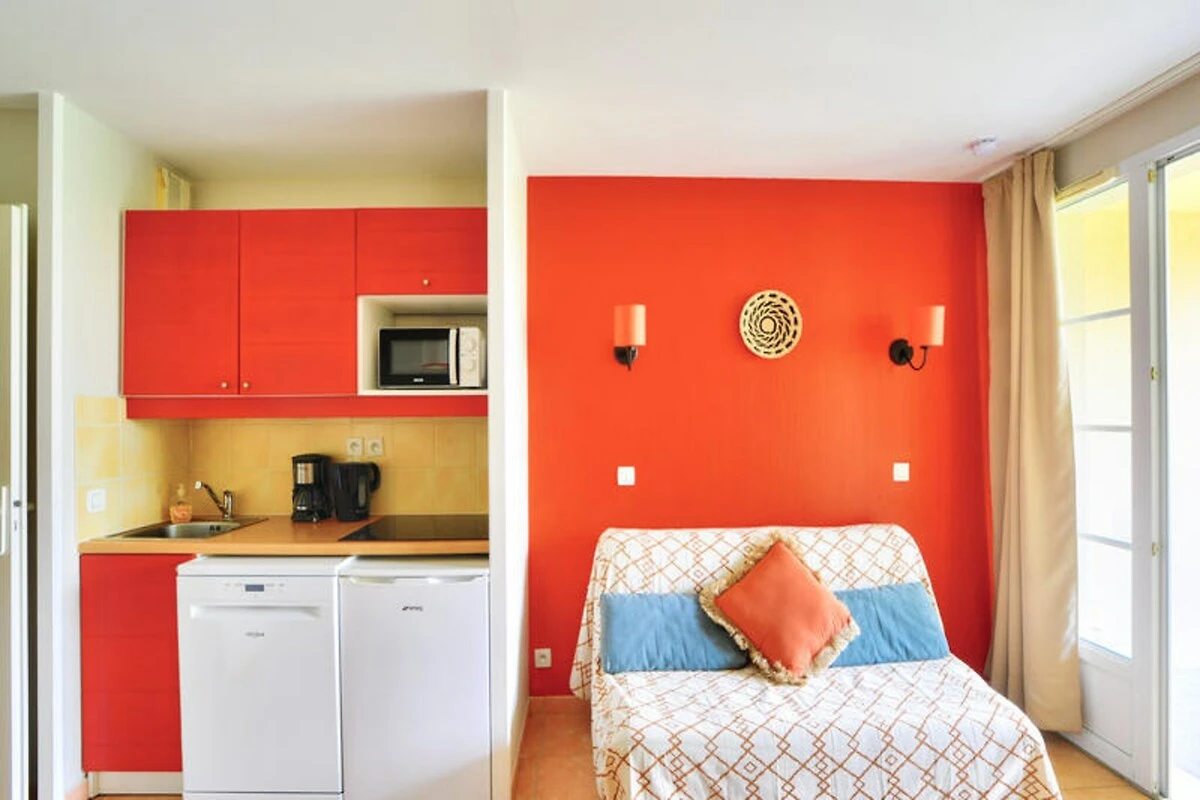 Das Apartment ist durchdacht gestaltet und bietet Platz für bis zu vier Gäste. Die Residenz bietet einen beheizten Außenpool, der von Mitte Mai bis Ende Oktober geöffnet ist, mit Planschbecken für Kinder und einer Sonnenterrasse zum Entspannen. Zu den Aktivitäten vor Ort gehören Tischtennis, Boule und Tischfußball. Die nahegelegenen Wege laden zu Erkundungstouren durch die Region zu Fuß oder mit dem Fahrrad ein. Sportbegeisterte finden in unmittelbarer Nähe Möglichkeiten zum Reiten, Golfen, Kanu- und Kajakfahren.