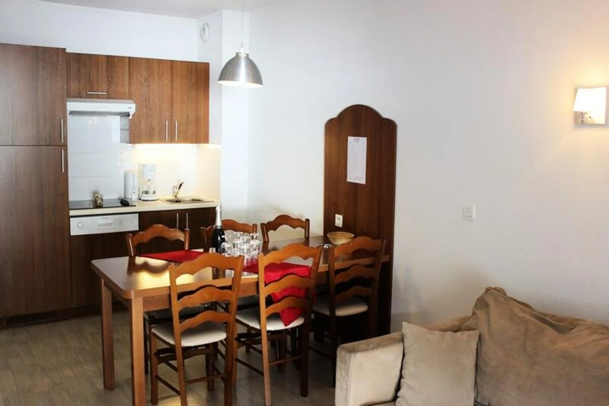 Die Residenz bietet geräumige, voll ausgestattete Apartments mit jeweils eigener Küche und Restaurants sowie einen Skipass- und Skiausrüstungsverleih. Nur 50 Meter von den Pisten entfernt, über eine Schneebrücke erreichbar, bietet die Residenz unvergleichlichen Zugang zum größten Skigebiet der französischen Pyrenäen. Ein kostenloser Shuttle-Service bringt Sie bequem ins Ortszentrum und zu den Liften, sodass Sie das lebhafte La Mongie-Gebiet erkunden können. Im Sommer locken der legendäre Tourmalet-Pass und die umliegenden Wanderwege Radfahrer und Wanderer gleichermaßen an.