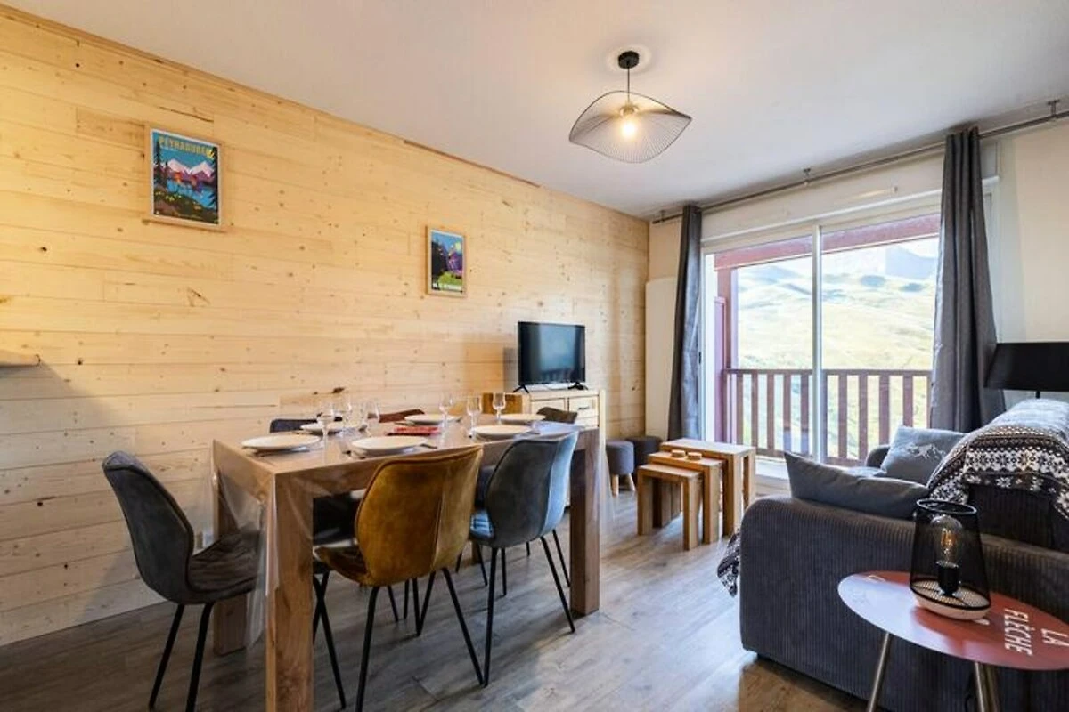Mitten in den majestätischen Pyrenäen bietet dieses charmante Maisonette-Apartment in Les Hauts de Peyragudes einen erholsamen Rückzugsort für bis zu acht Gäste. Umgeben von atemberaubenden Gipfeln und reiner Alpenluft lädt diese Unterkunft dazu ein, die Schönheit der französischen Pyrenäen zu genießen – egal ob Sie aufregende Wintersportarten oder entspannte Sommerwanderungen unternehmen möchten. Das gemütliche Ambiente und die durchdachte Raumaufteilung machen es zum idealen Ort für Familien oder Freundesgruppen, die Abenteuer und Erholung suchen. Im Inneren erwarten Sie zwei komfortable Schlafzimmer – eines mit einem Doppelbett und eines mit zwei Einzelbetten – sowie eine gemütliche Nische mit Etagenbetten und einem Schlafsofa im offenen Wohnbereich. Die voll ausgestattete Küche ermöglicht es Ihnen, nach einem erlebnisreichen Tag herzhafte Mahlzeiten zuzubereiten, während das geräumige Wohnzimmer zum Entspannen mit Ihren Lieben einlädt. Mit einem Badezimmer, einer Dusche und zwei WCs (eines davon separat) bietet das Apartment Komfort für alle Gäste. Zu den weiteren Annehmlichkeiten gehören ein Skiraum, Parkplätze und die Möglichkeit, Bettwäsche und Handtücher für einen unbeschwerten Aufenthalt zu mieten.