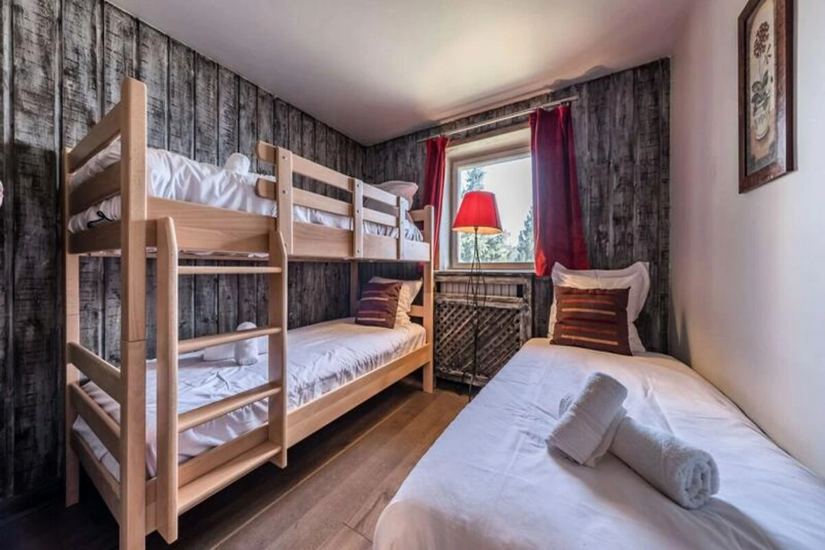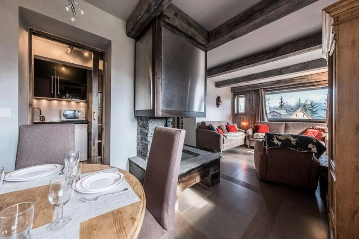 Hoch über den glitzernden Hängen von Courchevel 1850 bietet dieses elegante Apartment einen ruhigen Rückzugsort in einem charmanten Chalet mit nur zwei Wohneinheiten. Tauchen Sie ein in eine Welt alpiner Stille, wo atemberaubende Ausblicke und eine intime Atmosphäre den perfekten Rahmen für Ihre Auszeit in den Bergen schaffen. Ob Sie Abenteuer auf den nahegelegenen Pisten suchen oder ruhige Momente am Kamin genießen möchten – diese Unterkunft verspricht ein unvergessliches Erlebnis. Das 95 Quadratmeter große Apartment bietet bequem Platz für bis zu vier Gäste. Der geräumige Wohn- und Essbereich mit großem Erkerfenster und gemütlichem Kamin lädt zum Entspannen nach einem Tag im Schnee ein. Das Hauptschlafzimmer verfügt über ein luxuriöses Doppelbett, ein Badezimmer en suite mit Whirlpool-Badewanne und moderne Annehmlichkeiten wie eine Waschmaschine. Ein zweites Schlafzimmer bietet ein Einzelbett und ein Etagenbett – ideal für Familien oder kleine Gruppen. Die voll ausgestattete Küche lässt keine Wünsche offen, von einem Induktionskochfeld über eine Mikrowelle bis hin zu einem Toaster. Treten Sie hinaus auf den großzügigen Balkon oder die Terrasse und genießen Sie die frische Bergluft und die atemberaubende Aussicht. Dank WLAN bleiben Sie auch inmitten der friedlichen Umgebung stets verbunden. \n\nNur wenige Schritte von den Pisten entfernt, ist dieses Apartment ideal für Skibegeisterte gelegen. Courchevel 1850 bietet erstklassige Pisten, ein pulsierendes Après-Ski-Angebot und Gourmetrestaurants für ein rundum gelungenes alpines Abenteuer. Ein lokales Concierge-Team steht Ihnen jederzeit zur Verfügung und organisiert auf Anfrage personalisierte Check-ins, Skipässe und individuelle Erlebnisse. \n\nDiese außergewöhnliche Unterkunft besticht durch ihre gelungene Kombination aus Komfort, Bequemlichkeit und Charme. Ob Wintersport oder Sommerwanderungen – die Magie der französischen Alpen erwartet Sie auf Schritt und Tritt.