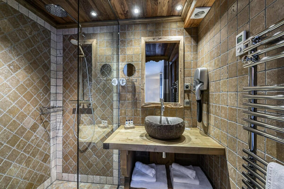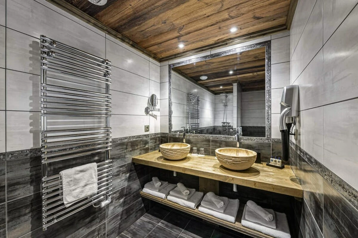 Mitten in den französischen Alpen bietet das Chalet l'Etagne einen unvergleichlichen Rückzugsort im charmanten Dorf Courchevel-le-Praz. Dieses luxuriöse Chalet, ruhig gelegen in einer Sackgasse gegenüber der Shuttle-Haltestelle, vereint traditionellen alpinen Charme mit moderner Eleganz und ist somit die ideale Wahl für Familien und Gruppen, die einen ruhigen und gleichzeitig stilvollen Bergurlaub suchen. Dank seiner erstklassigen Lage genießen Sie atemberaubende Landschaften und die lebendige Atmosphäre eines der renommiertesten Skigebiete der Welt. Das Chalet l'Etagne erstreckt sich über beeindruckende 370 m² und bietet Platz für bis zu 10 Erwachsene und 2 Kinder mit absolutem Komfort. Der großzügige Wohn- und Essbereich mit zentralem Kamin lädt zu gemütlichen Abenden nach einem Tag auf der Piste ein. Die offene Küche ist komplett ausgestattet für kulinarische Abenteuer, während die große Terrasse mit dreifacher Ausrichtung (Süden, Westen und Osten) eine traumhafte Kulisse für den Morgenkaffee oder entspannte Abende bietet. Das Chalet verfügt über einen privaten Wellnessbereich mit Sauna, Whirlpool und Umkleideräumen für ultimative Entspannung. Die Schlafzimmer, darunter eine luxuriöse Master-Suite und eine Familiensuite mit separatem Kinderzimmer, sind alle mit eigenem Bad ausgestattet und bieten höchsten Komfort und Privatsphäre.\n\nNur wenige Schritte entfernt befindet sich die Shuttle-Haltestelle Courchevel Le Praz, von der aus Sie bequem die weltberühmten Skipisten der Trois Vallées erreichen. Das charmante Dorf Le Praz mit seinen traditionellen Chalets, Gourmetrestaurants und dem malerischen See lädt zum Erkunden ein. Ob Skifahren im Winter oder Wandern im Sommer – die Umgebung bietet unzählige Möglichkeiten für Abenteuer und Erholung.\n\nMit seinen außergewöhnlichen Annehmlichkeiten, der erstklassigen Lage und der herzlichen Gastfreundschaft verspricht das Chalet l'Etagne einen unvergesslichen Aufenthalt in den Alpen. Vom ersten Moment Ihrer Ankunft mit einem Glas Champagner an werden Sie sich in diesem exquisiten Bergrefugium wie zu Hause fühlen. Jedes Detail wurde sorgfältig für Ihren Komfort und Ihr Wohlbefinden ausgewählt.