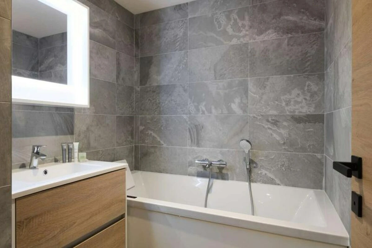Hoch über den malerischen Hängen von Courchevel 1650 bietet dieses luxuriöse und moderne Apartment einen unvergleichlichen alpinen Rückzugsort. Stellen Sie sich vor, Sie wachen jeden Morgen mit atemberaubendem Blick auf schneebedeckte Gipfel und das friedliche Tal auf – ganz bequem von Ihrem privaten Balkon aus. Ob Sie den Nervenkitzel des Skifahrens oder die Ruhe des Berglebens suchen, dieses Ski-in/Ski-out-Paradies verspricht einen unvergesslichen Aufenthalt. Das Apartment erstreckt sich über beeindruckende 95 Quadratmeter und bietet bequem Platz für bis zu acht Gäste. Der lichtdurchflutete Wohn- und Essbereich lädt mit seiner eleganten Einrichtung und dem modernen Dekor zum Entspannen ein. Die voll ausgestattete Küche mit modernsten Geräten wie einer L'Or Barista Kaffeemaschine und einem Weinkeller sorgt dafür, dass jede Mahlzeit zum Genuss wird. Die Schlafzimmer sind auf höchsten Komfort ausgelegt, darunter eine Master-Suite mit eigenem Bad und Balkon, ein zweites Schlafzimmer mit Queensize-Bett und ein vielseitig nutzbares drittes Zimmer, das mit vier Einzelbetten oder zwei Doppelbetten eingerichtet werden kann. Gönnen Sie sich nach einem Tag auf der Piste einen entspannenden Whirlpool und genießen Sie den Komfort von Waschmaschine/Trockner, Skischrank und überdachtem Parkplatz.