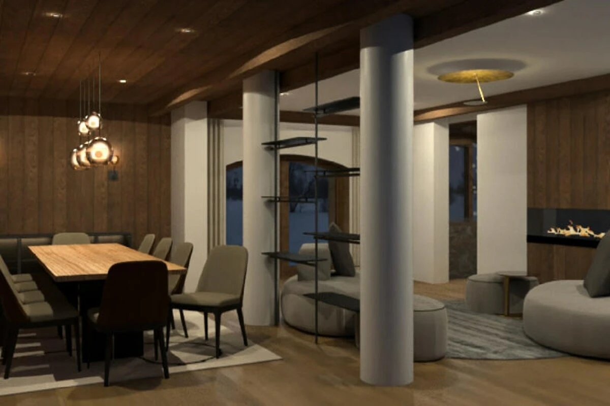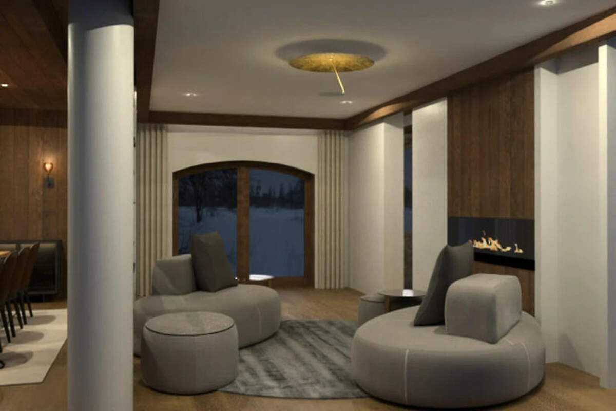 Das Apartment erstreckt sich über zwei Etagen und bietet bequem Platz für bis zu sechs Erwachsene und vier Kinder. Der Wohnbereich im Gartengeschoss ist eine Oase der Entspannung und verfügt über ein geräumiges Wohnzimmer, einen Essbereich und eine offene Küche, die mit allem ausgestattet ist, was Sie für unvergessliche Mahlzeiten benötigen. Im Untergeschoss befinden sich die Schlafzimmer, darunter drei Doppelzimmer mit eigenem Bad und ein gemütlicher Schlafsaal mit zwei Einzelbetten, die alle mit durchdachten Details gestaltet sind, um erholsame Nächte zu gewährleisten. Der Wellnessbereich mit Sauna und Hammam lädt Sie ein, sich nach einem Tag auf der Piste zu entspannen, während der Wintergarten das Innere in natürliches Licht taucht und eine ruhige Atmosphäre schafft.
