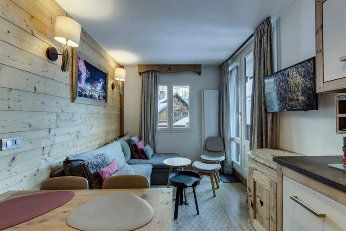 Inmitten des idyllischen Charmes von Val d'Isère bietet die Résidence des Verdets einen ruhigen Rückzugsort nur wenige Schritte vom lebhaften Zentrum des Ortes entfernt. Die Unterkunft liegt in einer ruhigen Straße nahe dem Busbahnhof und garantiert Ruhe und Komfort. Geschäfte, Restaurants und Skiverleihe sind bequem zu erreichen. Die Pisten sind nur 400 Meter entfernt und mit den kostenlosen und häufig verkehrenden Shuttlebussen sowie dem Roten und Gelben Zug schnell erreichbar – der ideale Ausgangspunkt für Ihre alpinen Abenteuer. Genießen Sie die frische Bergluft und erkunden Sie eines der bekanntesten Skigebiete Frankreichs. \n\nDas Apartment V27 im zweiten Stock ist durchdacht gestaltet und bietet Platz für bis zu vier Gäste. Es wurde kürzlich renoviert und geschmackvoll eingerichtet und verfügt über zwei gemütliche Schlafzimmer, zwei moderne Badezimmer und ein komfortables Wohnzimmer mit Flachbildfernseher, DVD-Player und Stereoanlage. Die voll ausgestattete Küche mit Induktionskochfeld, Backofen, Geschirrspüler, Kühlschrank, Waschmaschine sowie Espresso- und Filterkaffeemaschine sorgt für einen reibungslosen Aufenthalt. Genießen Sie Ihren Morgenkaffee auf dem nach Osten ausgerichteten Balkon oder entspannen Sie sich nach einem Tag auf der Piste auf dem nach Norden ausgerichteten Balkon. Zu den weiteren Annehmlichkeiten gehören ein Skiraum, WLAN und eine Zwischenreinigung – alles inklusive für Ihren Komfort. \n\nNeben der Residenz lockt Val d'Isère mit seinem pulsierenden Après-Ski-Angebot. Lassen Sie sich in nahegelegenen Restaurants wie La Baraque und L'Arbre de Vie mit lokalen Spezialitäten verwöhnen oder genießen Sie Drinks und Unterhaltung im Le XV, Coin des Amis und Le Doudoune Club. Für den Skiverleih bietet INTERSPORT Front de Neige MATTIS Sonderpreise, damit Sie bestens für Ihre Abenteuer ausgerüstet sind. Ob Sie nun wegen des Nervenkitzels beim Skifahren oder des Charmes des Ortes hier sind – die Résidence des Verdets verspricht einen unvergesslichen Aufenthalt in den Alpen.