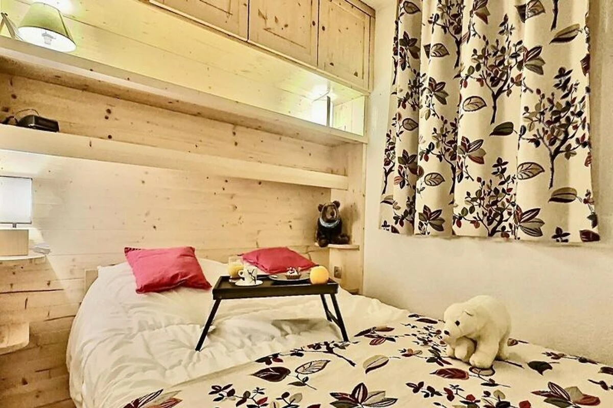 Das 42 m² große Apartment bietet bequem Platz für bis zu sechs Gäste und ist somit ideal für Familien oder kleine Gruppen. Das Wohnzimmer verfügt über ein ausziehbares Schlafsofa für zwei Personen, das sich durch eine Schiebetür vom restlichen Raum abtrennen lässt und so für mehr Privatsphäre sorgt. Das Schlafzimmer ist mit einem gemütlichen Doppelbett ausgestattet, während die Schlafnische über Etagenbetten verfügt – perfekt für Kinder oder weitere Gäste. Die voll ausgestattete Küche mit Induktionskochfeld, Backofen, Mikrowelle, Kühlschrank und Geschirrspüler ermöglicht Ihnen die mühelose Zubereitung köstlicher Mahlzeiten. Moderne Annehmlichkeiten wie ein Fernseher mit integriertem DVD-Player, eine Mini-Stereoanlage und ein Skischrank erhöhen den Komfort und die Praktikabilität Ihres Aufenthalts.
