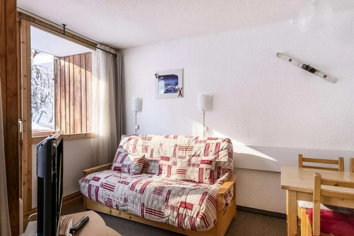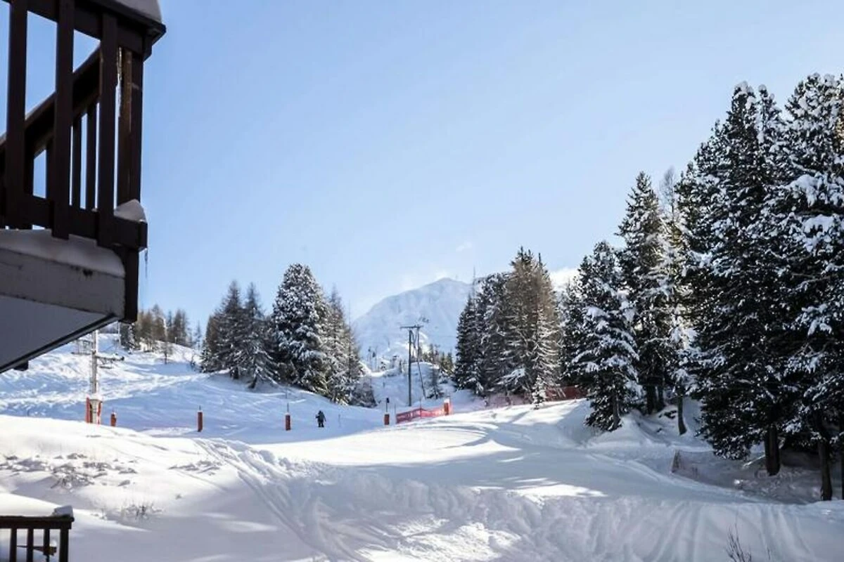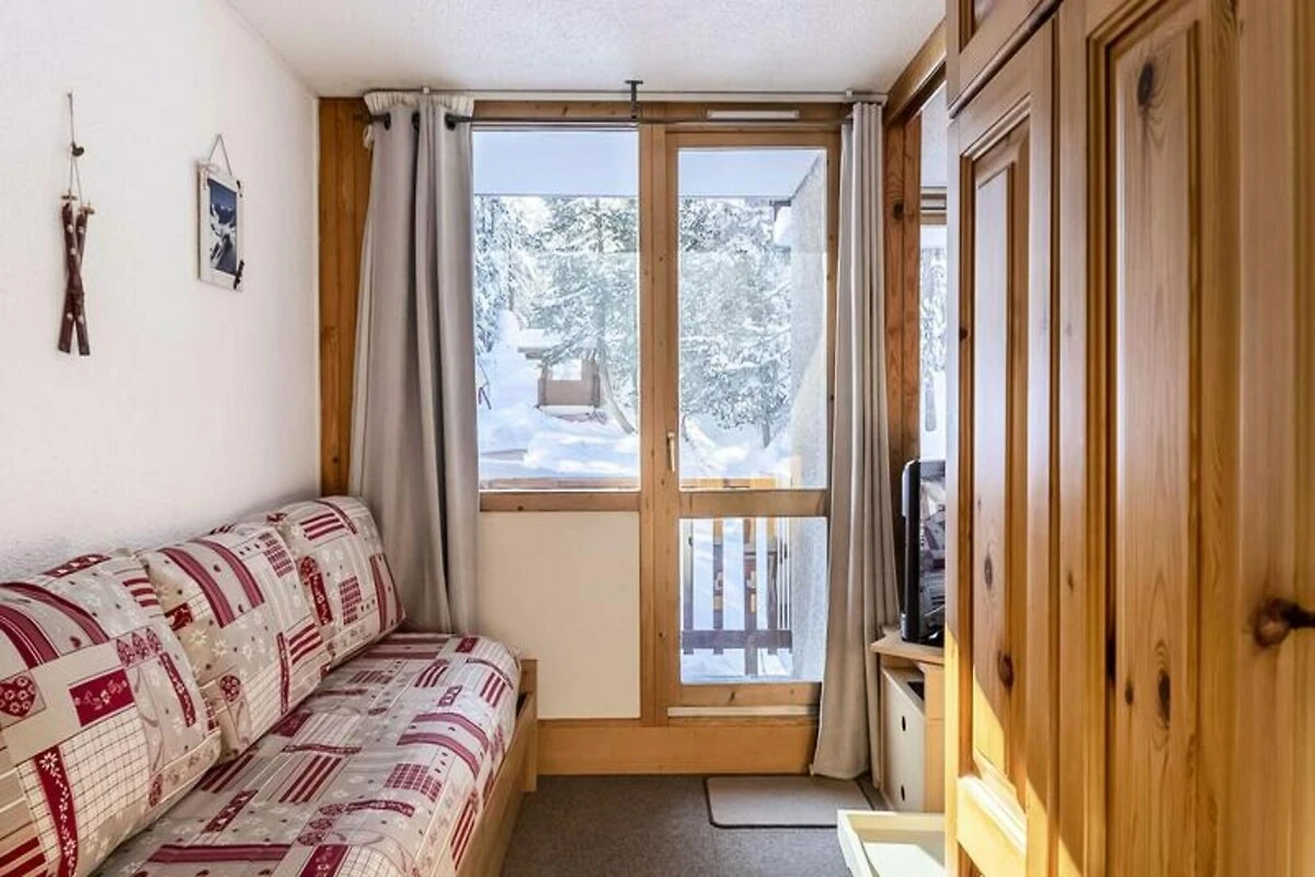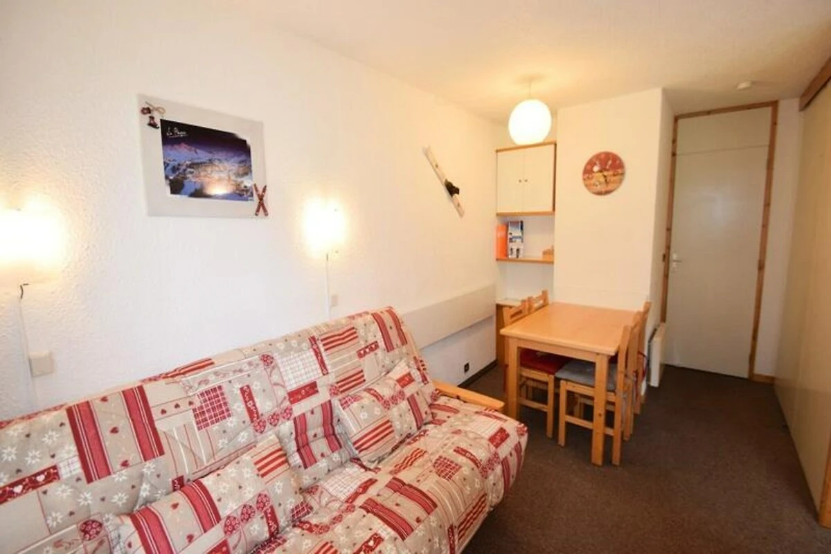 Eingebettet in die alpine Atmosphäre von Plagne Villages bietet dieses charmante Studio-Apartment einen gemütlichen Rückzugsort mit direktem Zugang zu den Pisten von Paradiski. Stellen Sie sich vor, Sie wachen mit der frischen Bergluft auf, treten auf einen Ihrer beiden privaten Balkone und sind nur wenige Schritte von aufregenden Skiabenteuern entfernt. Die Südwestlage sorgt für viel natürliches Licht und schafft eine warme und einladende Atmosphäre für Ihren Aufenthalt. Ob Sie zum Wintersport oder zum Wandern im Sommer kommen, diese Unterkunft ist perfekt gelegen, um in die Schönheit der französischen Alpen einzutauchen. Das Apartment ist für bis zu vier Gäste ausgelegt und verfügt über eine clevere Raumaufteilung mit einem teilbaren Wohnbereich. Der Essbereich ist mit einem bequemen Doppelschlafsofa ausgestattet, während der Schlafbereich zwei Ausziehbetten für zusätzliche Flexibilität bietet. Eine Schiebetür trennt die voll ausgestattete Küche ab, die über ein elektrisches Kochfeld, einen Kombi-Backofen, einen Kühlschrank mit Gefrierfach, einen Geschirrspüler und eine Senseo-Kaffeemaschine verfügt. Das Badezimmer ist mit einer Badewanne und einer Waschmaschine ausgestattet und bietet somit Komfort während Ihres Aufenthalts. Babyausstattung wie ein Kinderbett und ein Hochstuhl sind ebenfalls vorhanden, was das Apartment ideal für Familien macht. Das Apartment befindet sich im Hochparterre und bietet direkten Zugang zu den Pisten. Ein separater Skiraum sorgt für sicheren Halt Ihrer Ausrüstung. In Plagne Villages finden Sie zahlreiche Einrichtungen in unmittelbarer Nähe, darunter Skischulen, Skiverleihe und Restaurants – alles, was Sie brauchen, ist bequem erreichbar. Im Sommer erwarten Sie atemberaubende Loipen, saftige Wiesen und Panoramablicke über das Tarentaise-Tal. Ob Sie actionreiche Tage oder ruhige Abende unter dem Alpenhimmel suchen – dieses Studio ist der perfekte Ausgangspunkt für unvergessliche Bergerlebnisse. Erleben Sie die Magie von Paradiski in diesem komfortablen und stilvoll eingerichteten Refugium.