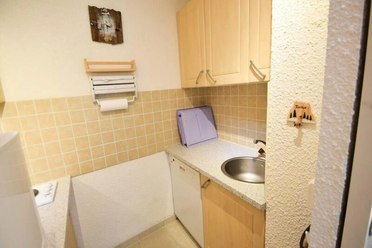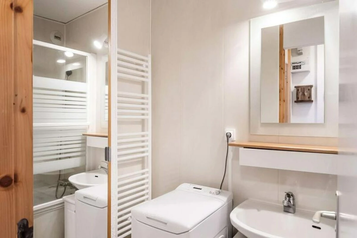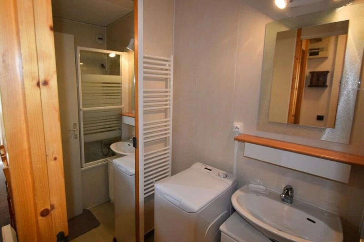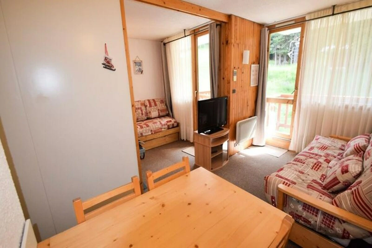 Eingebettet in die alpine Atmosphäre von Plagne Villages bietet dieses charmante Studio-Apartment einen gemütlichen Rückzugsort mit direktem Zugang zu den Pisten von Paradiski. Stellen Sie sich vor, Sie wachen mit der frischen Bergluft auf, treten auf einen Ihrer beiden privaten Balkone und sind nur wenige Schritte von aufregenden Skiabenteuern entfernt. Die Südwestlage sorgt für viel natürliches Licht und schafft eine warme und einladende Atmosphäre für Ihren Aufenthalt. Ob Sie zum Wintersport oder zum Wandern im Sommer kommen, diese Unterkunft ist perfekt gelegen, um in die Schönheit der französischen Alpen einzutauchen. Das Apartment ist für bis zu vier Gäste ausgelegt und verfügt über eine clevere Raumaufteilung mit einem teilbaren Wohnbereich. Der Essbereich ist mit einem bequemen Doppelschlafsofa ausgestattet, während der Schlafbereich zwei Ausziehbetten für zusätzliche Flexibilität bietet. Eine Schiebetür trennt die voll ausgestattete Küche ab, die über ein elektrisches Kochfeld, einen Kombi-Backofen, einen Kühlschrank mit Gefrierfach, einen Geschirrspüler und eine Senseo-Kaffeemaschine verfügt. Das Badezimmer ist mit einer Badewanne und einer Waschmaschine ausgestattet und bietet somit Komfort während Ihres Aufenthalts. Babyausstattung wie ein Kinderbett und ein Hochstuhl sind ebenfalls vorhanden, was das Apartment ideal für Familien macht. Das Apartment befindet sich im Hochparterre und bietet direkten Zugang zu den Pisten. Ein separater Skiraum sorgt für sicheren Halt Ihrer Ausrüstung. In Plagne Villages finden Sie zahlreiche Einrichtungen in unmittelbarer Nähe, darunter Skischulen, Skiverleihe und Restaurants – alles, was Sie brauchen, ist bequem erreichbar. Im Sommer erwarten Sie atemberaubende Loipen, saftige Wiesen und Panoramablicke über das Tarentaise-Tal. Ob Sie actionreiche Tage oder ruhige Abende unter dem Alpenhimmel suchen – dieses Studio ist der perfekte Ausgangspunkt für unvergessliche Bergerlebnisse. Erleben Sie die Magie von Paradiski in diesem komfortablen und stilvoll eingerichteten Refugium.