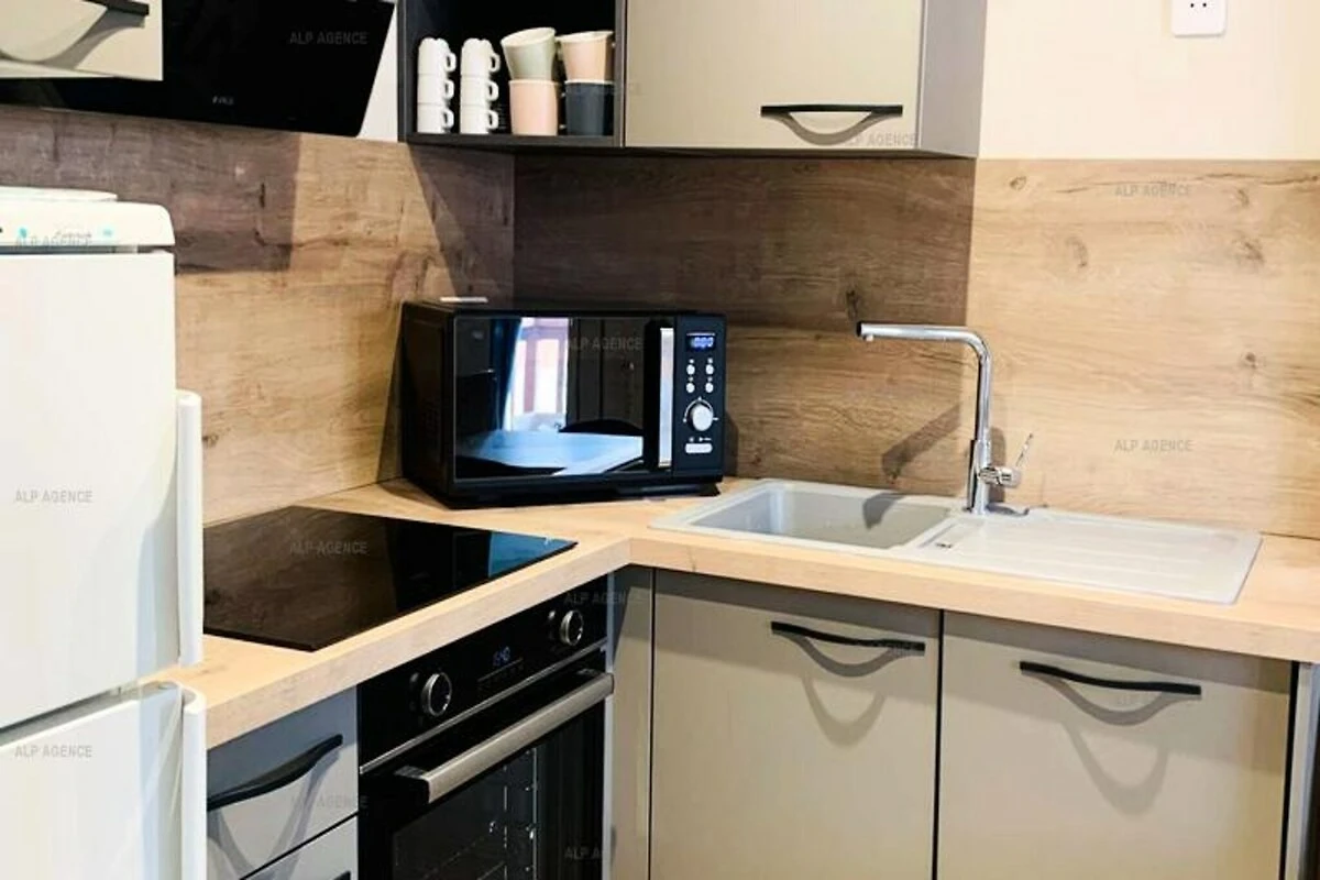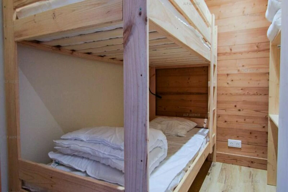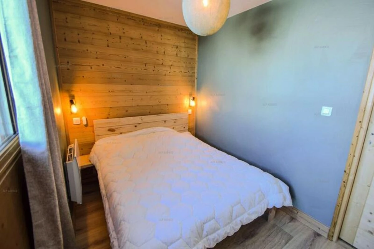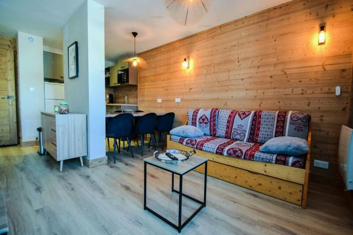 Hoch über dem Tarentaise-Tal bietet dieses wunderschön renovierte Apartment in der Residenz LES HAMEAUX II einen ruhigen Rückzugsort in den Alpen, mitten in Plagne Villages. Mit seinem modernen Design und der durchdachten Ausstattung bietet es die perfekte Balance aus Komfort und Bequemlichkeit für Ihren Bergurlaub. Stellen Sie sich vor, wie Sie von Ihrem privaten, nach Nordosten ausgerichteten Balkon mit Panoramablick auf das Tal und den Ort aufwachen und die frische Bergluft die perfekte Einstimmung auf einen Tag voller Abenteuer oder Entspannung schafft. Das 40 m² große Apartment mit zwei Zimmern und einer Hütte bietet bequem Platz für bis zu sechs Gäste. Die offene Küche ist komplett ausgestattet mit Kühlschrank, Gefrierschrank, Elektroherd, Backofen, Mikrowelle, Geschirrspüler und sogar Spezialgeräten wie einem Raclette- und Fondue-Set für gemütliche Abende. Der Wohnbereich verfügt über einen Essbereich und eine Sitzecke mit zwei ausziehbaren Einzelbetten, die zu einem Doppelbett umgewandelt werden können. Das Schlafzimmer bietet ein luxuriöses Doppelbett und Zugang zum Balkon. Ein separater Schlafbereich mit Etagenbetten bietet ausreichend Platz für Familien oder Gruppen. Moderne Annehmlichkeiten wie Waschmaschine, Fernseher und Skischränke sorgen für einen angenehmen Aufenthalt, während das elegante Badezimmer mit Dusche für einen Hauch von Luxus sorgt.