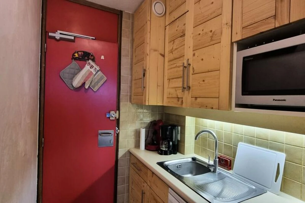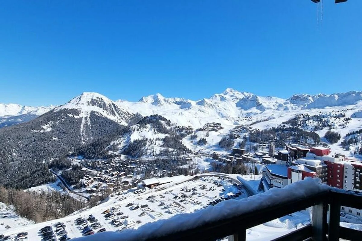 Hoch über dem Tarentaise-Tal bietet dieses charmante Studio-Apartment einen Logenplatz mit atemberaubendem Blick auf den Mont Blanc und die lebhaften Skigebiete von La Plagne. Gelegen im legendären Paquebot des Neiges, ist diese Ski-in/Ski-out-Unterkunft ein Paradies für Bergfreunde, die Abenteuer und Komfort suchen. Dank der Nord- und Südausrichtung ist das Apartment lichtdurchflutet und bietet eine warme und einladende Atmosphäre für Ihren alpinen Urlaub. Das kürzlich renovierte, 25,19 m² große Studio ist ideal für 3 bis 4 Gäste. Das Wohnzimmer verfügt über ein bequemes Doppelschlafsofa, einen Esstisch für vier Personen und einen Flachbildfernseher – perfekt zum Entspannen nach einem Tag auf der Piste. Eine gemütliche Schlafnische mit Etagenbetten bietet zusätzlichen Platz für erholsame Nächte. Die separate Küche ist komplett ausgestattet mit Backofen, Cerankochfeld, Kühlschrank und Geschirrspüler, sodass die Zubereitung von Mahlzeiten zum Kinderspiel wird. Das moderne Badezimmer verfügt über eine Badewanne, und ein separates WC sorgt für zusätzlichen Komfort. Treten Sie auf den nach Osten ausgerichteten Balkon und genießen Sie den atemberaubenden Blick auf den Mont Blanc und die umliegende Alpenlandschaft. Das Paquebot des Neiges bietet unvergleichlichen Komfort: Alle Geschäfte und die Seilbahnstation befinden sich im Erdgeschoss (Ebene G) der Unterkunft. Ein kostenloser Shuttlebus bringt Sie bequem zu den nahegelegenen Sehenswürdigkeiten, während kostenlose Parkplätze im Freien und kostenpflichtige überdachte Parkplätze für Flexibilität sorgen. Dank Skiraum und direktem Zugang zur Piste ist dies der perfekte Ausgangspunkt für Wintersportbegeisterte. Ob Sie nun durch unberührten Pulverschnee gleiten, die malerischen Wanderwege erkunden oder einfach nur entspannen und den friedlichen Bergblick genießen möchten – diese Studio-Hütte ist Ihr Tor zu einem unvergesslichen alpinen Abenteuer. Lassen Sie sich von der Magie der französischen Alpen in diesem einzigartigen und bestens ausgestatteten Refugium verzaubern.