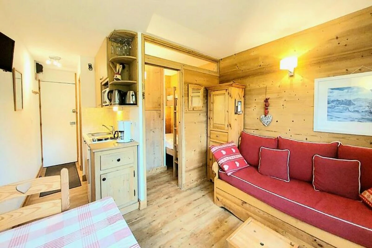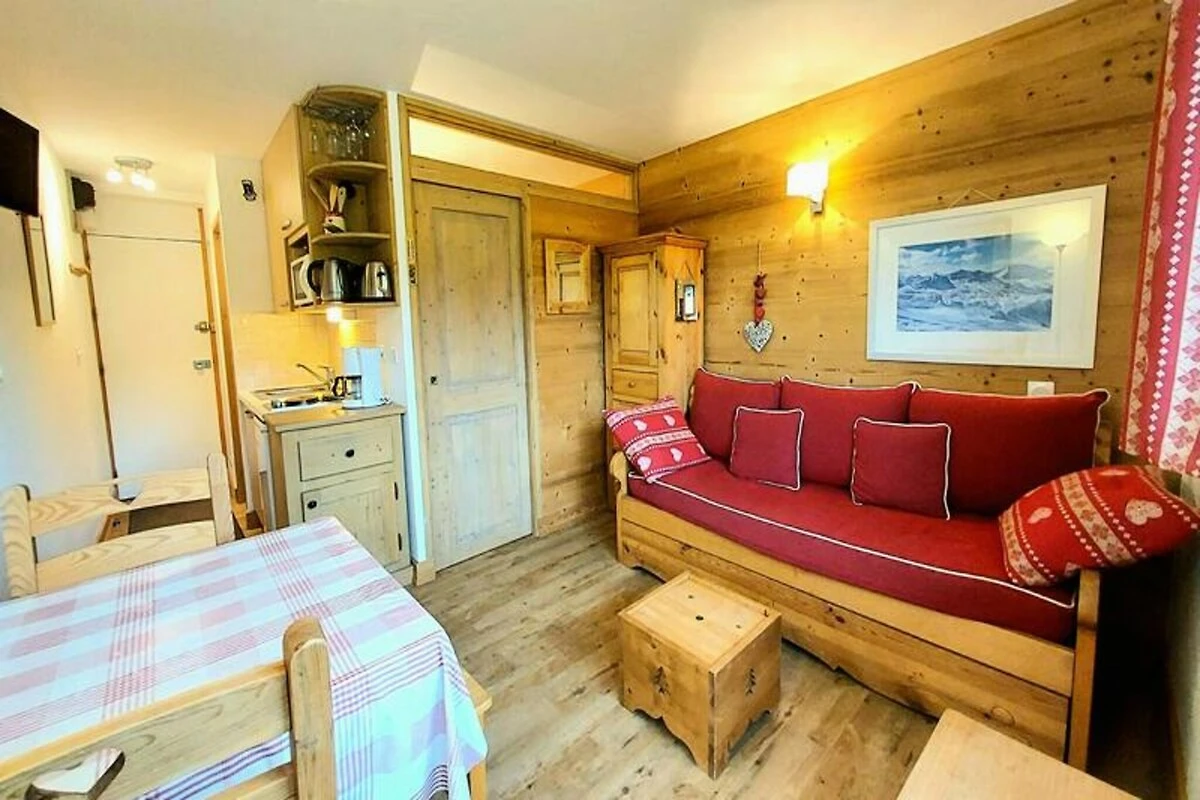 Das kompakte, aber durchdacht gestaltete 20 m² große Apartment bietet bequem Platz für bis zu vier Gäste. Das Wohnzimmer ist mit einem Fernseher, einem Einzelbett und einem Ausziehbett ausgestattet, während ein separater Schlafbereich mit Etagenbetten für Privatsphäre und Komfort sorgt. Die Küche ist mit allem Notwendigen ausgestattet, darunter ein Kombi-Backofen, ein Elektroherd und ein Kühlschrank, sodass Sie sich nach einem Tag auf der Piste problemlos verpflegen können. Zusätzliche Annehmlichkeiten wie ein Skischrank und optionale Services wie Bettwäsche- und Handtuchlieferung runden Ihren Aufenthalt ab.