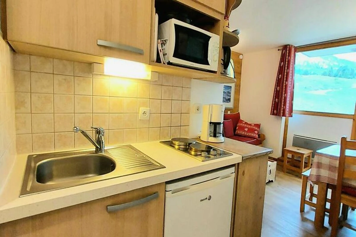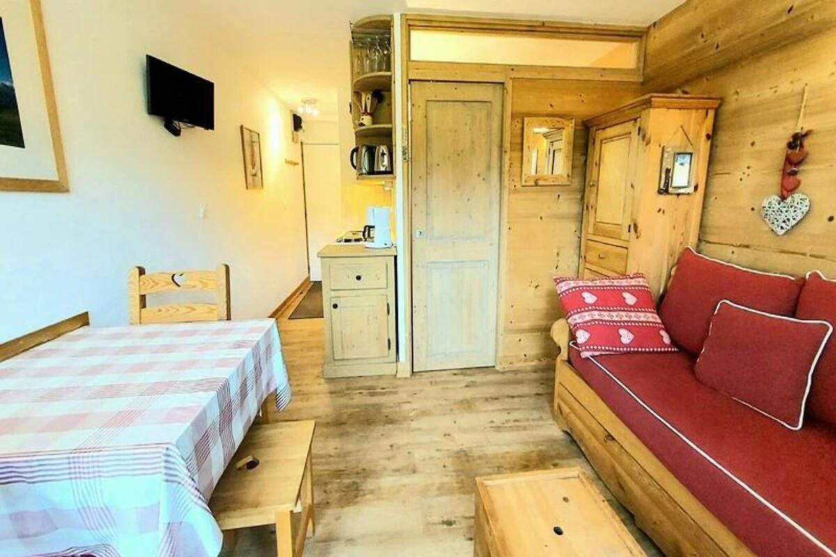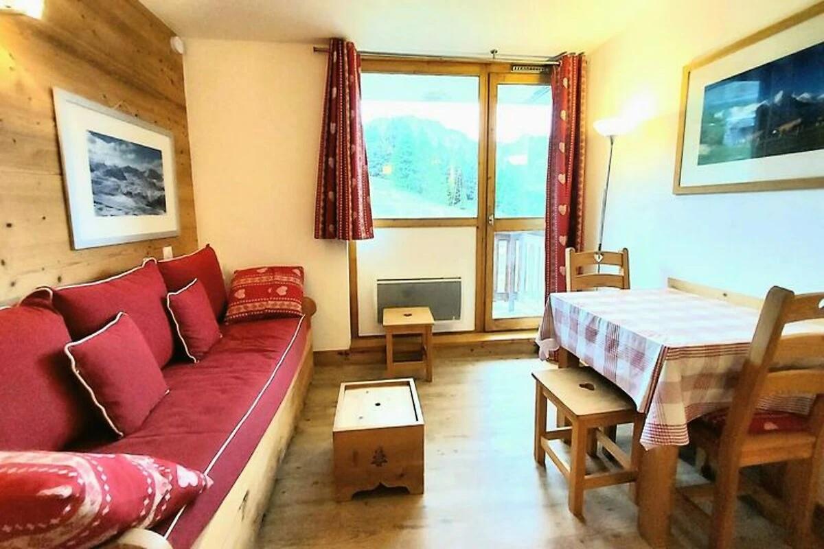 Hoch über dem Tarentaise-Tal bietet dieses charmante Studio-Apartment in der Hameaux 2 Residence auf 2.050 Metern Höhe einen gemütlichen Rückzugsort in den Alpen. Vom Südbalkon aus genießen Sie einen atemberaubenden Blick auf schneebedeckte Gipfel und direkten Zugang zu den Pisten. Ob Sie nun den Nervenkitzel des Skifahrens oder die Ruhe der Bergwelt suchen – diese Unterkunft liegt mitten in Plagne Villages, einem familienfreundlichen Ferienort, der bequem per Seilbahn mit Plagne-Centre verbunden ist.