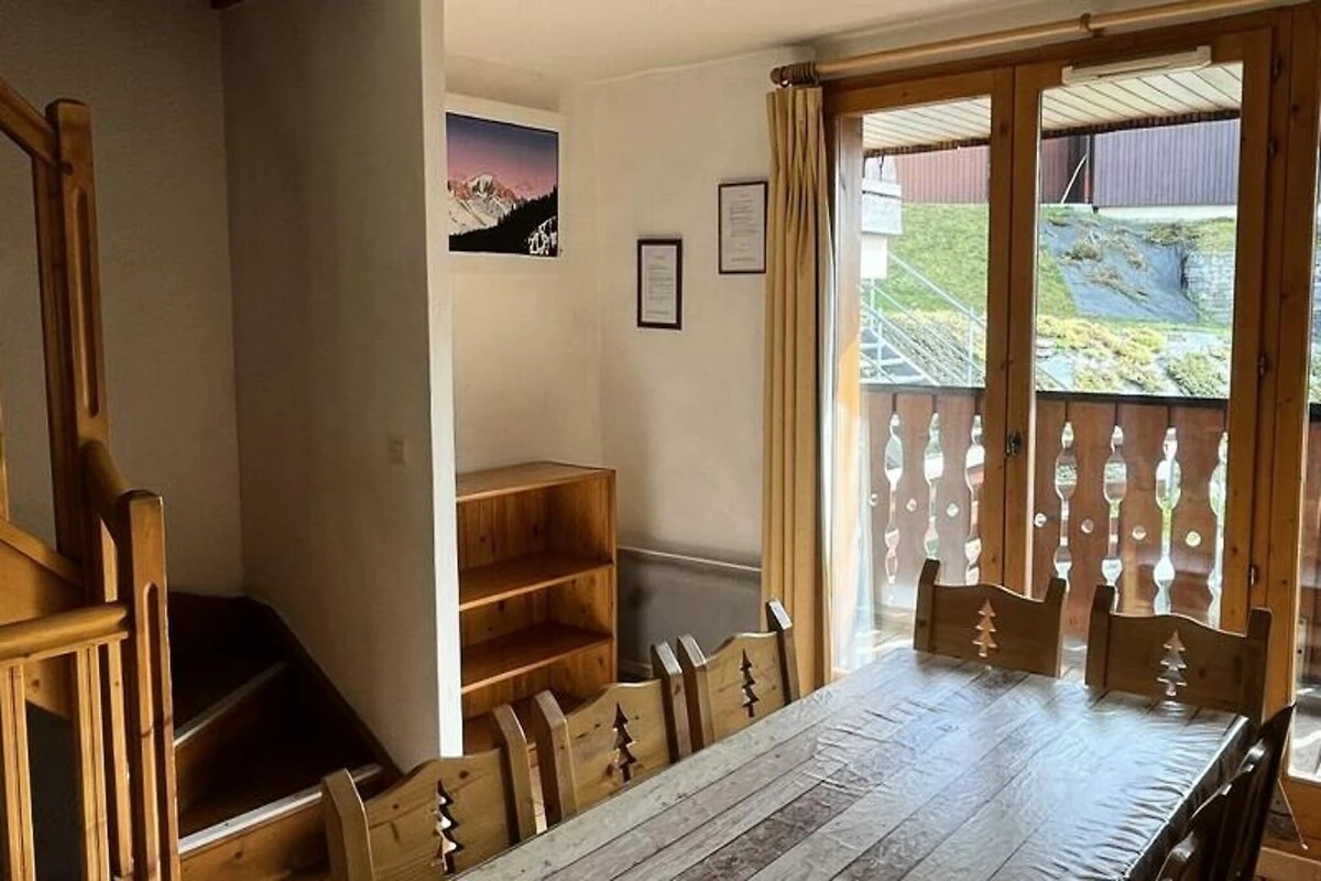 Hoch über dem malerischen Tal von La Plagne bietet dieses charmante 85 m² große Chalet einen warmen und einladenden Rückzugsort für bis zu 10 Gäste. Dank seiner erstklassigen Lage in Plagne Soleil, bekannt für seinen außergewöhnlichen Sonnenschein und den direkten Zugang zu den Pisten, ist dieses Anwesen ein Paradies für Skifahrer und Naturliebhaber gleichermaßen. Stellen Sie sich vor, Sie wachen mit dem atemberaubenden Blick auf die Bergkette des Dou du Praz auf, treten auf Ihren Balkon und spüren die frische Alpenluft, während Sie Ihre Tagesabenteuer planen.