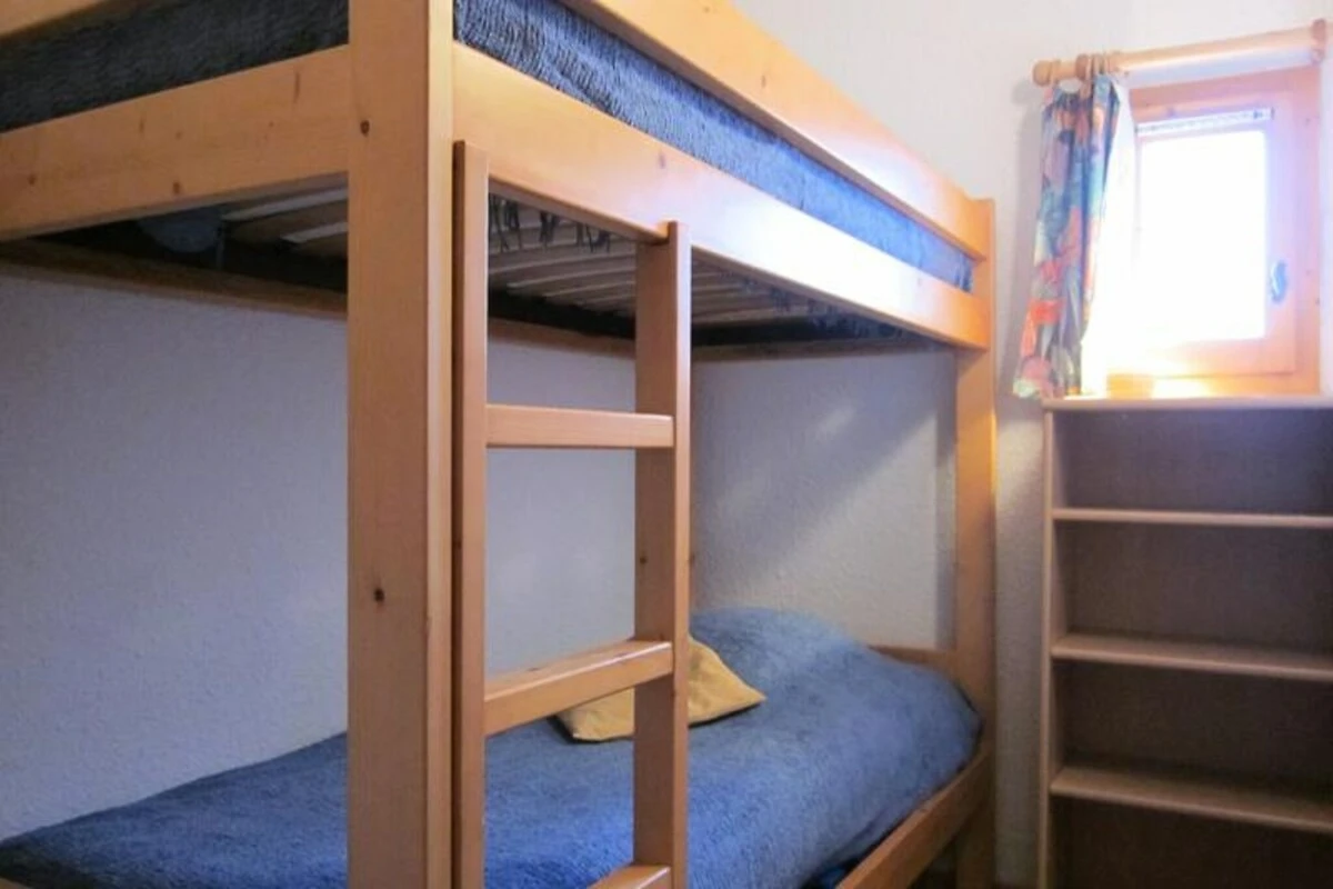 Das Chalet erstreckt sich über drei Ebenen und ist durchdacht gestaltet, um Komfort und Funktionalität zu vereinen. Im Erdgeschoss befinden sich ein gemütliches Doppelzimmer, ein Kinderzimmer mit Etagenbett und ein praktischer Skiraum zur Aufbewahrung Ihrer Ausrüstung. Das Herzstück des Chalets befindet sich im ersten Stock, wo ein geräumiger Wohnbereich mit knisterndem Kamin zum Entspannen nach einem Tag auf der Piste einlädt. Der angrenzende Essbereich mit seinem großen Tisch lädt zu gemeinsamen Mahlzeiten ein, die Sie in der voll ausgestatteten Küche zubereiten können. Hier finden Sie alles, was Sie für authentische Alpenabende brauchen – vom Raclette-Grill bis zum Fondue-Set. Im Obergeschoss bietet das Hauptschlafzimmer ein eigenes Badezimmer, während zwei weitere Schlafzimmer mit je zwei Einzelbetten und ein gemeinsames Duschbad ausreichend Platz für alle bieten.