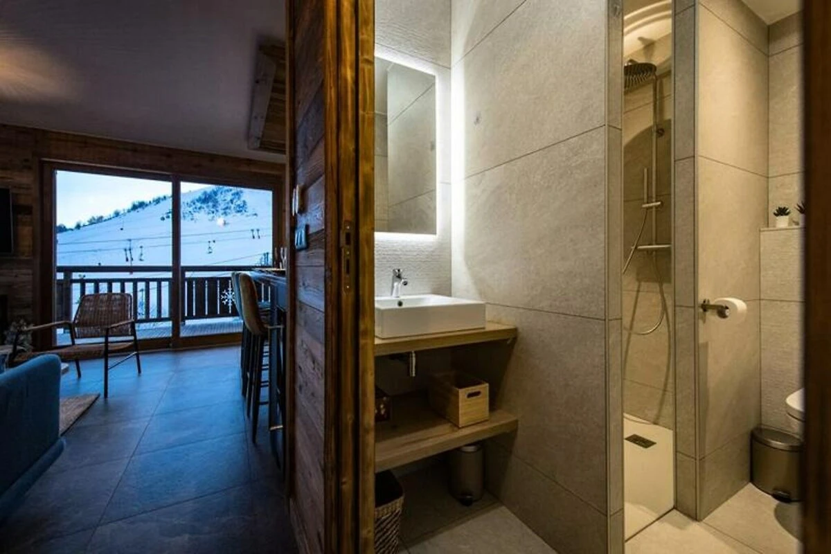 Hoch über den schneebedeckten Hängen der französischen Alpen lädt dieses brandneue Apartment in der Residenz La Grande Verdette zu einem unvergesslichen Ski-in/Ski-out-Erlebnis ein. Dank des direkten Zugangs zur blauen Piste Marmotte und zum Sessellift Bellard beginnt Ihr alpiner Urlaub direkt vor der Tür. Stellen Sie sich vor, wie Sie von Ihrem möblierten Balkon aus mit atemberaubendem Blick auf die Aiguilles d'Arves erwachen und die frische Bergluft Sie auf einen Tag voller aufregender Abfahrten oder entspannter Erkundungen einstimmt. Die Residenz, deren Fertigstellung für Herbst 2024 geplant ist, verspricht modernen Luxus und unvergleichlichen Komfort nur wenige Minuten von der Fußgängerzone des Ortes entfernt. \n\nDas 59 m² große Apartment besticht durch seine warme und elegante Atmosphäre und vereint hochwertige Materialien mit durchdachtem Design. Das Wohnzimmer verfügt über eine gemütliche Lounge und einen Essbereich, ergänzt durch eine voll ausgestattete Küche für gemeinsame Mahlzeiten nach einem Tag auf der Piste. Zwei Schlafzimmer mit Queensize-Betten bieten erholsame Rückzugsorte, während ein verglaster Schlafbereich mit vier Etagenbetten ideal für Kinder oder Freunde ist. Ein privates Badezimmer, ein zusätzliches Gemeinschaftsbad und ein separates WC sorgen für Komfort für alle Gäste. Zu den weiteren Annehmlichkeiten gehören WLAN, ein Skischrank mit Skischuhtrockner und ein reservierter Parkplatz in der Tiefgarage für eine reibungslose An- und Abreise. \n\nAbseits des Apartments bietet die Region unzählige Möglichkeiten. Ob Sie unberührte Pisten hinabsausen, charmante Bergdörfer erkunden oder Après-Ski genießen – jeder Moment ist vom Zauber der Berge durchdrungen. Ermäßigte Preise für Liftkarten und Ausrüstungsverleih sowie die Lieferung der Skipässe direkt ins Apartment erleichtern die Planung. \n\nDies ist mehr als nur ein Urlaub – es ist eine Einladung, unvergessliche Erinnerungen an einem Ort zu schaffen, der natürliche Schönheit mit modernem Komfort verbindet. Buchen Sie jetzt und sichern Sie sich Ihren Platz in diesem alpinen Paradies, wo jedes Detail darauf ausgerichtet ist, Ihr Erlebnis zu einem unvergesslichen Erlebnis zu machen.
