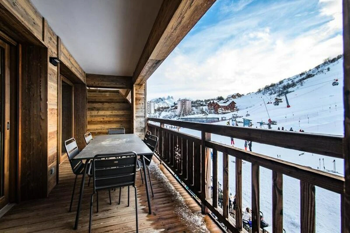 Mitten im pulsierenden Skigebiet von La Toussuire lädt dieses atemberaubende neue Apartment Sie ein, den Zauber der französischen Alpen zu erleben. Dank direktem Zugang zur Piste gelangen Sie direkt von der Tür auf makellose Hänge und sind bereit für einen erlebnisreichen Tag. Die Residenz, deren Eröffnung für Herbst 2024 geplant ist, vereint moderne Eleganz mit alpinem Charme und bietet einen warmen und einladenden Rückzugsort nach aufregenden Tagen in den Bergen. Genießen Sie von der sonnigen Terrasse aus atemberaubende Ausblicke und Momente der Ruhe inmitten der klaren Alpenluft. Das 97 m² große, nach Süden ausgerichtete Apartment besticht durch sein durchdachtes Design mit hochwertigen Materialien und einer gemütlichen Einrichtung. Das Wohnzimmer öffnet sich zu einer geräumigen, nach Westen ausgerichteten Terrasse – perfekt zum Entspannen nach einem Tag auf der Piste. Eine voll ausgestattete Küche, ein Essbereich und ein Wohnzimmer bieten alles, was Sie für einen komfortablen Aufenthalt benötigen. Das Apartment verfügt über zwei Doppelzimmer mit jeweils eigenem Bad, ein drittes Schlafzimmer mit zwei Einzelbetten und eine Schlafnische für drei Personen. Zu den modernen Annehmlichkeiten gehören ein Skischrank mit Schuhtrockner, WLAN, eine Waschmaschine und eine Endreinigung. Bettwäsche und Handtücher sind vorhanden, sodass Sie unbeschwert genießen können. Die Unterkunft liegt in der Nähe von Geschäften und Restaurants und bietet reservierte Parkplätze in der Tiefgarage La Grande Verdette sowie bequemen Zugang zu öffentlichen Parkplätzen im Ortszentrum. Skipässe und Skikurskarten werden direkt in Ihr Apartment geliefert – Ihr Urlaub beginnt also schon bei der Ankunft. Im Sommer können Sie Wanderwege und Almwiesen erkunden oder einfach in der idyllischen Berglandschaft entspannen. Ob Sie aufregende Wintersportarten oder erholsame Sommerferien suchen – dieses Apartment verspricht unvergessliche Momente im Herzen der Alpen.