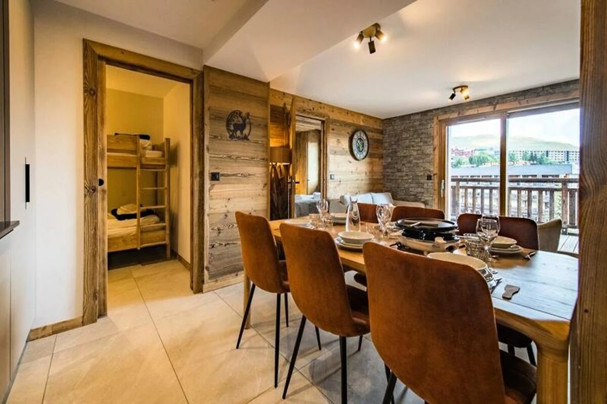 Hoch über dem Talboden, wo die klare Alpenluft auf den Charme von La Toussuire trifft, verspricht dieses brandneue Apartment in der Residenz Les Airelles einen unvergesslichen Bergurlaub. Dank der unschlagbaren Lage direkt an der Piste sind Sie nur wenige Schritte von den Abfahrten und dem lebhaften Ortszentrum entfernt. Ob Sie aufregende Winterabenteuer oder entspannte Sommerwanderungen suchen – diese Residenz ist der perfekte Ausgangspunkt, um die Schönheit der französischen Alpen zu entdecken. \n\nDas 51 m² große Apartment besticht durch eine harmonische Verbindung von Gemütlichkeit und moderner Eleganz. Das Wohnzimmer öffnet sich zu einem nach Osten ausgerichteten Balkon, der zum Genießen der Morgensonne und des atemberaubenden Ausblicks einlädt. Die voll ausgestattete Küche, der Essbereich und die gemütliche Sitzecke schaffen eine einladende Atmosphäre für gemeinsame Mahlzeiten und entspannte Stunden. Zwei komfortable Schlafzimmer mit Doppelbetten bieten erholsame Rückzugsorte, während eine Schlafnische mit Etagenbetten ideal für Kinder oder weitere Gäste ist. Zwei Badezimmer, eines davon en suite, sorgen für Komfort für alle. Durchdachte Annehmlichkeiten wie ein Skischrank mit Schuhtrockner, WLAN und inklusive Bettwäsche machen Ihren Aufenthalt unkompliziert und angenehm. Das lebhafte Ortszentrum von La Toussuire mit seinen Geschäften, Restaurants und Après-Ski-Angeboten ist nur wenige Schritte entfernt. Im Sommer verwandelt sich die Region in ein Paradies für Outdoor-Fans mit Wanderwegen, Radwegen und atemberaubenden Ausblicken an jeder Ecke. Skipässe und Kurskarten werden direkt in Ihr Apartment geliefert, und exklusive Frühbucherrabatte sorgen dafür, dass an jedes Detail gedacht wurde, um Ihren Aufenthalt so angenehm wie möglich zu gestalten. Ob Sie nun im Pulverschnee die Pisten hinabsausen oder die alpine Sonne genießen – dieses Apartment ist Ihr Tor zu unvergesslichen Momenten in den Bergen. Buchen Sie jetzt und lassen Sie sich vom Zauber von La Toussuire verzaubern.