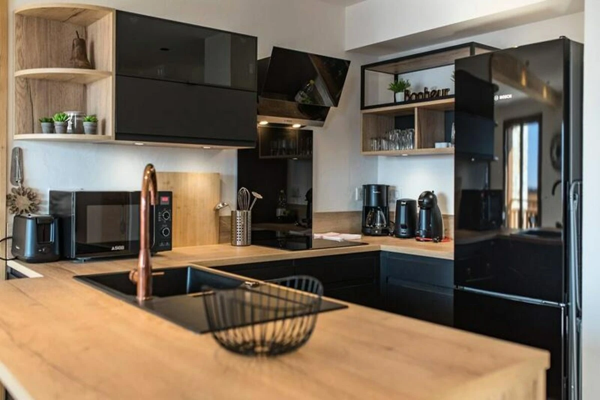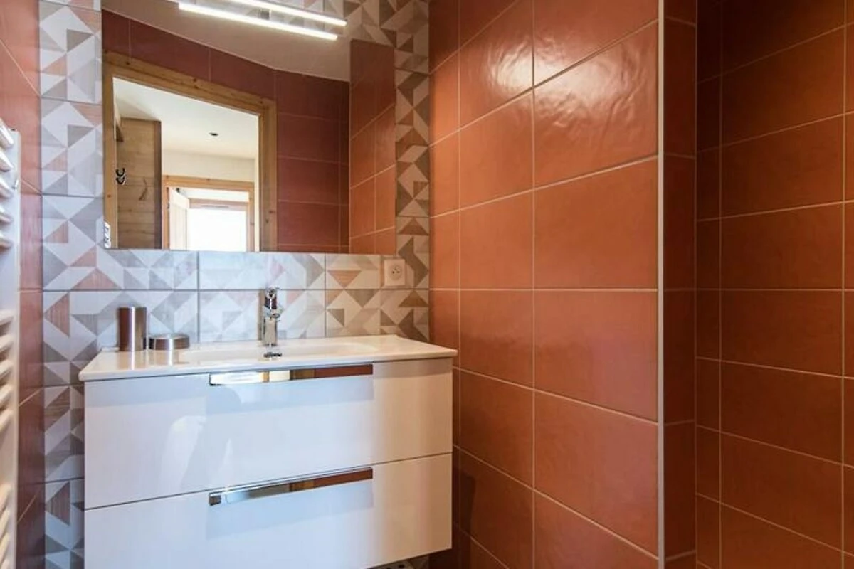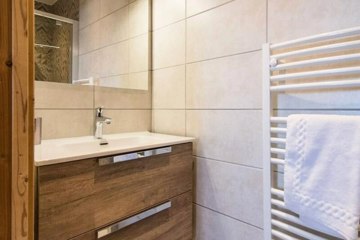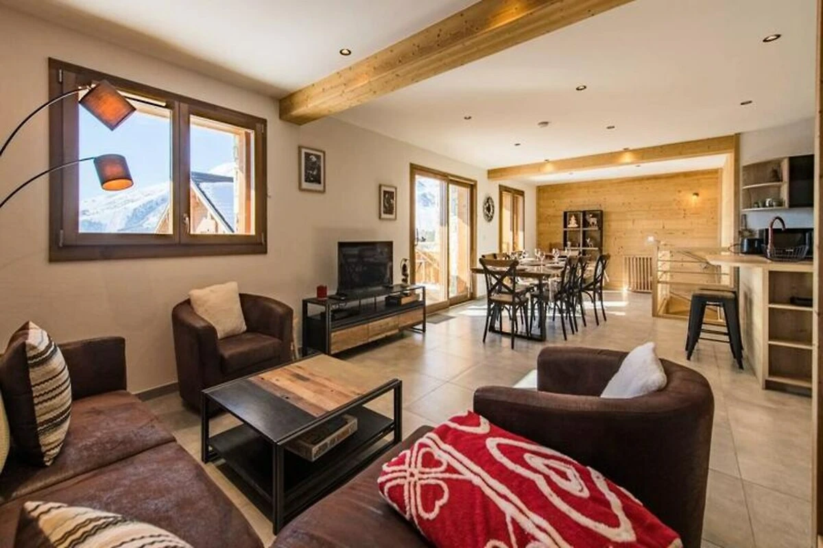 Im Herzen der französischen Alpen, wo unberührte Hänge auf modernen Luxus treffen, lädt die Sylodges Residence Sie zu einem unvergesslichen Alpenurlaub ein. Apartment 102, eine atemberaubende Maisonette-Wohnung, bietet einen traumhaften Blick auf die umliegenden Gipfel und direkten Zugang zur Piste Soleil – für ein nahtloses Ski-in/Ski-out-Erlebnis. Ob Wintersport oder Sommerwanderungen, diese Residenz ist Ihr Tor zu Abenteuer und Ruhe gleichermaßen. Stellen Sie sich Morgenstunden voller frischer Bergluft und entspannte Abende auf Ihrem privaten Südbalkon vor, umgeben von der friedlichen Schönheit der Alpen. Treten Sie ein und entdecken Sie eine Welt voller Komfort und Eleganz. Die erste Ebene bietet einen großzügigen Wohnbereich mit gemütlichem Wohnzimmer, TV und Essbereich sowie eine voll ausgestattete Küche mit Induktionskochfeld, Backofen, Mikrowelle und Geschirrspüler. Im Gartengeschoss befinden sich die Schlafräume: zwei Doppelzimmer – eines davon mit Zugang zu einer Terrasse – und ein Vierbettzimmer mit Etagenbetten und eigenem Bad. Zu den weiteren Annehmlichkeiten gehören ein Skiraum mit Schuhtrockner, Außenparkplätze, WLAN und moderne Badezimmer für bis zu acht Gäste. Dieses Apartment ist ideal für Familien oder Freundesgruppen und vereint Funktionalität mit Stil, sodass jeder Moment Ihres Aufenthalts unvergesslich wird. \n\nNur wenige Schritte von der Residenz entfernt befindet sich der Sessellift Soleil, der Sie mit dem weitläufigen Skigebiet Paradiski verbindet. Erkunden Sie charmante Dörfer, genießen Sie die savoyische Küche oder begeben Sie sich auf aufregende alpine Abenteuer. Im Sommer verwandelt sich die Region in ein Paradies für Wanderer, Radfahrer und Naturliebhaber mit Wegen, die sich durch üppige Landschaften und Panoramablicke schlängeln. Dank der für Sie organisierten Skipässe und Skikurse garantiert die Sylodges Residence einen unbeschwerten Urlaub. \n\nOb Sie nun auf der Suche nach Pulverschnee oder ruhigen Bergpfaden sind, Apartment 102 ist der perfekte Ausgangspunkt für unvergessliche Erinnerungen in den französischen Alpen.