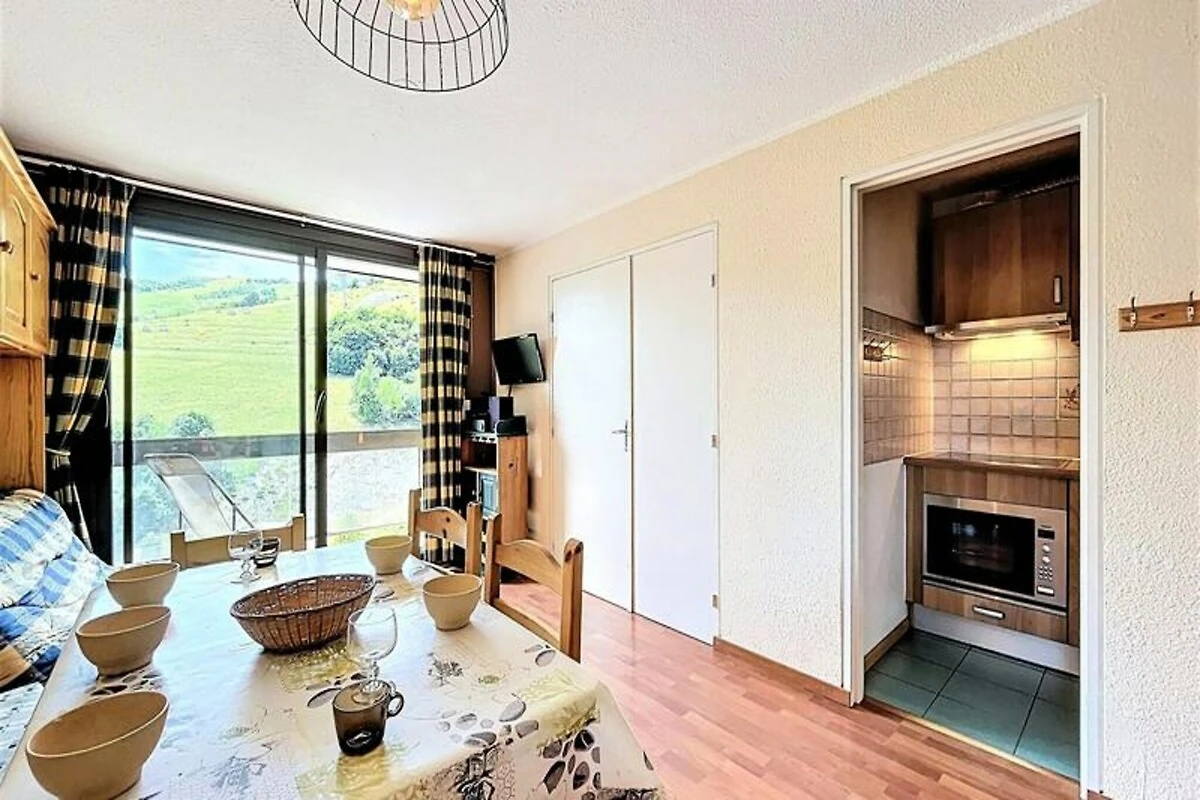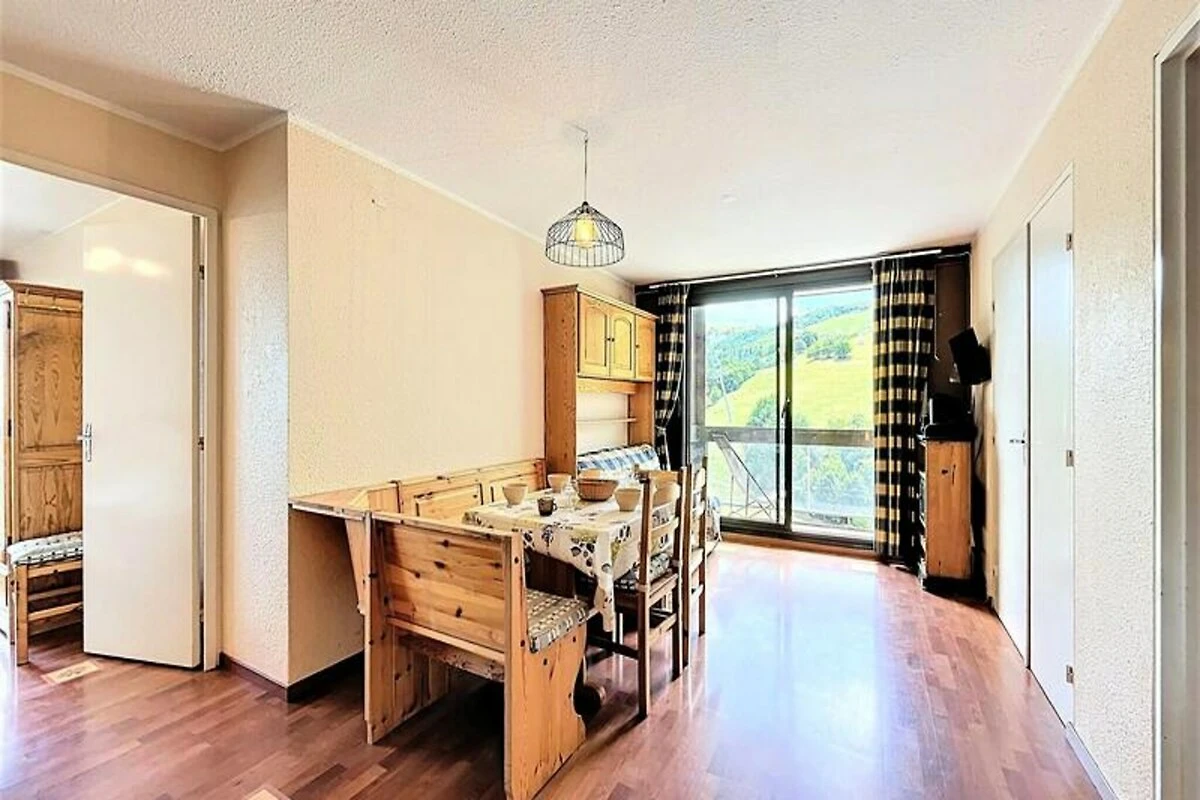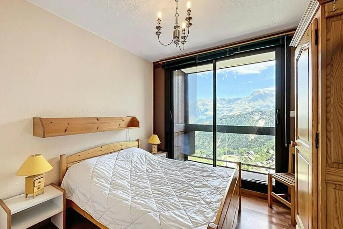 Hoch über dem Tal bietet dieses idyllische Refugium in den Alpen die perfekte Kombination aus Ruhe und Komfort im Herzen der französischen Alpen. Die Unterkunft befindet sich im unteren Teil des Resorts und ist direkt mit einer Einkaufspassage verbunden, sodass Sie lokale Köstlichkeiten und alles Notwendige bequem in wenigen Schritten erreichen. Vom nach Südosten ausgerichteten Balkon aus genießen Sie jeden Morgen einen atemberaubenden Blick auf die Pisten und die umliegenden Gipfel – ein traumhafter Start in den Tag. Der nur 100 Meter entfernte Sessellift La Voie Lactée ermöglicht Ihnen einen bequemen Zugang zu den unberührten Pisten, während ein kostenloser Shuttlebus Sie mit dem oberen Teil des Resorts und der Skischule verbindet. Ob Wintersport oder Sommerwanderungen – dieser Ort besticht zu jeder Jahreszeit.