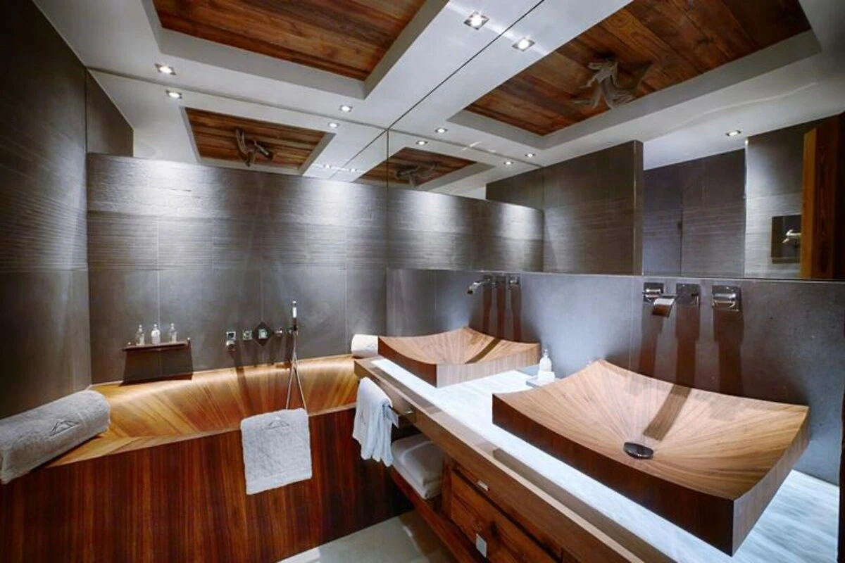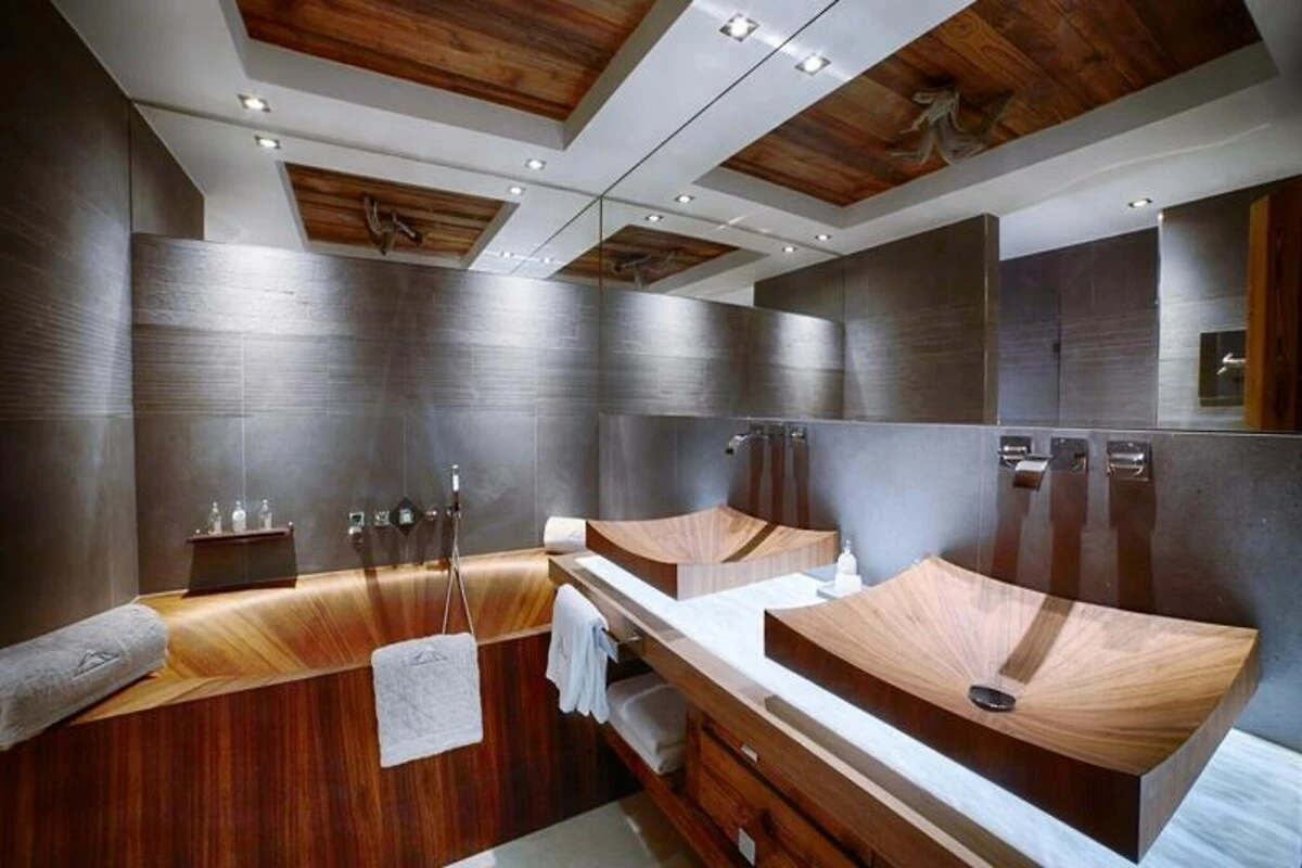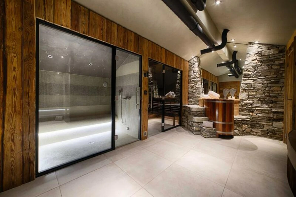 Das beeindruckende 400 m² große Penthouse vereint moderne Eleganz mit gemütlichem Alpencharme. Das geräumige Wohnzimmer mit Kamin bietet den perfekten Rahmen für Abende voller Geschichten und Lachen. Die offene Küche ist komplett ausgestattet, um köstliche Mahlzeiten zuzubereiten, während die Schlafzimmer eine Oase der Ruhe und Behaglichkeit bieten. Drei Schlafzimmer mit Kingsize-Betten, eines davon mit eigenem Bad und Balkon, garantieren erholsame Nächte. Das Kinderzimmer mit Etagenbett und Einzelbett ist ideal für die kleinen Gäste. Die Dachterrasse ist ein absolutes Highlight und bietet einen privaten Spa-Bereich mit Whirlpool, Hamam und Sauna – der perfekte Ort, um nach einem Tag auf der Piste zu entspannen. Gäste haben außerdem Zugang zum beheizten Pool und Fitnessstudio der nahegelegenen Santa Terra Residence.