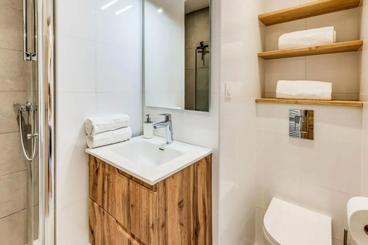 – Separates Badezimmer mit Dusche, Waschtisch und WC