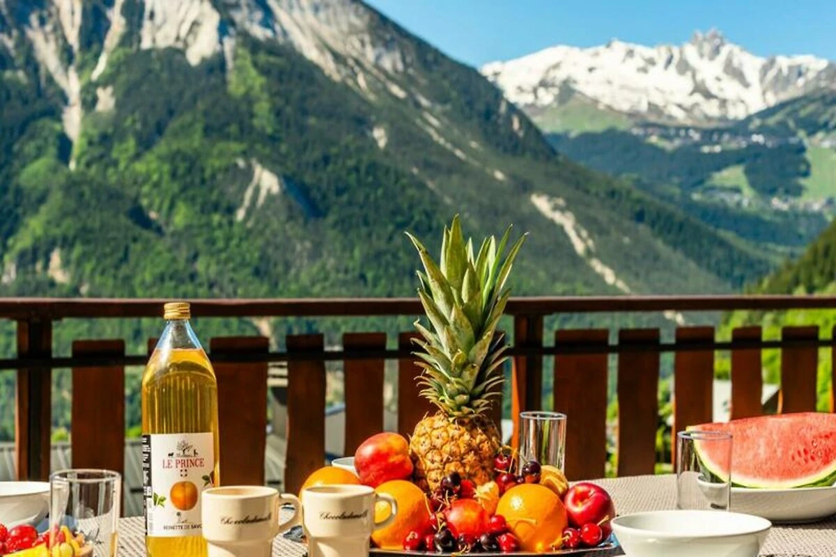Die Apartments mit Terrassen oder Balkonen bieten einen unverbauten, sonnigen Blick auf die Berge.