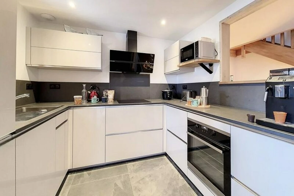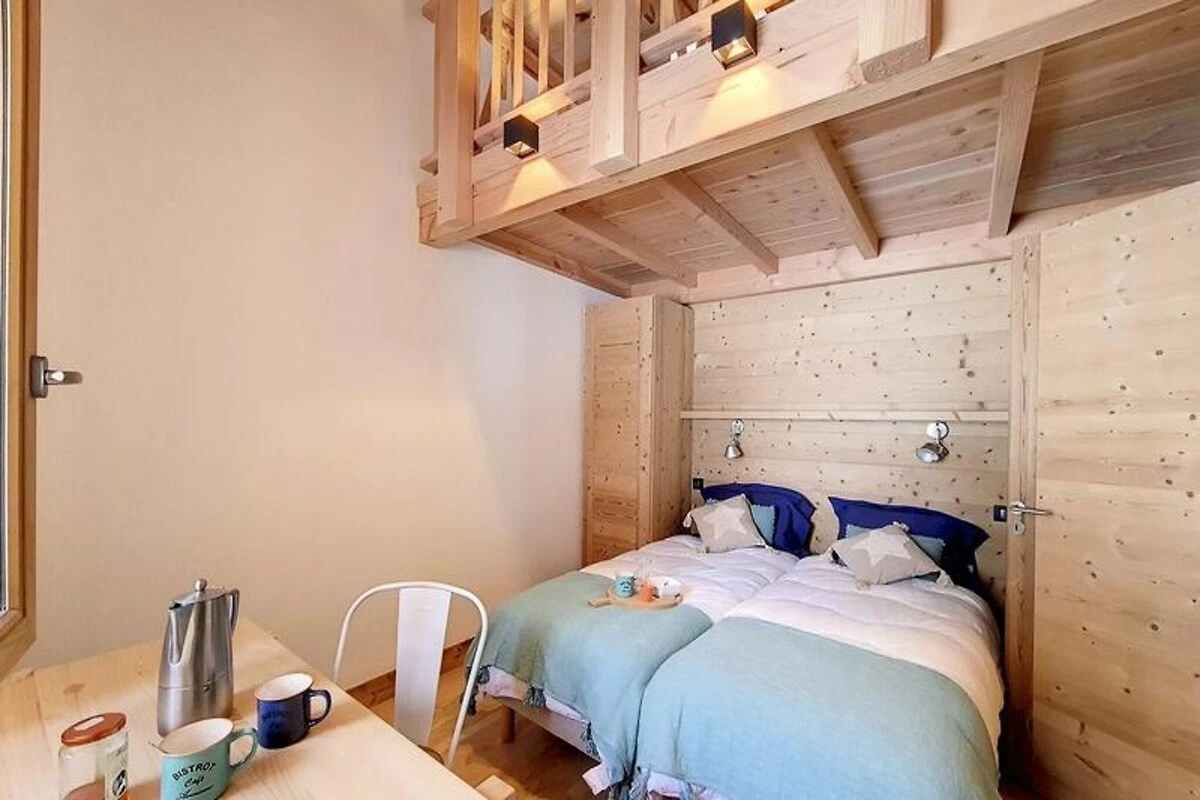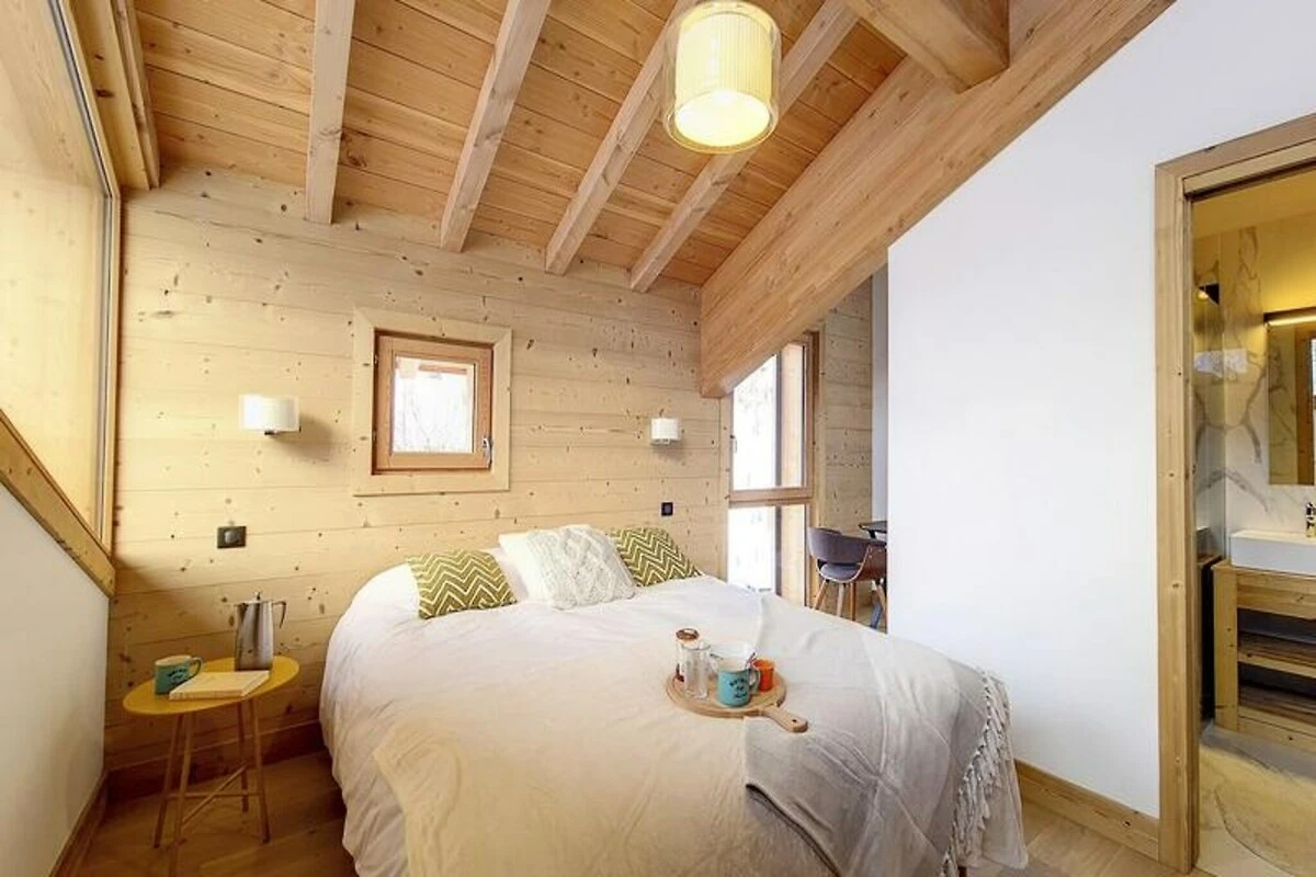 Im idyllischen Weiler Le Bettex, eingebettet in das majestätische Belleville-Tal, bietet das Chalet TY MENEZ einen unvergleichlichen alpinen Rückzugsort, nur 200 Meter vom Sessellift entfernt. Hier trifft Ruhe auf Komfort, denn der Lift ermöglicht einen direkten Zugang zum renommierten Skigebiet Les Menuires und macht das Chalet somit zum idealen Ausgangspunkt für Wintersportbegeisterte. Stellen Sie sich vor, wie Sie morgens von der weitläufigen Terrasse aus den atemberaubenden Bergblick genießen, gefolgt von aufregenden Tagen auf der Piste und entspannten Abenden am knisternden Kamin mit Ihren Liebsten. Dieses Chalet ist eine Oase des unaufdringlichen Luxus und Komforts. Das Chalet TY MENEZ erstreckt sich über beeindruckende 180 Quadratmeter auf drei Ebenen und bietet bequem Platz für bis zu 12 Gäste. Im Erdgeschoss befinden sich ein Skiraum mit Schuhwärmer, eine Sauna zum Entspannen und ein Waschraum mit Waschmaschine und Trockner. Im ersten Stock erwartet Sie ein gemütlicher Wohn- und Essbereich mit Kamin, eine voll ausgestattete Küche mit Nespresso-Maschine und eine 40 Quadratmeter große Terrasse mit Panoramablick. Fünf stilvoll eingerichtete Schlafzimmer, darunter auch Zimmer mit eigenem Bad, garantieren erholsame Nächte, während das Zwischengeschoss zusätzlichen Schlafplatz für größere Gruppen bietet. Moderne Annehmlichkeiten wie WLAN, Garagenstellplatz und winterliche Extras wie bezogene Betten und Handtücher tragen zu einem angenehmen Aufenthalt bei. \n\nDer Charme von Le Bettex liegt in seiner ruhigen Atmosphäre, und dennoch ist es nur 4 Kilometer von den lebhaften Skigebieten Les Menuires und Saint Martin de Belleville entfernt. Ob Sie die Pisten erkunden, die savoyische Küche genießen oder einfach die Schönheit des Belleville-Tals auf sich wirken lassen möchten – das Chalet TY MENEZ verspricht ein unvergessliches Alpenerlebnis. Ideal für Familien oder Gruppen, die Abenteuer und Entspannung suchen, lädt dieses Chalet Sie ein, unvergessliche Erinnerungen im Herzen der französischen Alpen zu schaffen.