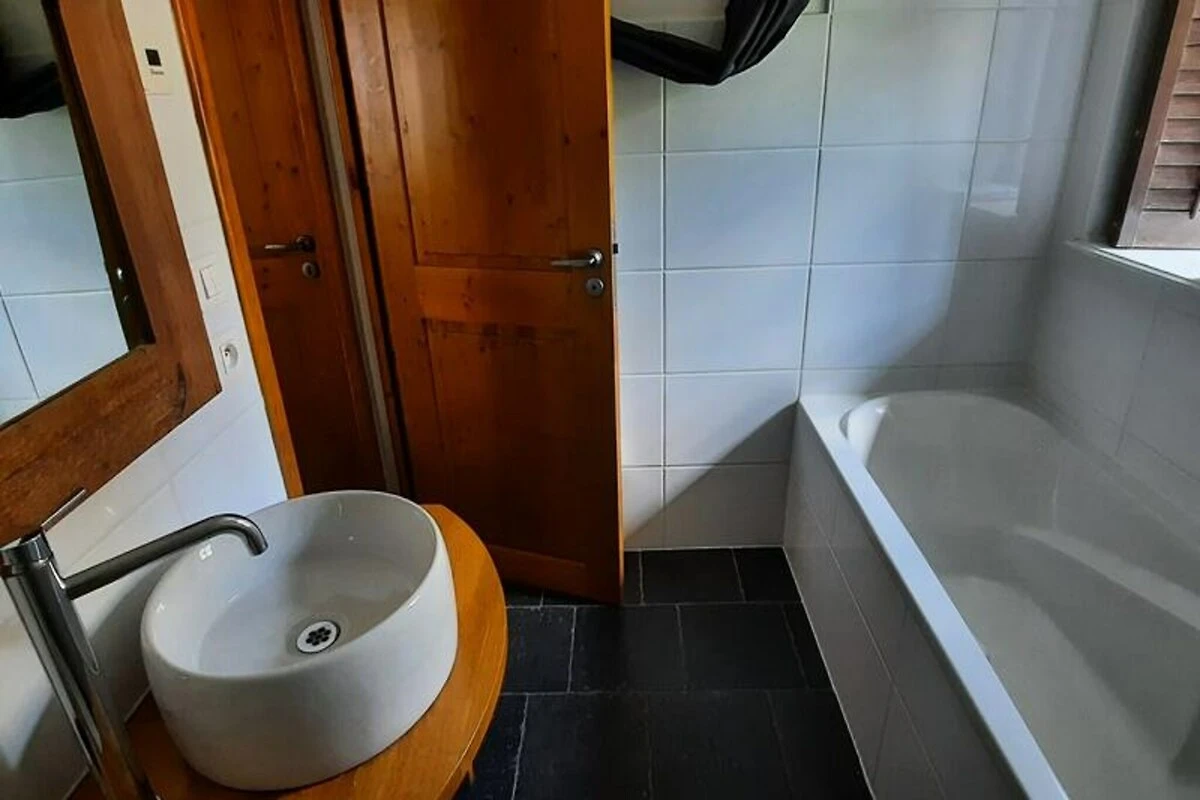 Im idyllischen Weiler La Rivine, nur 3,8 km vom charmanten Zentrum von Valloire entfernt, bietet dieses traditionelle Landhaus einen ruhigen Rückzugsort in den Bergen für bis zu acht Gäste. Umgeben von der atemberaubenden Schönheit der französischen Alpen ist dieses Anwesen ein Paradies für Naturliebhaber und Abenteuerlustige. Ob Winter oder Sommer – die ruhige Lage und die Nähe zu Outdoor-Aktivitäten machen es zur idealen Wahl für Familien und Freundesgruppen. \n\nIm Inneren vereint das Apartment rustikalen Charme mit modernem Komfort. Der geräumige Wohnbereich verfügt über einen gemütlichen Kamin mit bereitgestelltem Holz – perfekt zum Entspannen nach einem Tag auf der Piste oder den Wanderwegen. Die offene Küche ist komplett ausgestattet mit Backofen, Mikrowelle, Induktionskochfeld und sogar Raclette- und Fondue-Sets für ein authentisches savoyisches Esserlebnis. Drei komfortable Schlafzimmer bieten flexible Schlafmöglichkeiten, darunter ein Zimmer mit Doppelbett und ein weiteres mit mehreren Einzelbetten und einem Etagenbett – ideal für Familien. Zur weiteren Ausstattung gehören WLAN, ein Fernseher, eine Waschmaschine und ein Trockner, die für einen komfortablen Aufenthalt sorgen. Im Winter liegt die Unterkunft nur 1,1 km von Les Verneys entfernt. Dort finden Sie einen Sessellift, eine Skischule und Geschäfte des täglichen Bedarfs wie eine Bäckerei und einen Kiosk. Ein Shuttlebus verkehrt während der Hauptreisezeit und erleichtert die Anreise zusätzlich. Langlaufloipen befinden sich ebenfalls in der Nähe und bieten unzählige Möglichkeiten für Schneeabenteuer. Im Sommer verwandelt sich die Gegend in ein Paradies für Outdoor-Fans: Tennisplätze und ein Golfplatz sind nur 700 Meter entfernt. Der Gemeinschaftsgarten und die private Terrasse laden zum Verweilen und Genießen der alpinen Landschaft ein. Mit seiner ruhigen Lage, dem authentischen alpinen Charme und den ganzjährigen Freizeitmöglichkeiten verspricht diese Unterkunft einen unvergesslichen Bergurlaub. Ob Skifahren im Winter oder Wandern und Golfen im Sommer – hier erleben Sie garantiert Entspannung und Abenteuer.