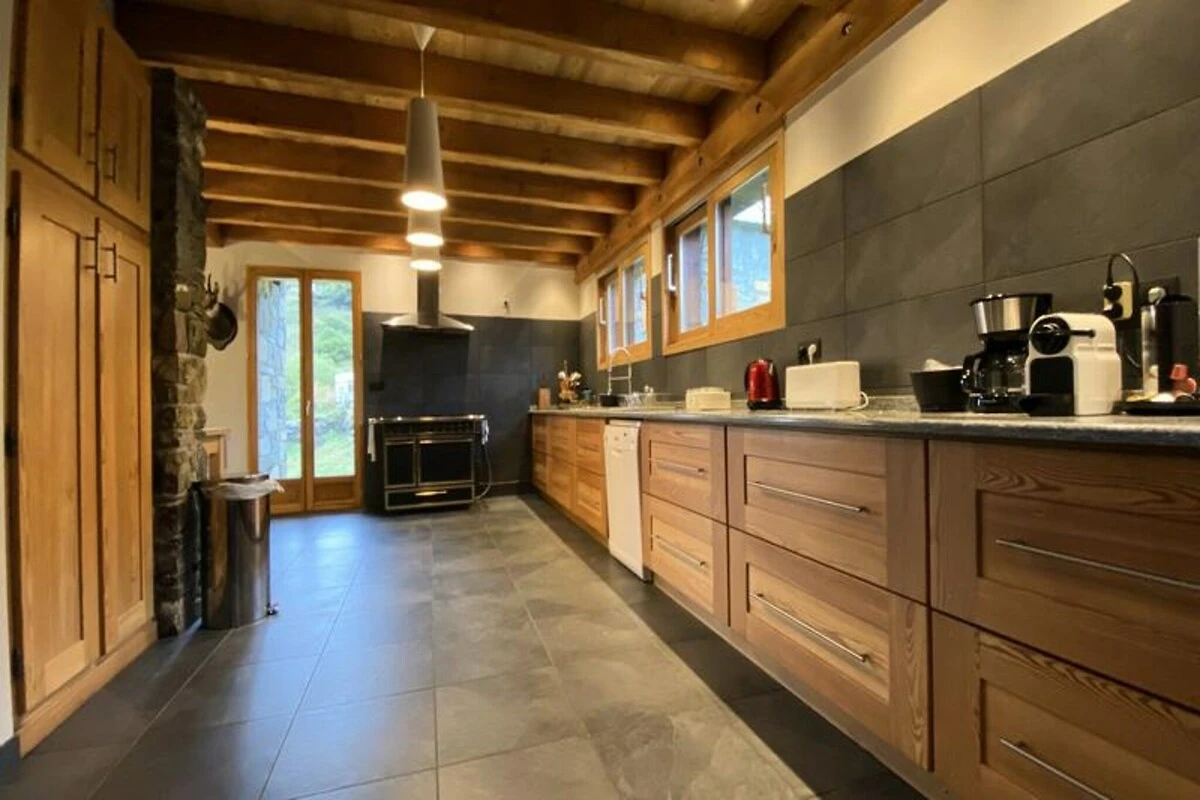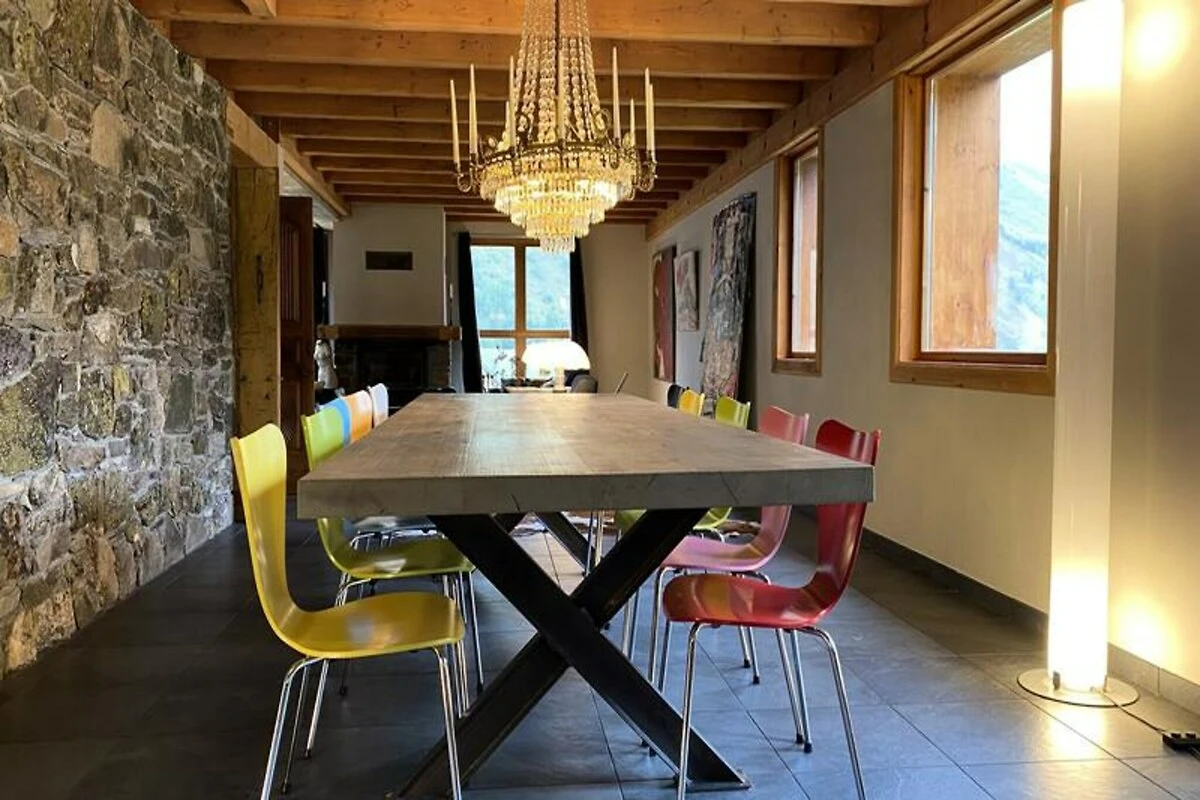 Inmitten des idyllischen Dörfchens Bonnenuit, nur 6 km vom Herzen Valloires entfernt, bietet dieses charmante Chalet eine Oase der Ruhe mit atemberaubendem Blick auf den Grand Galibier. Ob im Winter schneebedeckt oder im Sommer von üppigem Grün umgeben – die Lage lädt dazu ein, die Schönheit der französischen Alpen zu genießen. Die friedliche, vom Trubel abgewandte Lage garantiert einen erholsamen Aufenthalt für Familien und Gruppen, die Abenteuer und Entspannung suchen. Die Anreise ist nur mit dem Auto möglich; im Winter werden Schneeketten oder Allradantrieb empfohlen, um die Alpenstraßen sicher zu befahren. Das Chalet erstreckt sich über vier Ebenen und bietet mit seiner durchdachten Raumaufteilung Platz für bis zu 14 Gäste. Jedes der fünf Schlafzimmer ist individuell gestaltet, vom rustikalen Charme des Savoyer Zimmers bis zum gemütlichen Dachzimmer, ideal für Kinder oder weitere Gäste. Der einladende Wohnbereich verfügt über eine voll ausgestattete Küche mit modernen Geräten, einen geräumigen Essbereich und eine komfortable Lounge mit TV und WLAN. Mehrere Badezimmer, ein Spielzimmer und eine Bibliothek sorgen für Komfort und Unterhaltung. Die Terrasse mit Gartenmöbeln bietet einen herrlichen Platz, um den Bergblick bei einer Mahlzeit oder einfach beim Entspannen zu genießen.