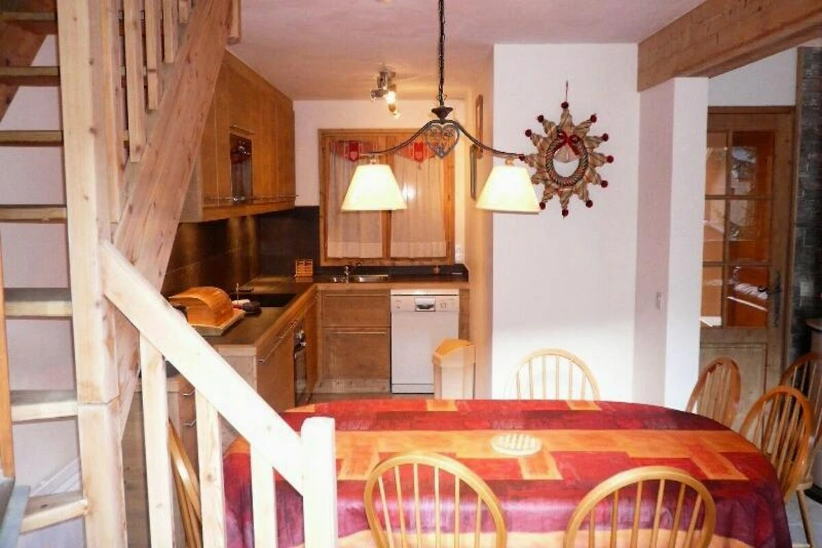 Mitten in den französischen Alpen bietet dieses charmante Maisonette-Apartment in Méribel die perfekte Kombination aus alpiner Tradition und modernem Komfort. Von der nach Westen ausgerichteten Terrasse genießen Sie atemberaubende Ausblicke auf den Ort und die umliegenden Gipfel – egal ob Sie im Winter zum Skifahren oder im Sommer zur Erholung kommen. Nur fünf Minuten von den Pisten und in der Nähe des Ortszentrums gelegen, garantiert diese Unterkunft Komfort und Bequemlichkeit für Ihren Bergurlaub. Die nahegelegene Shuttlebus-Haltestelle ermöglicht Ihnen die mühelose Erkundung der Umgebung, während der Außenpool im Sommer für eine erfrischende Abkühlung sorgt. Das gemütliche Apartment erstreckt sich über 73 m² und bietet Platz für bis zu acht Gäste. Im ersten Stock befinden sich drei einladende Schlafzimmer: ein Hauptschlafzimmer mit Balkon und Doppelbett, ein Zweibettzimmer sowie ein drittes Zimmer mit Einzelbett und Etagenbett. Das Erdgeschoss besticht durch einen geräumigen Wohnbereich mit Schlafcouch, einem Kaminofen für behagliche Wärme und einer voll ausgestatteten Küche mit modernen Geräten wie Cerankochfeld, Backofen, Mikrowelle und Geschirrspüler. Zwei Badezimmer, eines mit Badewanne und eines mit Dusche, sowie zwei separate WCs sorgen für Komfort für alle Gäste. Zur weiteren Ausstattung gehören WLAN, ein Fernseher, eine überdachte Garage und ein Skiraum – ideal für Familien oder Gruppen.