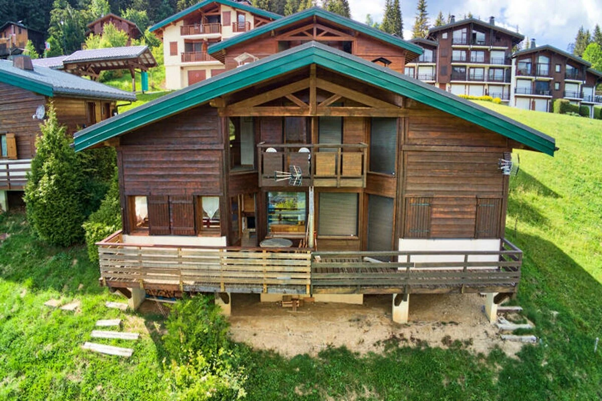 Hoch über dem malerischen Tal von Notre Dame de Bellecombe bietet dieses charmante Doppelhaus-Chalet einen einzigartigen alpinen Rückzugsort mit atemberaubendem Blick auf das Mont-Rond-Massiv. Stellen Sie sich sonnige Morgenstunden auf der Südterrasse vor, Nachmittage, an denen Sie das Skigebiet Espace Diamant erkunden, und Abende, an denen Sie am Kamin im gemütlichen Wohnzimmer entspannen. Hier trifft Ruhe auf Abenteuer und schafft unvergessliche Momente zu jeder Jahreszeit. Das Chalet erstreckt sich über drei Ebenen und bietet 55 m² Wohnfläche sowie zusätzliche 10 m² für flexible Nutzung. Die Nordebene verfügt über einen einladenden Eingangsbereich mit Garderobe und ein Badezimmer mit Badewanne und WC. Auf der ersten Ebene befinden sich zwei gemütliche Schlafzimmer: eines mit Doppelbett und Zugang zum Balkon und ein weiteres mit Etagenbett und Einzelbett. Die untere Ebene bildet das Herzstück des Hauses mit einem hellen Wohnzimmer, einer Schlafcouch, einem Essbereich und einer voll ausgestatteten Küche. Moderne Annehmlichkeiten wie Geschirrspüler, Waschmaschine und Skischrank sorgen für einen komfortablen Aufenthalt, während der Balkon einen ruhigen Ort zum Genießen des Alpenpanoramas bietet. \n\nDie Lage des Chalets ist ideal für Skibegeisterte, denn es bietet direkten Zugang zur Piste, die zum weitläufigen Skigebiet Espace Diamant führt. Im Sommer eröffnet der Sessellift Mont Rond Panoramablicke auf den Mont Blanc, und nahegelegene Wanderwege laden zu Erkundungstouren zu Fuß oder mit dem Fahrrad ein. Der nur 9 km entfernte Flumet-See mit seinem Freizeitzentrum bietet zusätzliche Outdoor-Aktivitäten für Familien und Naturliebhaber. \n\nOb Sie aufregende Pisten oder beschauliche Bergwanderungen suchen – dieses Chalet ist Ihr Tor zu den schönsten Seiten von Notre Dame de Bellecombe. Mit seiner sonnigen Terrasse, dem außergewöhnlichen Ausblick und der Nähe zu Geschäften verspricht es einen Traumurlaub im Herzen der französischen Alpen.