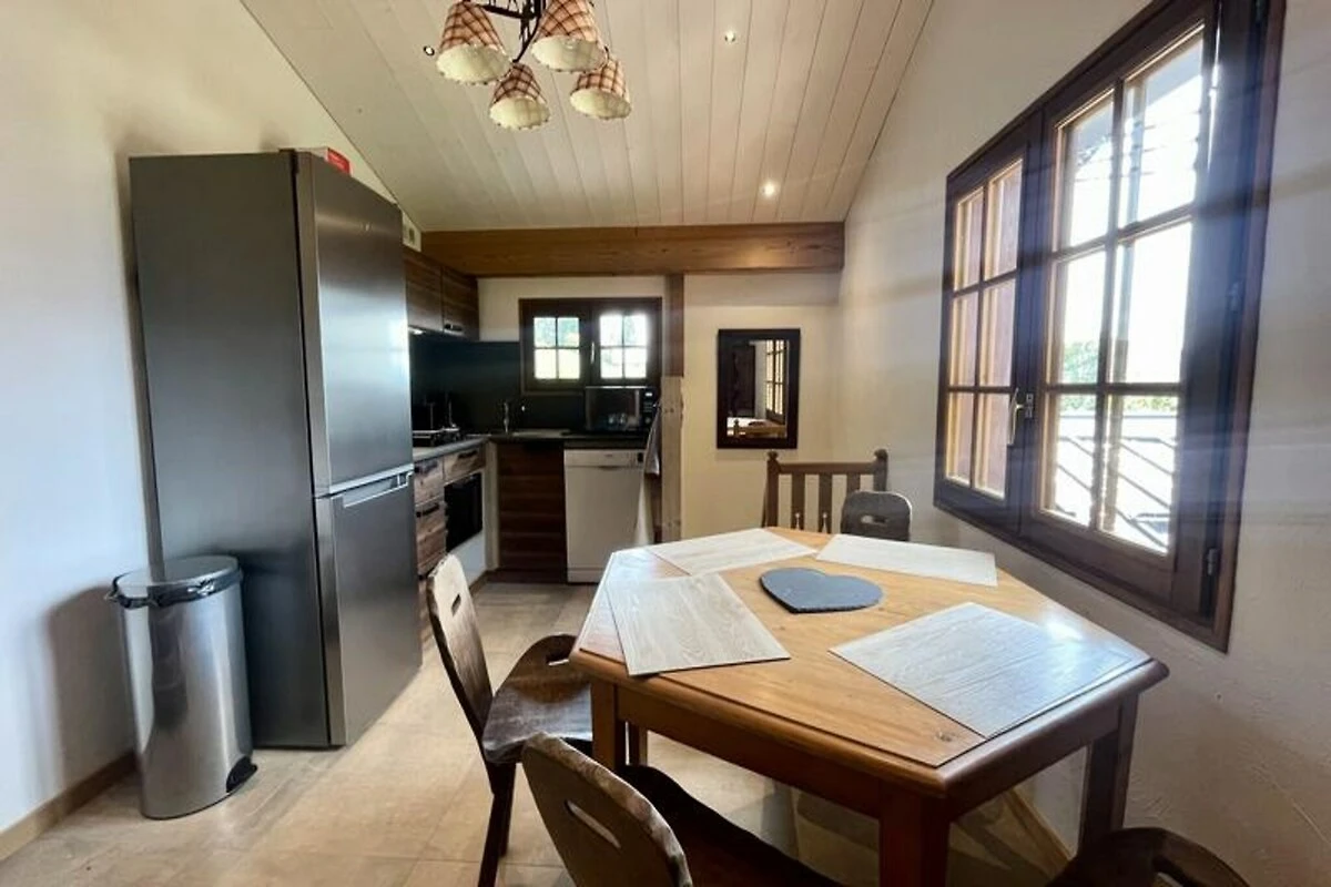 An der Schnittstelle von alpinem Charme und modernem Komfort bietet diese Doppelhaushälfte einen unvergesslichen Rückzugsort im Herzen des Skigebiets Espace Diamant. Zwischen Crest-Voland und Le Cernix gelegen, nur 600 Meter von den Pisten und der Skischule entfernt, lädt das Chalet dazu ein, in die Schönheit der französischen Alpen einzutauchen. Mit atemberaubendem Blick auf den Mont Charvin von den nach Westen ausgerichteten Terrassen fühlt sich jeder Moment hier wie eine lebendig gewordene Postkarte an. Ob Sie aufregende Skiabenteuer oder ruhige Sommerwanderungen suchen, dieser Ort verspricht die perfekte Balance zwischen Aktivität und Entspannung. Das 2022 komplett renovierte Chalet ist durchdacht gestaltet und bietet auf drei Etagen ca. 35 m² Wohnfläche für 2 bis 4 Gäste. Hochwertige Annehmlichkeiten sorgen für einen komfortablen Aufenthalt, darunter ein Hauswirtschaftsraum mit Waschmaschine und Trockner, ein Badezimmer mit ebenerdiger Dusche und zwei Terrassen, die ideal sind, um die alpine Landschaft zu genießen. Bitte beachten Sie, dass die schmale Wendeltreppe, die die Etagen verbindet, möglicherweise nicht für kleine Kinder oder Gäste mit eingeschränkter Mobilität geeignet ist. Jedes Detail des Chalets zeugt von Authentizität und Komfort und macht es zu einer gemütlichen Oase für Paare oder kleine Gruppen. \n\nAbseits des Chalets bezaubert das Dorf Crest-Voland seine Besucher mit seiner freundlichen Atmosphäre, den lokalen Geschäften und Restaurants. Im Winter erwarten Sie 192 km miteinander verbundene Pisten, die sich über sechs charmante Orte erstrecken, während der Sommer ein Paradies für Wanderer und Mountainbiker mit atemberaubenden Panoramablicken bietet, die bequem mit dem Sessellift Logère erreichbar sind. Nahegelegene Attraktionen wie der Flumet-See, Megève, Annecy und Chamonix bereichern Ihren Alpenurlaub und bieten alles von Freizeitaktivitäten bis hin zu erstklassigen kulinarischen Erlebnissen. \n\nOb Sie den Nervenkitzel des Skifahrens oder die Ruhe der Berglandschaft suchen – dieses Chalet ist Ihr Tor zu den schönsten Seiten der französischen Alpen. Lassen Sie sich vom Charme von Crest-Voland und der umliegenden Region Val d'Arly verzaubern und unvergessliche Erinnerungen schaffen.