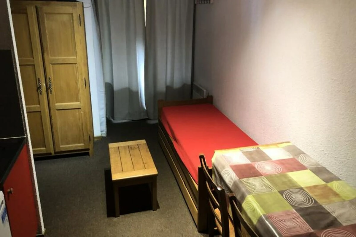 Am Tor zum lebhaften Bezirk Arolles bietet die Residenz Les Cimes de Caron einen gemütlichen Rückzugsort für Skibegeisterte und Bergfreunde. Dieses charmante Anwesen ist ideal gelegen für alle, die direkten Zugang zu den Pisten suchen: Skischränke befinden sich praktischerweise in der Residenz und die Gondelbahn Cairn ist nur 50 Meter entfernt. Ob Sie aufregende Winterabenteuer oder entspannte Sommer in den Alpen erleben möchten – diese Residenz ist der ideale Ausgangspunkt, um die Schönheit der französischen Alpen zu entdecken. \n\nDas 24 m² große Apartment ist durchdacht gestaltet und bietet Platz für bis zu vier Gäste. Das Wohnzimmer verfügt über ein Ausziehbett und einen Schlafbereich mit Etagenbetten, während eine offene Kabine ein komfortables Doppelbett bietet. Die Küchenzeile ist mit Herd, Kühlschrank und Mikrowelle ausgestattet, sodass Sie sich nach einem Tag auf der Piste problemlos Mahlzeiten zubereiten können. Entspannen Sie sich auf dem nach Norden ausgerichteten Balkon und genießen Sie die ruhige Atmosphäre der Berge. Moderne Annehmlichkeiten wie Fernseher und Aufzug sorgen für einen komfortablen Aufenthalt.\n\nDie Residenz liegt in unmittelbarer Nähe des Sport- und Einkaufszentrums Caron mit seinen vielfältigen Restaurants und Geschäften. Im nahegelegenen Skiverleih SKISET Goitschel in der Residenz Altineige finden Sie alles, was Sie für Ihre alpinen Abenteuer benötigen. Mit kürzlich renovierten Gemeinschaftsbereichen und anmietbaren Garagenplätzen vereint Les Cimes de Caron Funktionalität mit Charme.\n\nOb Sie den Nervenkitzel des Skifahrens oder die friedvolle Schönheit der Berglandschaften suchen – diese Residenz lädt Sie ein, unvergessliche Erinnerungen im Herzen der Alpen zu schaffen. Erleben Sie die perfekte Verbindung von Komfort, Bequemlichkeit und natürlicher Schönheit in Les Cimes de Caron.