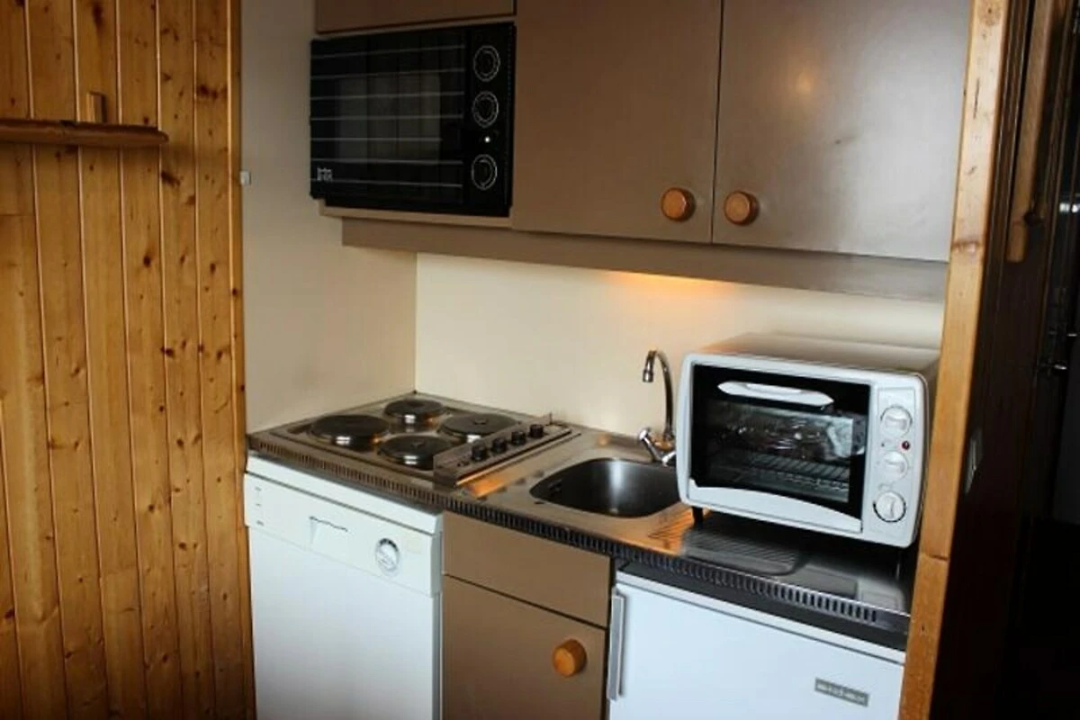 Hoch über den bezaubernden Hängen von Val Thorens bietet diese gemütliche Studio-Hütte einen ruhigen Rückzugsort mit direktem Zugang zu den Skipisten. Stellen Sie sich vor, wie Sie von Ihrem Südbalkon aus aufwachen und die Sonne die majestätische Cime Caron in goldenes Licht taucht, bevor Sie direkt in einen Tag voller alpiner Abenteuer starten. Die Residenz L'Orsière liegt ideal im Herzen des Ortes und vereint Ruhe und Komfort für einen unvergesslichen Bergurlaub. Die 28 m² große Studio-Hütte ist für bis zu vier Gäste ausgelegt und durchdacht ausgestattet, um Komfort und Funktionalität zu gewährleisten. Das Wohnzimmer verfügt über ein ausziehbares Schlafsofa, das sich in zwei Einzelbetten verwandeln lässt, während das Schlafzimmer mit gemütlichen Etagenbetten ausgestattet ist – ideal für Familien oder kleine Gruppen. Die Küchenzeile umfasst einen Minibackofen, einen Kühlschrank, Kochplatten und einen Geschirrspüler, sodass Sie nach einem Tag auf der Piste leckere Mahlzeiten zubereiten können. Moderne Annehmlichkeiten wie Fernseher und Badewanne sorgen für Entspannung und Komfort, während das separate WC die Funktionalität des Raumes erhöht.\n\nTreten Sie vor die Tür und entdecken Sie das pulsierende Leben des Ferienortes in unmittelbarer Nähe. Zwei Einkaufszentren, eine Vielzahl von Restaurants und wichtige Einrichtungen wie Skischulen, Post und Bank sind bequem zu erreichen. Familien werden die nahegelegene Kinderrodelbahn und die Bowlingbahn lieben, während Skifahrer den nur 100 Meter entfernten Skiverleih Skiset zu schätzen wissen. Ob Wintersport oder Sommerwandern – Val Thorens bietet unzählige Möglichkeiten zum Erkunden und Genießen.\n\nMit seiner unschlagbaren Lage direkt an der Piste, atemberaubenden Ausblicken und der Nähe zu den Annehmlichkeiten des Ferienortes ist diese Studio-Hütte Ihr Tor zum Besten der französischen Alpen. Erleben Sie den Charme von Val Thorens und schaffen Sie Erinnerungen, die ein Leben lang halten.