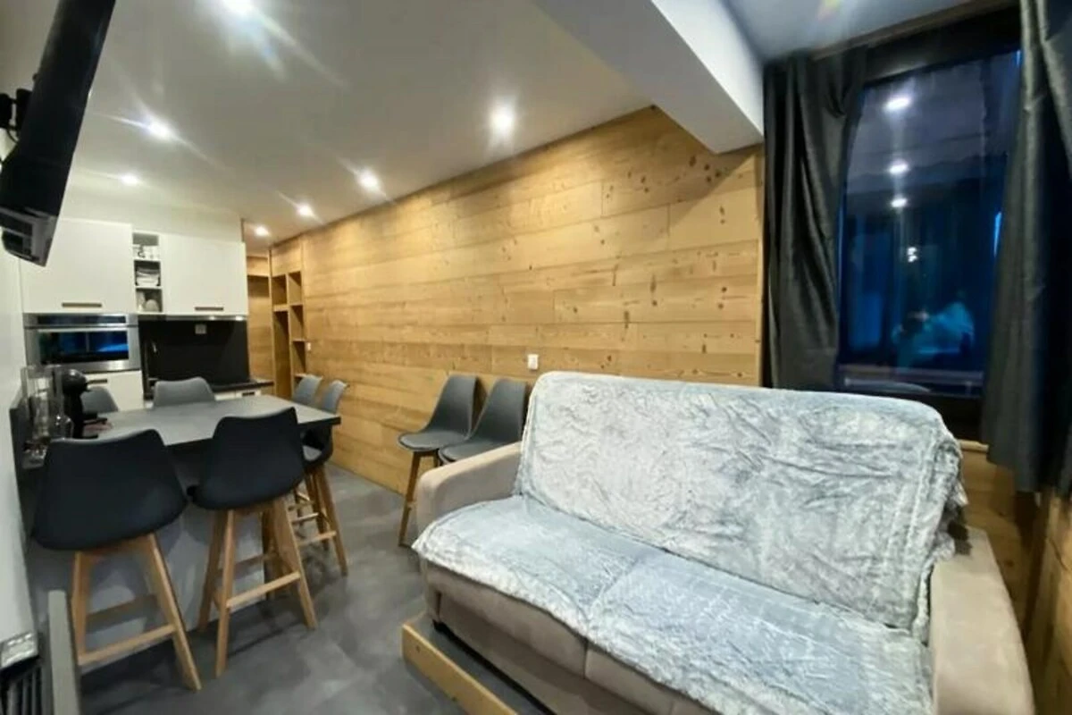 Hoch über dem Tarentaise-Tal lädt dieses charmante Studio in der Residenz La Vanoise Sie ein, die lebendige Energie der französischen Alpen zu erleben. Die im Herbst 2023 renovierte Unterkunft vereint modernen Komfort mit einer erstklassigen Lage und bietet direkten Zugang zu den Pisten sowie die Nähe zum lebhaften Einkaufszentrum Caron. Ob Sie im Tiefschnee Ihre Spuren ziehen oder die pulsierende Atmosphäre des Ferienortes erkunden möchten – dieses gemütliche Refugium ist Ihr Tor zu unvergesslichen alpinen Abenteuern. Genießen Sie von der nach Norden ausgerichteten Veranda den ruhigen Blick auf den Ort und lassen Sie sich von der einzigartigen Atmosphäre des Berglebens verzaubern. \n\nDas Studio befindet sich im dritten Stock und ist bequem mit dem Aufzug erreichbar. Es ist durchdacht gestaltet und bietet maximalen Platz und Komfort. Im Wohnbereich befindet sich ein Sofa, im Schlafbereich zwei Etagenbetten – ideal für Paare oder kleine Familien. Das Badezimmer ist mit einer Dusche und einem WC ausgestattet und bietet so Komfort nach einem Tag auf der Piste oder beim Wandern. Bitte beachten Sie, dass Haustiere nicht erlaubt sind und Bettwäsche, Handtücher und Parkplätze vorab reserviert werden müssen. \n\nAlles, was Sie brauchen, ist bequem zu Fuß erreichbar. Das Einkaufszentrum Caron bietet eine Vielzahl an Restaurants, Geschäften und Sportmöglichkeiten. Die Pisten sind nur wenige Schritte entfernt und ermöglichen so ein müheloses Skifahren direkt vom Berg. Im Sommer verwandelt sich die Region in ein Paradies für Wanderer und Radfahrer mit Wegen, die sich durch atemberaubende Landschaften schlängeln. Ob Sie aufregende Wintersportarten oder erholsame Sommerauszeiten suchen – dieses Studio ist der perfekte Ausgangspunkt, um in die Schönheit und Faszination der französischen Alpen einzutauchen. Fühlen Sie sich in La Vanoise wie zu Hause und genießen Sie jeden Moment alpinen Charmes.