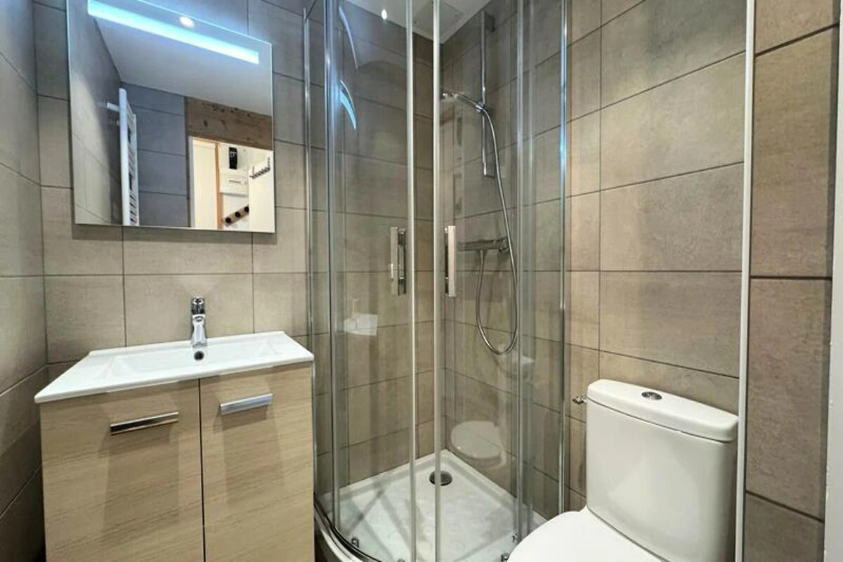 Das Apartment ist durchdacht gestaltet und bietet auf 19 m² maximalen Komfort. Der Wohnbereich verfügt über Etagenbetten und ein Schlafsofa für bis zu drei Personen. In der gut ausgestatteten Küche mit Cerankochfeld, Mikrowelle, Minibackofen und Raclette-Grill können Sie nach einem Tag auf der Piste leckere Mahlzeiten zubereiten. Das Badezimmer ist mit Dusche, Handtuchwärmer und modernen Annehmlichkeiten ausgestattet und sorgt für einen entspannten Tagesausklang. Zentralheizung und kuschelige Bettdecken sorgen für Wärme und Behaglichkeit in diesem einladenden Raum.