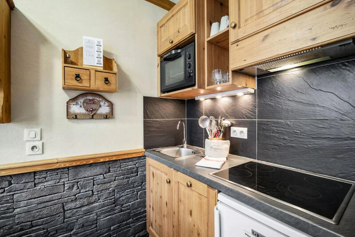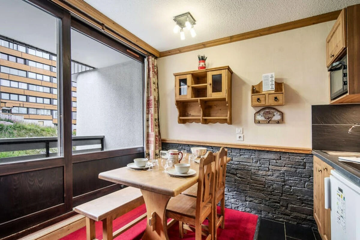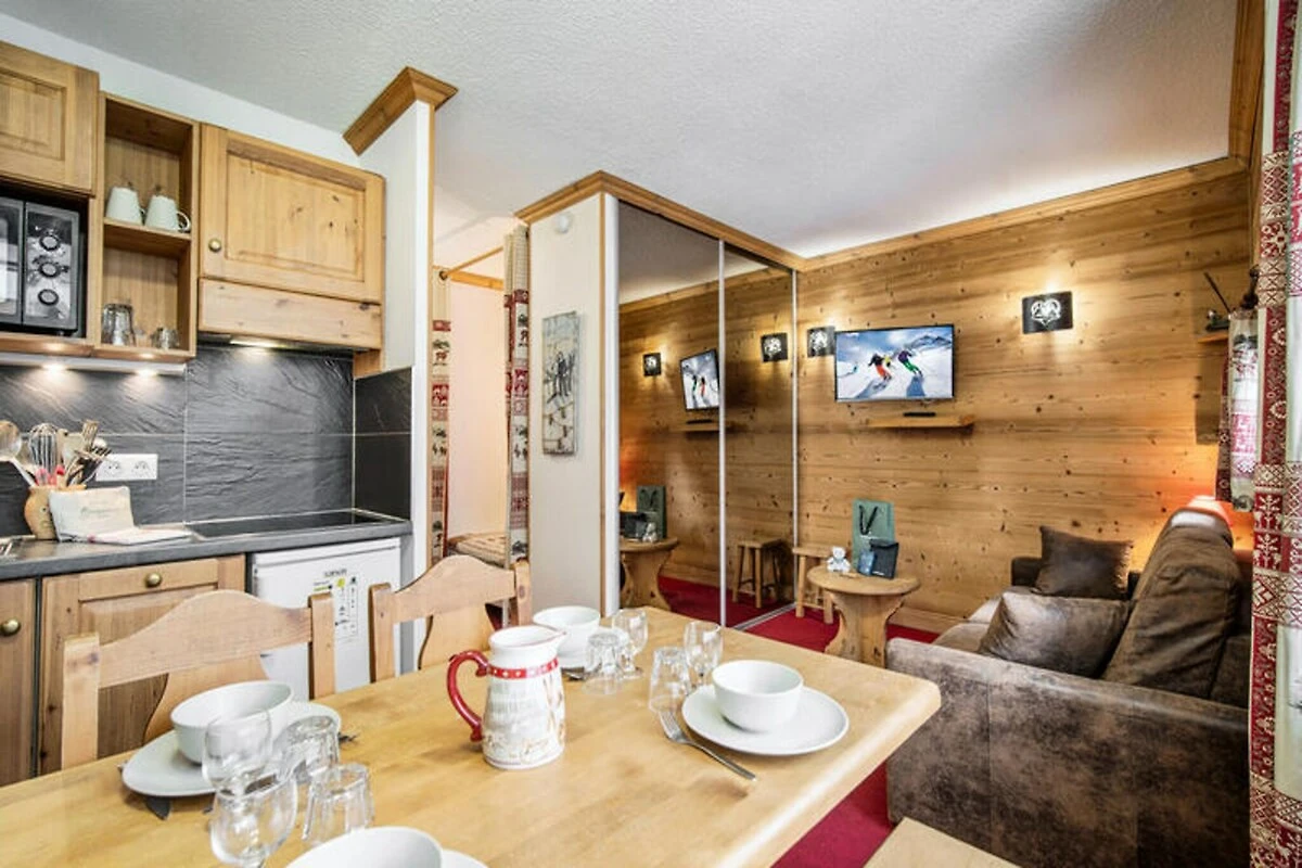 Inmitten des lebendigen Charmes von Val Thorens bietet die Orsière Residence einen ruhigen Rückzugsort direkt an der Piste und garantiert Wintersportbegeisterten mühelosen Zugang zur Piste. Stellen Sie sich vor, Sie wachen mit der klaren Alpenluft auf, treten auf Ihren Balkon und bewundern die schneebedeckten Gipfel, bevor Sie ohne lästiges An- und Ablegen in einen Tag voller aufregender Abenteuer starten. Die Residence liegt am Place Caron, dem pulsierenden Herzen des Ortes, und vereint Ruhe mit Komfort. Sie ist der ideale Ausgangspunkt, um die unzähligen Aktivitäten, Geschäfte und Restaurants in unmittelbarer Nähe zu erkunden. \n\nDas Apartment ist durchdacht gestaltet und bietet Platz für bis zu vier Gäste. Der offene Wohn- und Küchenbereich schafft einen einladenden Raum für gemeinsame Momente, sei es beim Genuss einer selbst zubereiteten Mahlzeit oder beim Entspannen nach einem Tag auf der Piste. Die Aufteilung umfasst eine gemütliche Kabine mit Doppelbett, eine zweite Kabine mit Etagenbetten, ein modernes Badezimmer mit Dusche und ein separates WC – Komfort und Funktionalität sind garantiert. Der Balkon bietet einen privaten Ort, um den atemberaubenden Bergblick zu genießen und Ihrem Aufenthalt einen Hauch von Magie zu verleihen. Gäste werden mit persönlichem Service empfangen, darunter bezogene Betten bei Ankunft, hochwertige Bettwäsche, Badezimmerartikel und die Endreinigung – für einen reibungslosen und entspannten Aufenthalt. Für zusätzlichen Komfort steht Ihnen ein Concierge-Service zur Verfügung, der maßgeschneiderte Optionen wie Skipässe und Aktivitätenbuchungen anbietet. Ob Sie nun wegen der erstklassigen Pisten oder der lebhaften Après-Ski-Atmosphäre hier sind, die Orsière Residence verspricht einen unvergesslichen Aufenthalt in den Alpen. Mit ihrer unschlagbaren Lage und den komfortablen Annehmlichkeiten ist sie die perfekte Wahl, um unvergessliche Erinnerungen im Herzen der französischen Alpen zu schaffen.