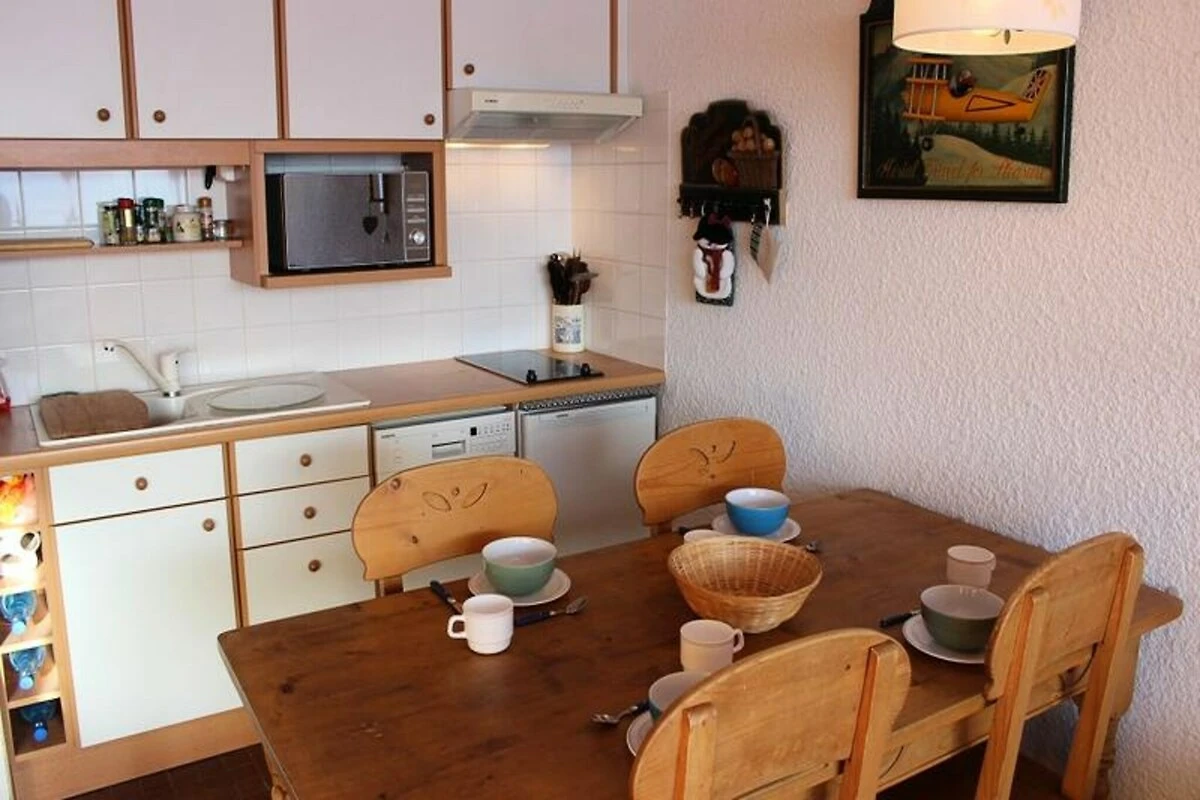 Das 35 m² große Apartment im 3. Stock (mit Aufzug erreichbar) ist durchdacht gestaltet und bietet Platz für bis zu vier Gäste. Das nach Süden ausgerichtete Wohnzimmer ist lichtdurchflutet und schafft eine warme und einladende Atmosphäre. Entspannen Sie sich auf dem ausziehbaren Schlafsofa, das sich leicht in zwei Einzelbetten verwandeln lässt, oder ziehen Sie sich in das separate Schlafzimmer mit einem komfortablen Doppelbett zurück. Die Küchenzeile ist mit allen modernen Geräten ausgestattet, darunter Mikrowelle, Cerankochfeld, Kühlschrank und Geschirrspüler, sodass Sie sich nach einem Tag auf der Piste ganz einfach eine Mahlzeit zubereiten können. Das Badezimmer ist mit Badewanne und Waschbecken ausgestattet, ein separates WC sorgt für zusätzlichen Komfort.