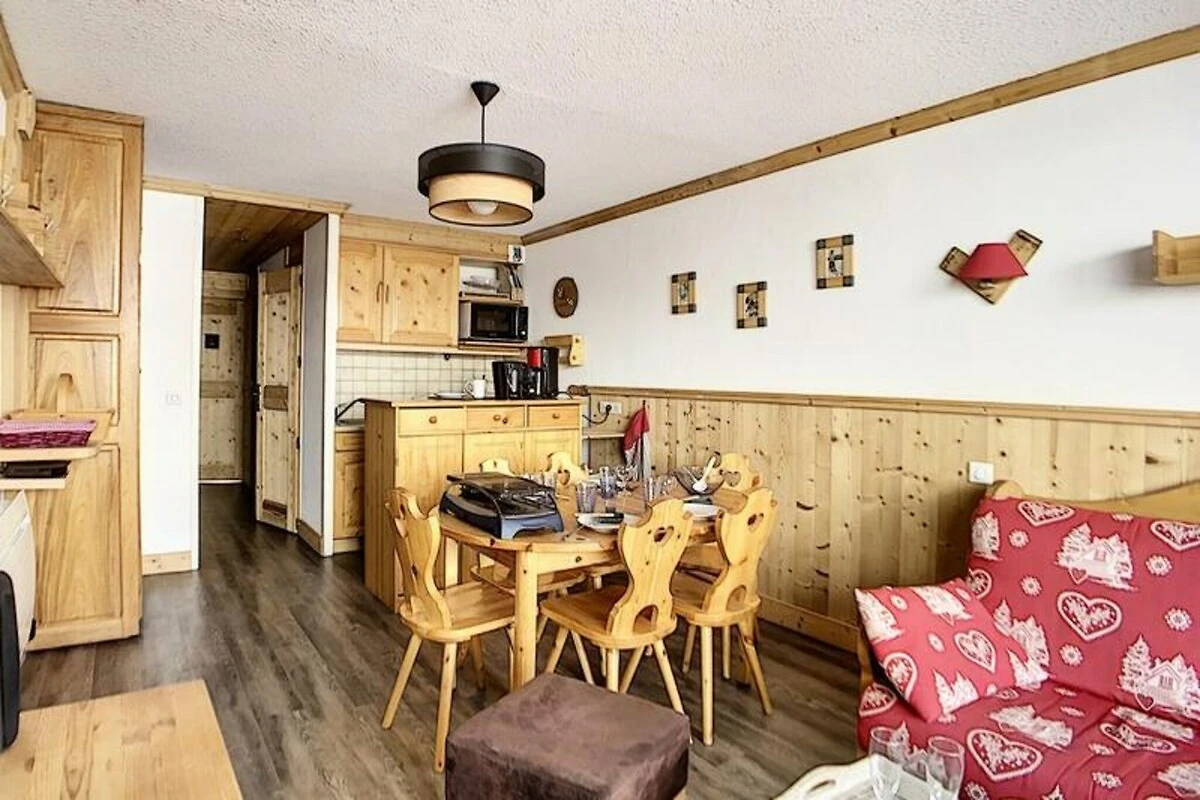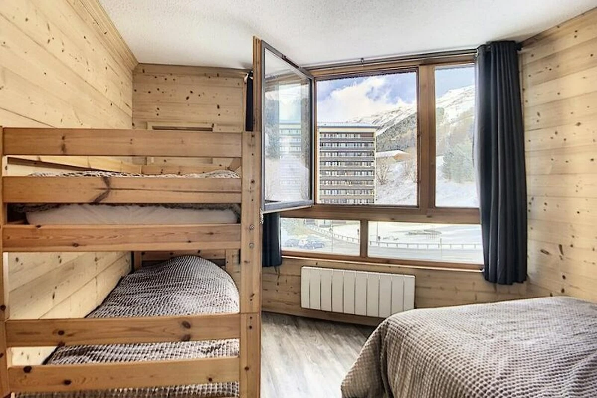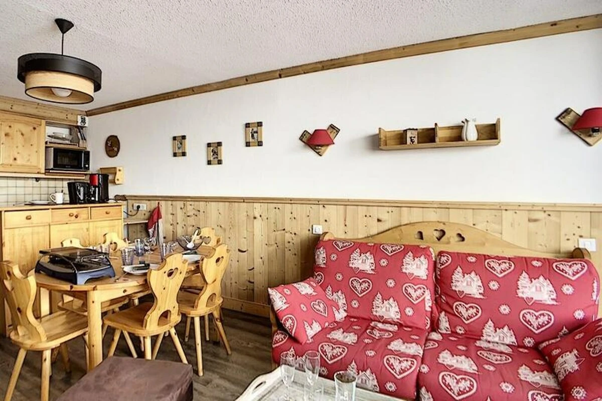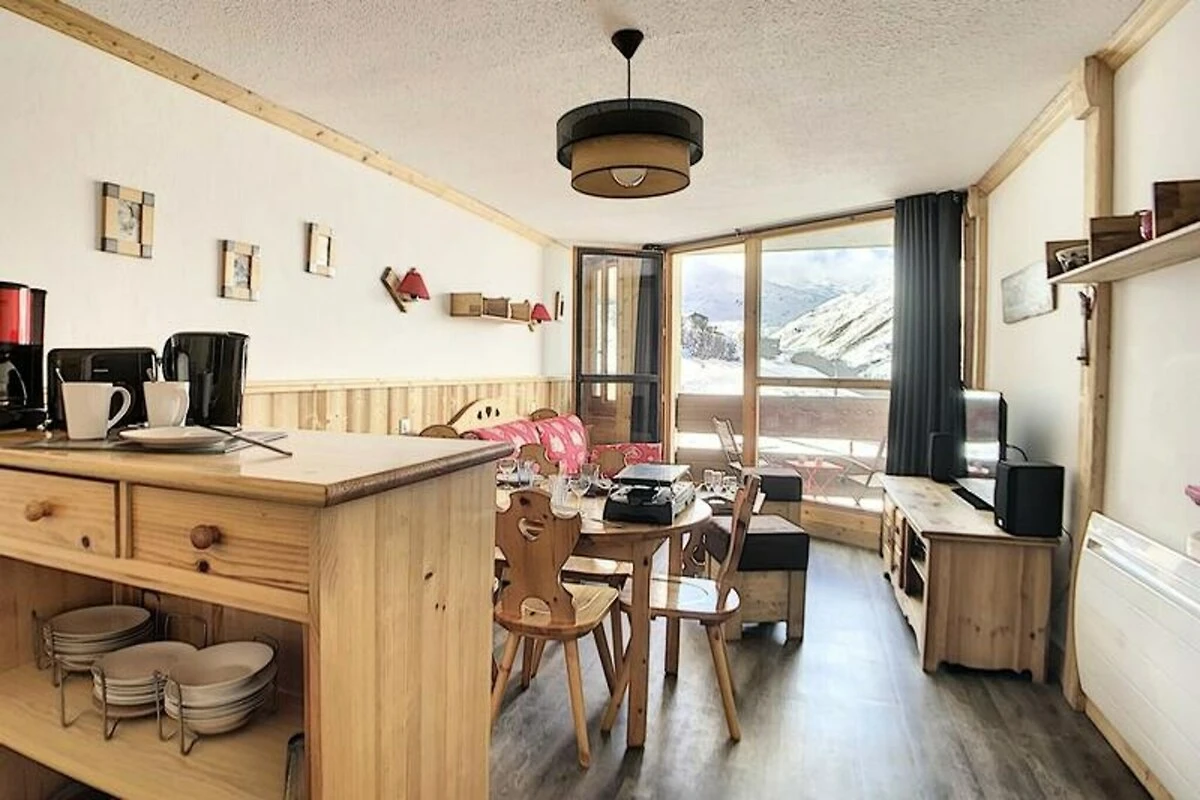 Im charmanten Viertel Preyerand in Les Menuires bietet dieses wunderschön renovierte Zweizimmer-Apartment einen gemütlichen Rückzugsort direkt an der Piste. Dank der kostenlosen Seilbahn TéléPreyerand, die täglich von 8:00 bis 23:00 Uhr verkehrt, erreichen Sie das Zentrum von La Croisette schnell und bequem. Ob Sie nun die Pisten hinunterwedeln oder einfach nur die alpine Atmosphäre genießen möchten – diese Unterkunft verspricht einen unvergesslichen Bergurlaub. \n\nDas 40 m² große Apartment befindet sich im 4. Stock und ist bequem mit dem Aufzug erreichbar. Es bietet Platz für bis zu sechs Gäste. Der nach Süden ausgerichtete Balkon lädt zum Sonnenbaden ein und bietet einen atemberaubenden Blick auf die umliegenden Gipfel. Im Wohnzimmer finden Sie ein Schlafsofa für zwei Personen, einen Fernseher und einen DVD-Player – der perfekte Ort zum Entspannen nach einem Tag auf der Piste. Das Schlafzimmer ist mit einem Doppelbett und zwei Etagenbetten ausgestattet und somit ideal für Familien oder Gruppen. Das moderne Badezimmer ist mit Badewanne, Handtuchwärmer und Waschmaschine ausgestattet, während das separate WC zusätzlichen Komfort bietet.\n\nDie voll ausgestattete Küche lässt keine Wünsche offen und bietet Induktionskochfeld, Kühlschrank, Geschirrspüler, Raclette-Grill, Fondue-Set, Steingrill, Kombi-Backofen/Mikrowelle und eine Nespresso-Maschine. Dank Fliesen- und Linoleumböden ist das Apartment stilvoll und praktisch zugleich. Internet ist inklusive, sodass Sie während Ihres gesamten Aufenthalts in Verbindung bleiben können. Bitte beachten Sie, dass das Apartment rauchfrei und haustierfrei ist und mit Bettdecken für einen erholsamen Schlaf ausgestattet ist.\n\nAbseits des Apartments bietet Les Menuires eine Fülle an Aktivitäten und Annehmlichkeiten. Vom lebhaften Viertel La Croisette mit seinen Geschäften, Restaurants und Après-Ski-Angeboten bis hin zu den atemberaubenden Skipisten der Trois Vallées – hier ist für jeden etwas dabei. Ob Sie zum Skifahren, Wandern oder einfach nur zum Entspannen kommen möchten, dieses Apartment ist Ihr Tor zu den schönsten Seiten der französischen Alpen.
